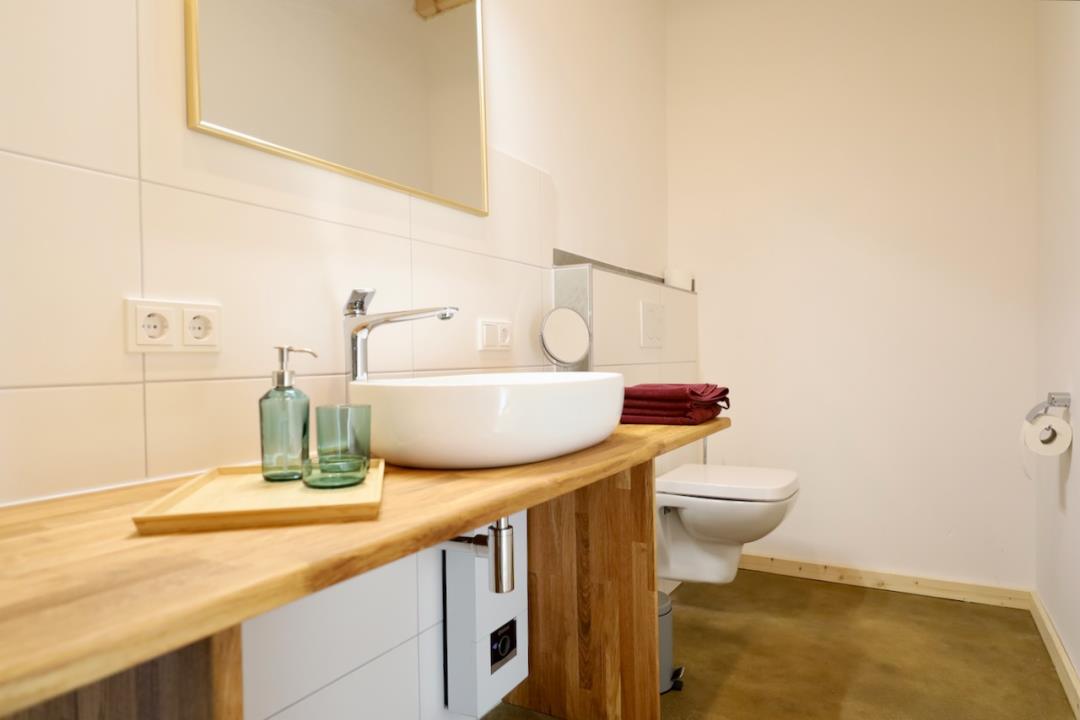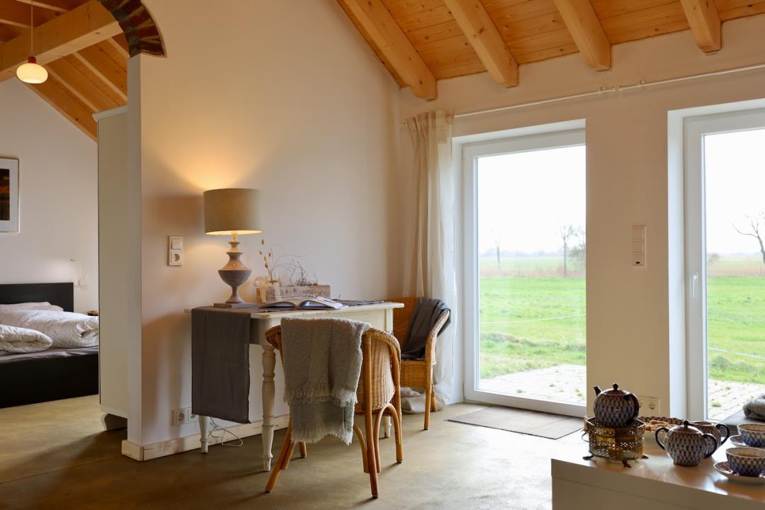 Wir haben mit Sömmerland mit Beginn des Jahres 2024 eine von zwei wunderschönen, Ferienwohnungen für Sie fertiggestellt. Sie ist offen gestaltet, mit großen, bodentiefen Fenstern nach Süden, hat ca 55 qm, bietet viel Bewegungsfreiheit für 1 - 2 Personen. Sie ist hell und lichtdurchflutet und hat eine eigene Sonnenterrasse nach Süden mit eigenen Garten- und Liegestühlen. Wir haben Wert gelegt auf gute, natürliche Materialien, wie unbehandeltes Holz, biologisch gefärbten Sichtestrich, der mit reinem Bienenwachs behandelt wurde, Infrarot-Fußbodenheizung, die sonnenähnliche Strahlungswärme abgibt, keine Staubverwirbelungen erzeugt und so ein wunderbares Raumklima erzeugt, das gut ist für die Atemwege, sowie Kalkputz und Kalkfarben. Und wir verwenden ausschließlich reine Baumwoll-Bettwäsche. Wir haben unsere Lampen mit Halogenbirnen statt LED ausgestattet, weil das unsichtbar flackernde Licht der LED-Beleuchtung nachgewiesenermaßen hohe Gesundheitsrisiken birgt, wie Netzhautablösungen, Migräne, Gehirntumore, Epileptische Anfälle, Herzprobleme u.a., denn das menschliche Auge und das menschliche Gehirn können ein ständiges rasant schnelles Flackern aus hell-dunkel dauerhaft nicht ausgleichen. Das tun wir zusätzlich für Ihre Gesundheit: Hochwertige Wasserfilteranlage in Küche und Bad Hochwertige Wasser-Energetisierung in Küche und Bad Elektrosmog-Entstörung durch eingebaute Kupfergewebe unbehandelte Nadelholzdecken, die die Atemluft verbessern Ausstattung der Wohnung „Sömmerland“: Großer, offen gestalteter Wohnraum, Eßbereich, Schlafraum, großes Bad, TV, WLAN, Halogenlicht In allen Räumen Infrarot-Fußbodenheizung unter dem natürlich behandelten gefärbten Estrich mit eigener Wärmesteuerung pro Raum. Küche: Voll ausgestattete Küche, Ceranfeld mit 4 Kochstellen, vollwertiger Bachofen mit Umluft etc, Vollwertige Spülmaschine, Kühl-Gefrierkombination, Toaster, Senseo-Pad-Kaffemaschine, Wasserkocher, … Wohnteil: Gemütliches Ecksofa mit Chaiselonge, Kissen, Decken, Sat-TV, Lese-Stehlampe mit Deckenfluter, Vorhänge vor den bodentiefen Fenstern nach Süden, Schlafraum: Bequemes, breites Bett mit natürlicher atmungsaktiver Baumwollbettwäsche, Kleiderschrank, bodentiefe Fenster nach Süden mit Plissee und Vorhängen Bad: Bodentiefe, seniorengerechte geräumige Dusche, Auftischwaschbecken, Durchlauferhitzer - Sie können die Wassertemperatur selbst regulieren. Parkplätze auf dem Hof. Nichtraucherwohnung: Im Haus und in der Wohnung gilt absolutes Rauchverbot. Da die Wohnung allergikerfreundlich ist, akzeptieren wir keine Haustiere. Es ist eine seniorengeeignete 2-Personen-Wohnung.