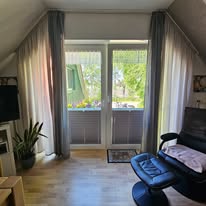 Willkommen in unserer komfortablen Ferienwohnung. Unsere modern und gemütlich eingerichtete Ferienwohnung bietet auf ca. 50 m² den idealen Ort zum Wohlfühlen und Entspannen. Sie verfügt über ein helles Wohnzimmer mit Schlafsofa und integrierter, voll ausgestatteter Einbauküche, ein freundliches Schlafzimmer mit Erholungsfaktor sowie ein Badezimmer mit Dusche, WC und Waschmaschine. Die Wohnung liegt in einer großzügigen, parkähnlichen Anlage mit altem Baumbestand – ein perfekter Ort für Ruhe, Erholung und viel Platz zum Spielen für Kinder. Ein gemütliches Blockhaus mit Terrasse steht Ihnen ebenfalls zur Verfügung. Unser besonderer Service für Sie: Auf Wunsch übernehmen wir gerne einen Ersteinkauf mit Lebensmitteln Ihrer Wahl – so beginnt Ihr Urlaub ganz entspannt, vom ersten Moment an. Wir freuen uns darauf, Sie als unsere Gäste begrüßen zu dürfen!