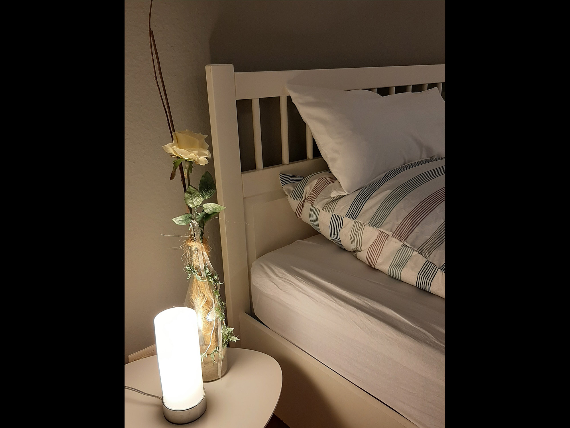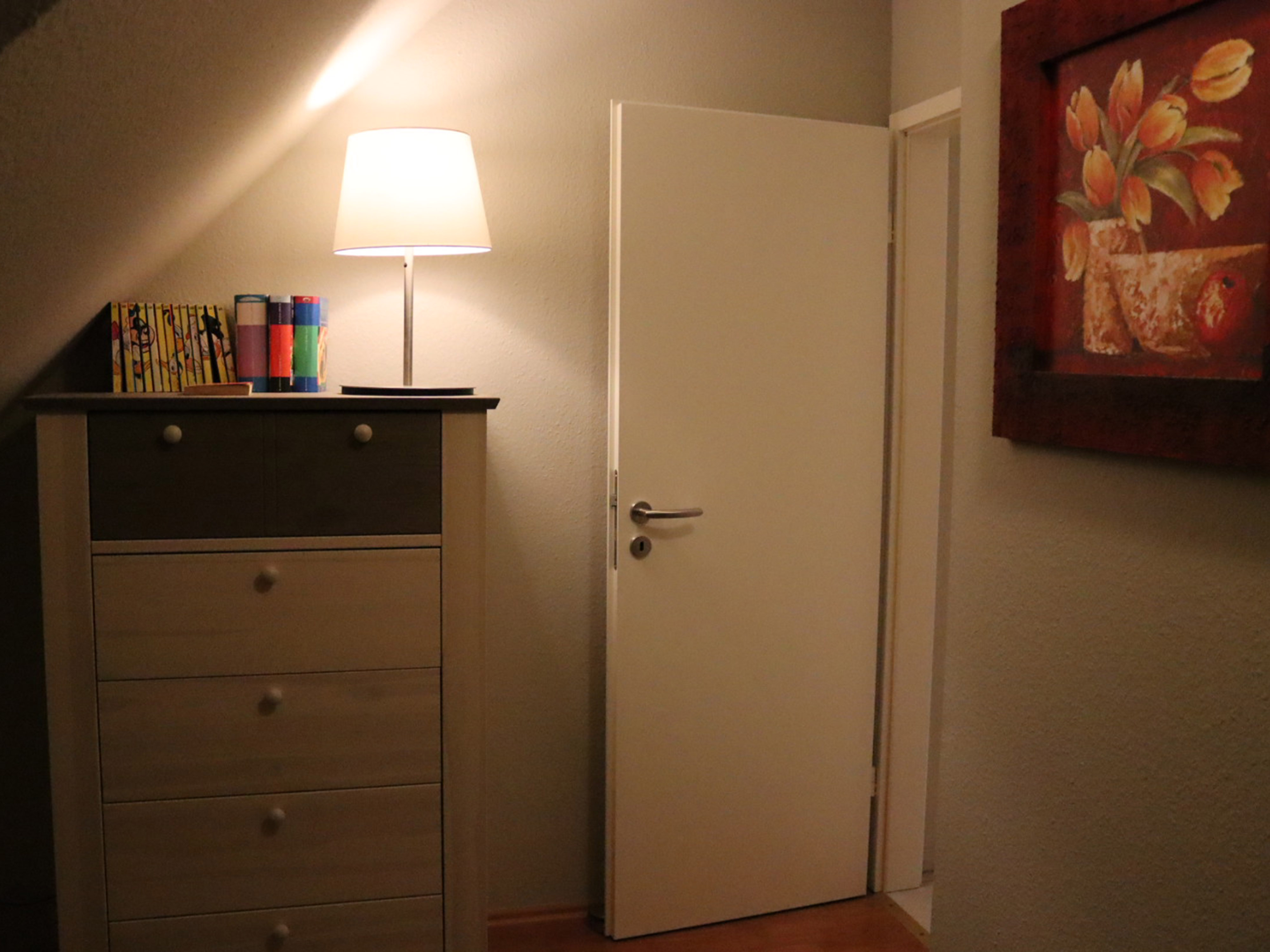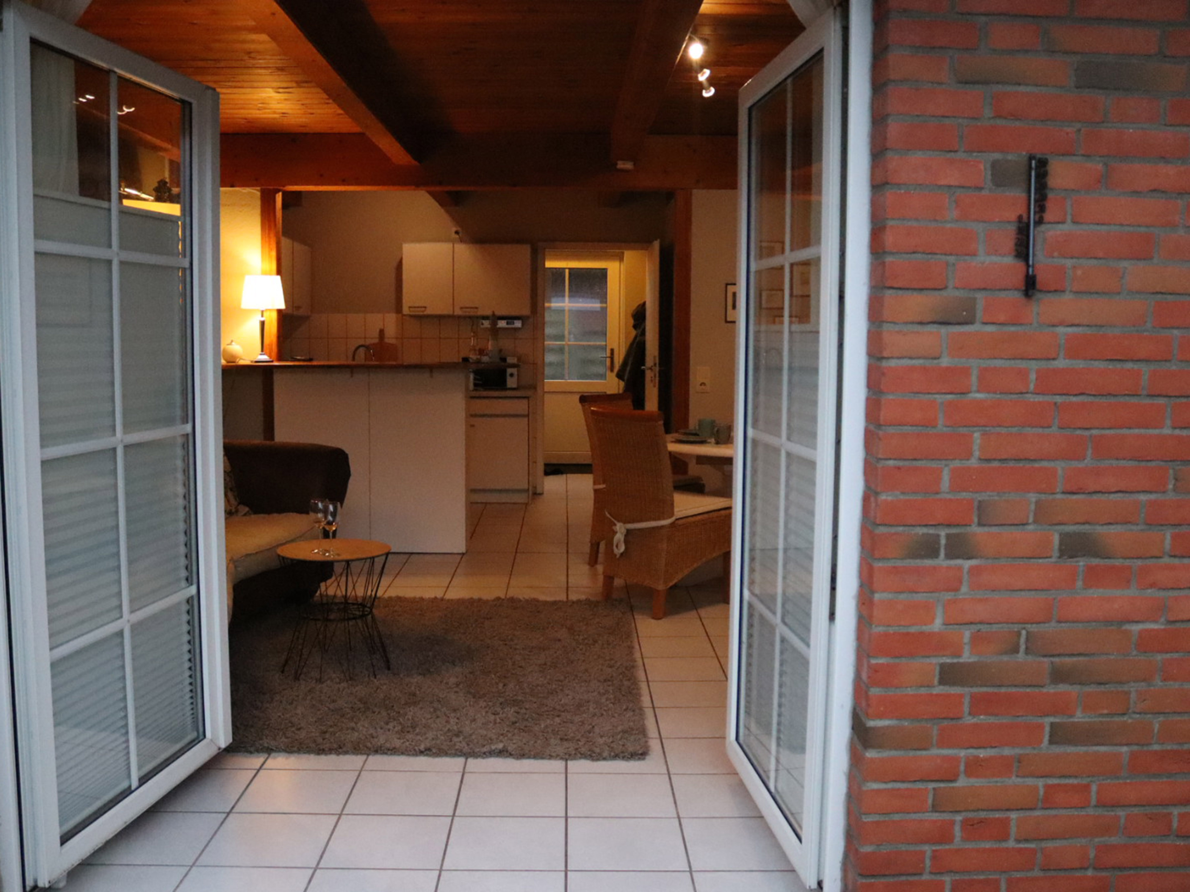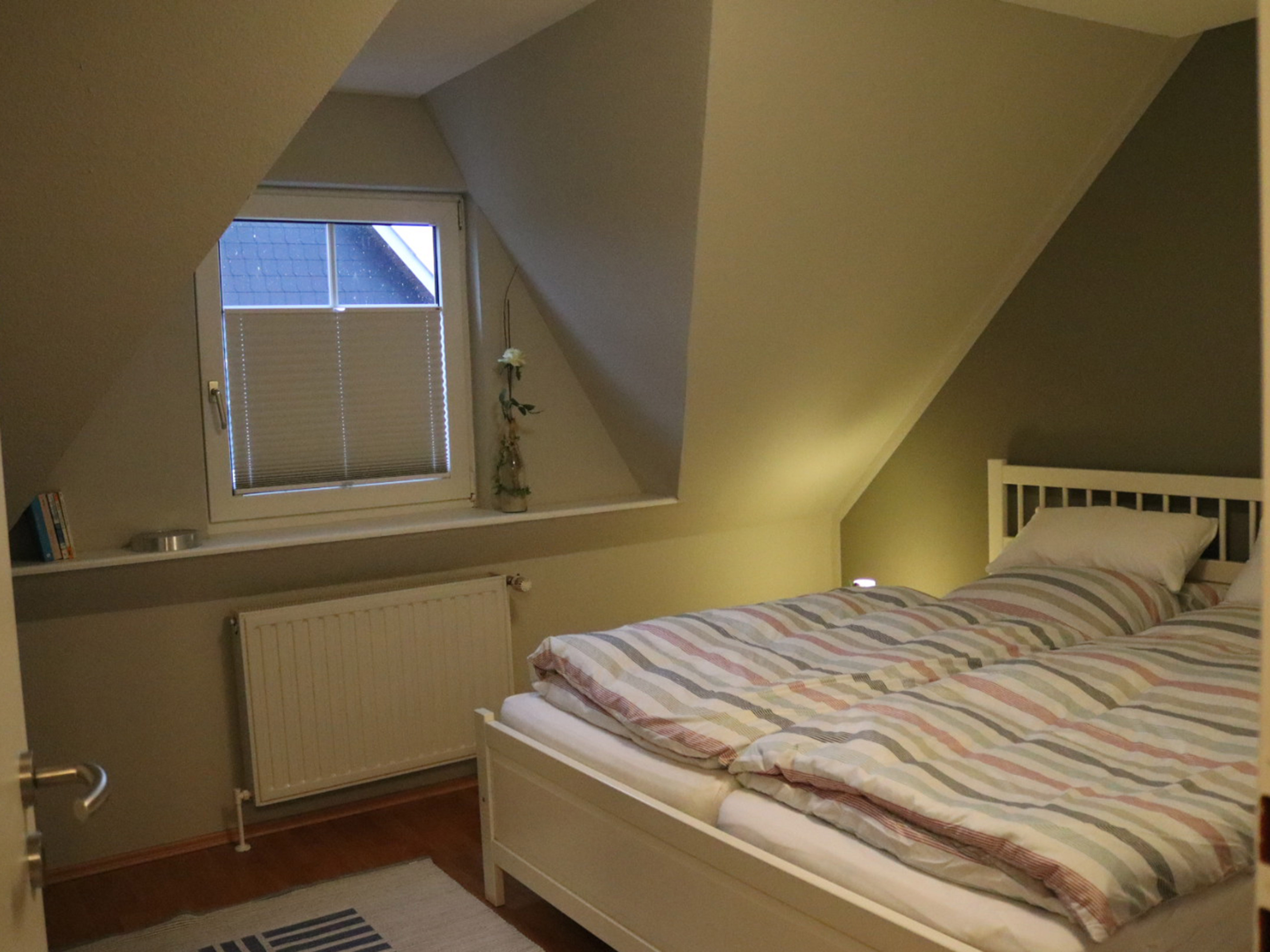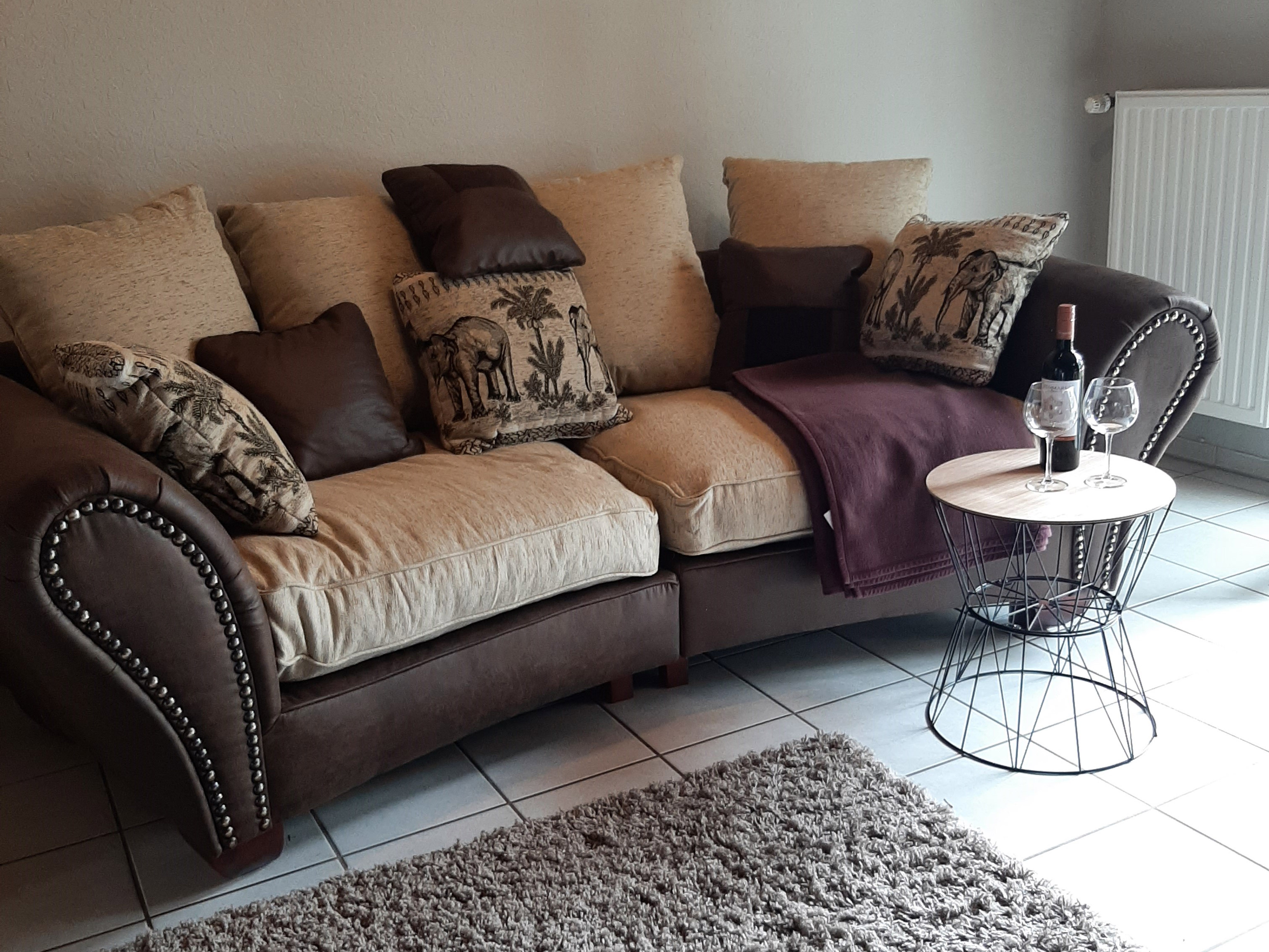 Die schicke Ferienwohnung Niebüll: Unten befindet sich ein kleiner Flur, ein Gäste-WC mit einer Waschmaschine. Der Wohn-Essbereich ist mit einer kleinen Küchenzeile mit Tresen, einer Essgruppe, einem Big-Sofa, sowie einem FlachbildTV ausgestattet. Vom Wohnbereich aus gelangt man direkt auf eine kleine gemütliche Terrasse. In der oberen Etage befindet sich ein Schlafzimmer mit Doppelbett und Kleiderschrank und ein weiteres Schlafzimmer mit Schlafsofa. Das Hauptbadezimmer mit Dusche, Wanne und WC finden Sie ebenfalls im OG. Internet via W-Lan nutzen Sie bei uns kostenfrei. Bei uns sind Haustiere herzlich willkommen. Wir berechnen für Ihren Hund 5 Euro pro Nacht. Die Bettwäsche und Handtücher sind bereits im Mietpreis enthalten.