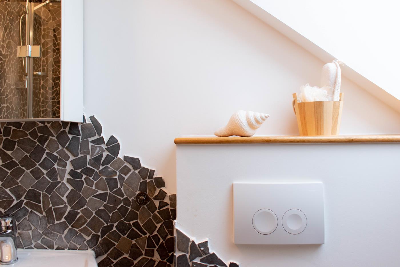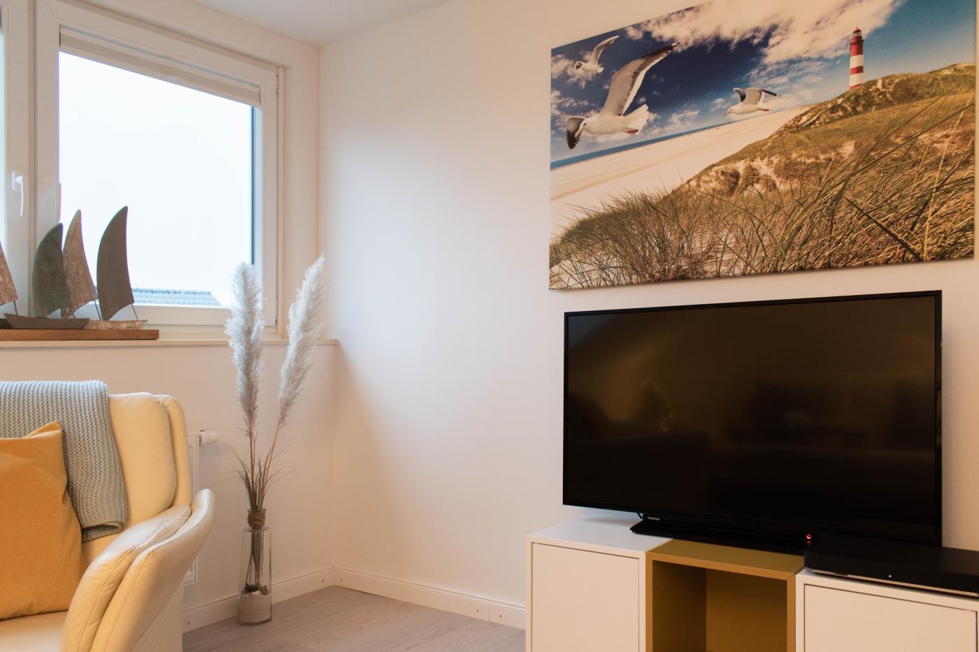 Die Ferienwohnung Perle überzeugt durch eine hochwertige und moderne Ausstattung. Kleine maritime Akzente spiegeln mit viel Liebe zum Detail die Nähe zum Meer wieder. Das leichte Farbschema in der Ferienwohnung wirkt frisch, aber dennoch gemütlich.