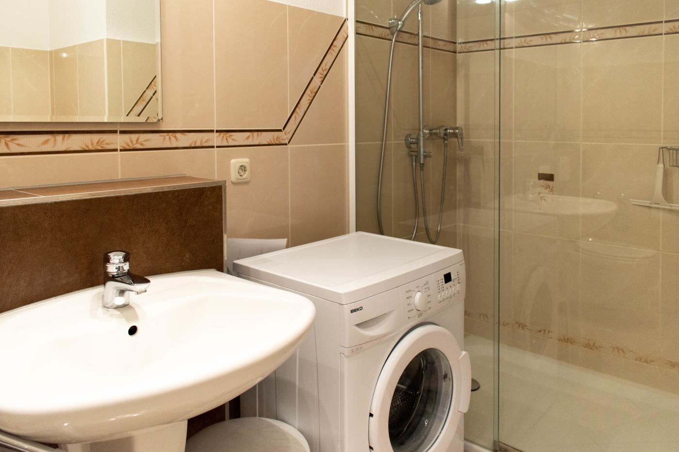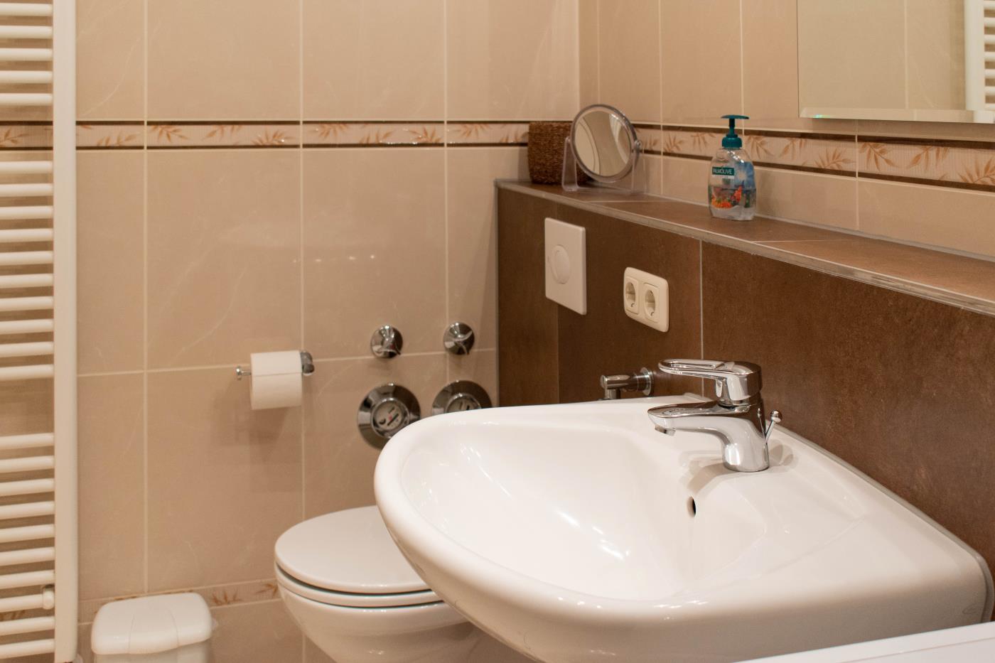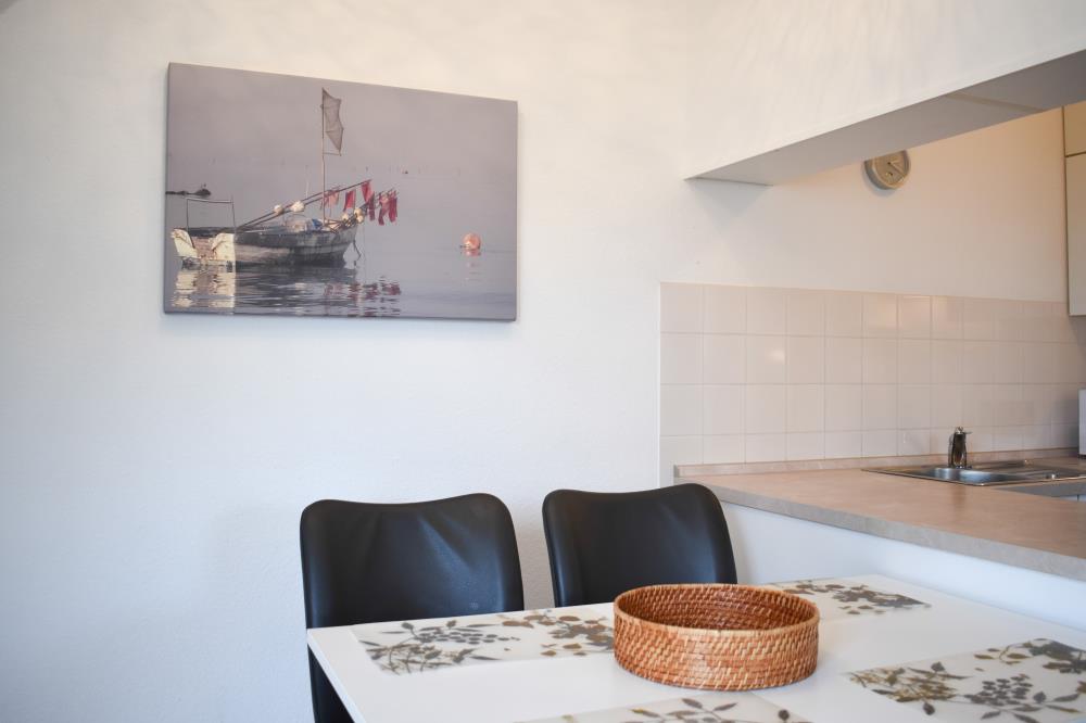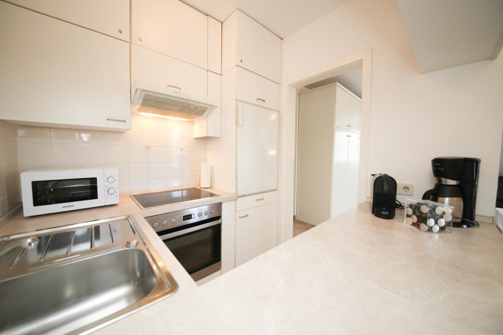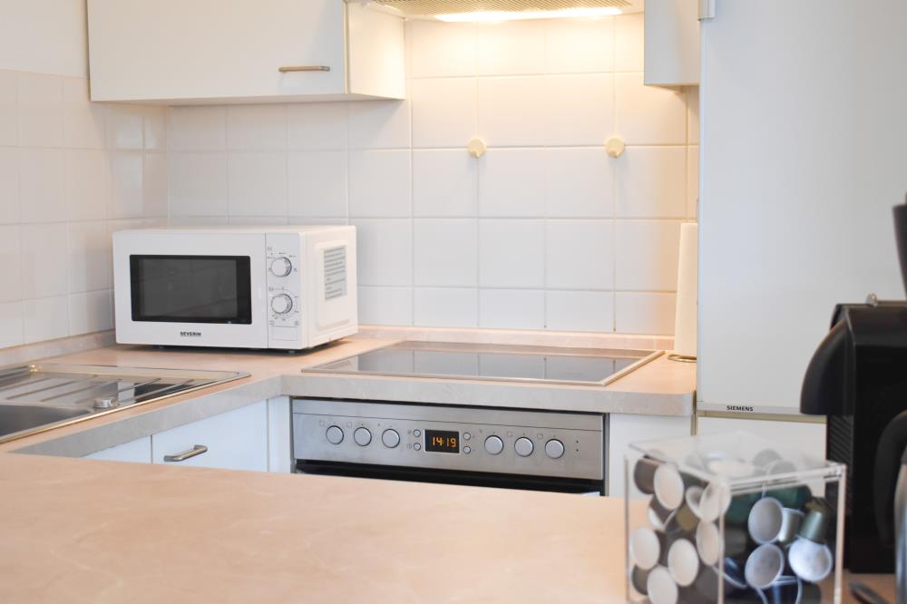 Zwei Zimmer bieten Platz für bis zu vier Personen. Das Wohn- und Esszimmer ist offen gestaltet und dient als gemeinsamer Aufenthaltsort für die ganze Familie. Durch die geschickte Raumaufteilung und die komfortable Schlafcouch lässt sich der Wohnraum im Handumdrehen zu einem Schlafzimmer umfunktionieren. Die angrenzende Küche ist komplett ausgestattet und lässt keine Wünsche offen. Über die Durchreiche erreichen Sie komfortabel den angrenzenden Essplatz. Außerdem gelingen Sie vom Wohnraum auf den nach Osten ausgerichteten Balkon mit gemütlichen Gartenmöbeln. Hier können Sie bereits beim Frühstück die ersten Sonnenstrahlen genießen und vital in den Tag starten. Im separaten Schlafzimmer entsteht durch die Dachschräge eine besonders gemütliche Atmosphäre. Der Clou ist, die beiden Betten (je 0,90er Breite) lassen sich ganz einfach zu einem gemütlichen Doppelbett zusammenschieben. So können Sie den Schlafplatz ganz nach Ihren Gewohnheiten gestalten. Das innenliegende Badezimmer verfügt über eine Waschmaschine, eine große Dusche und einen Handtuchheizkörper.