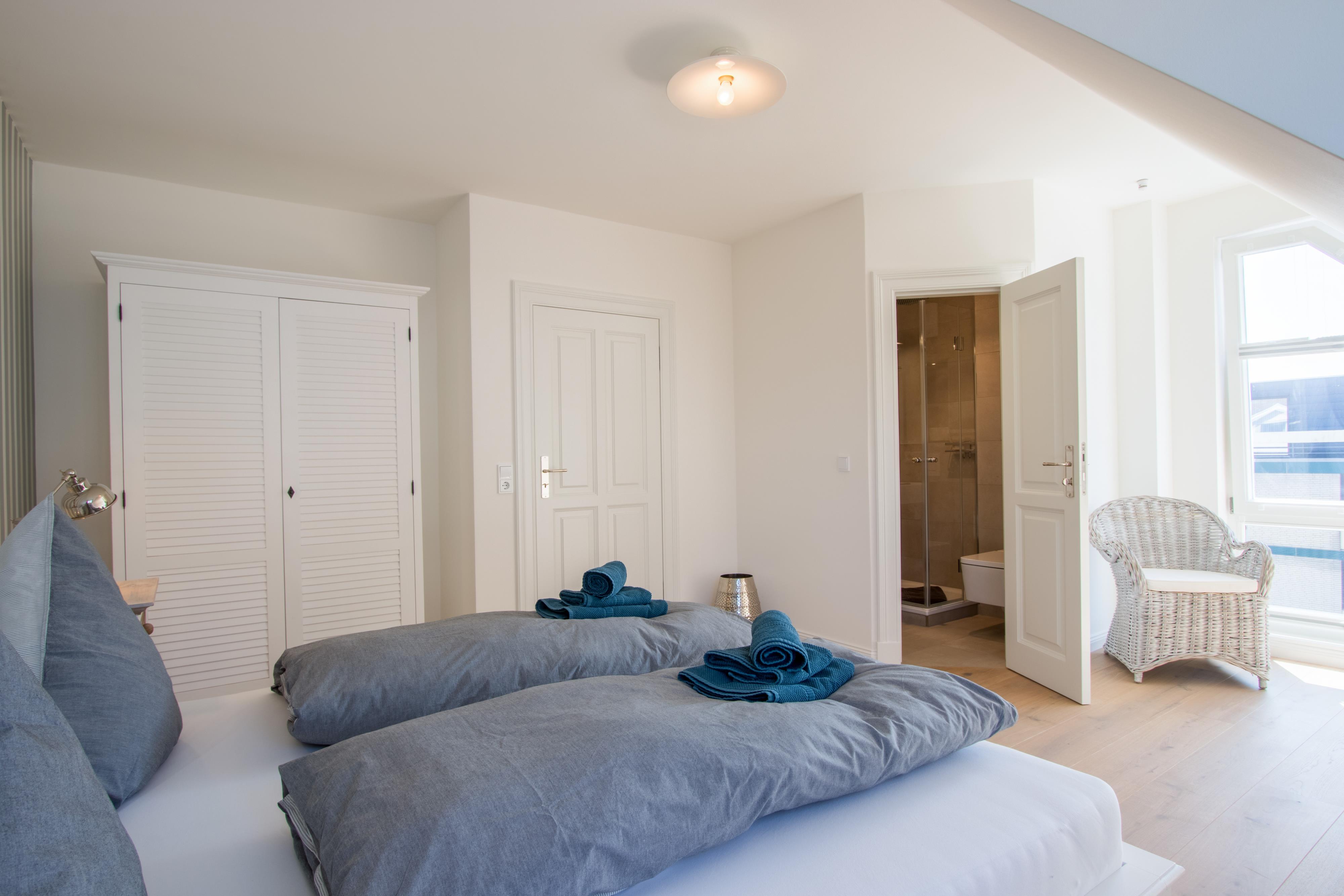 Zur Wohnung gehört 1 Parkplatz direkt vor dem Haus. Ein Strandkorb und ein kleiner Tisch mit Stühlen auf der Terrasse zur Strandseite können von allen Gästen genutzt werden. Die Sauna mit Ruheraum steht von September bis April allen Gästen des Strandhauses zur Verfügung.