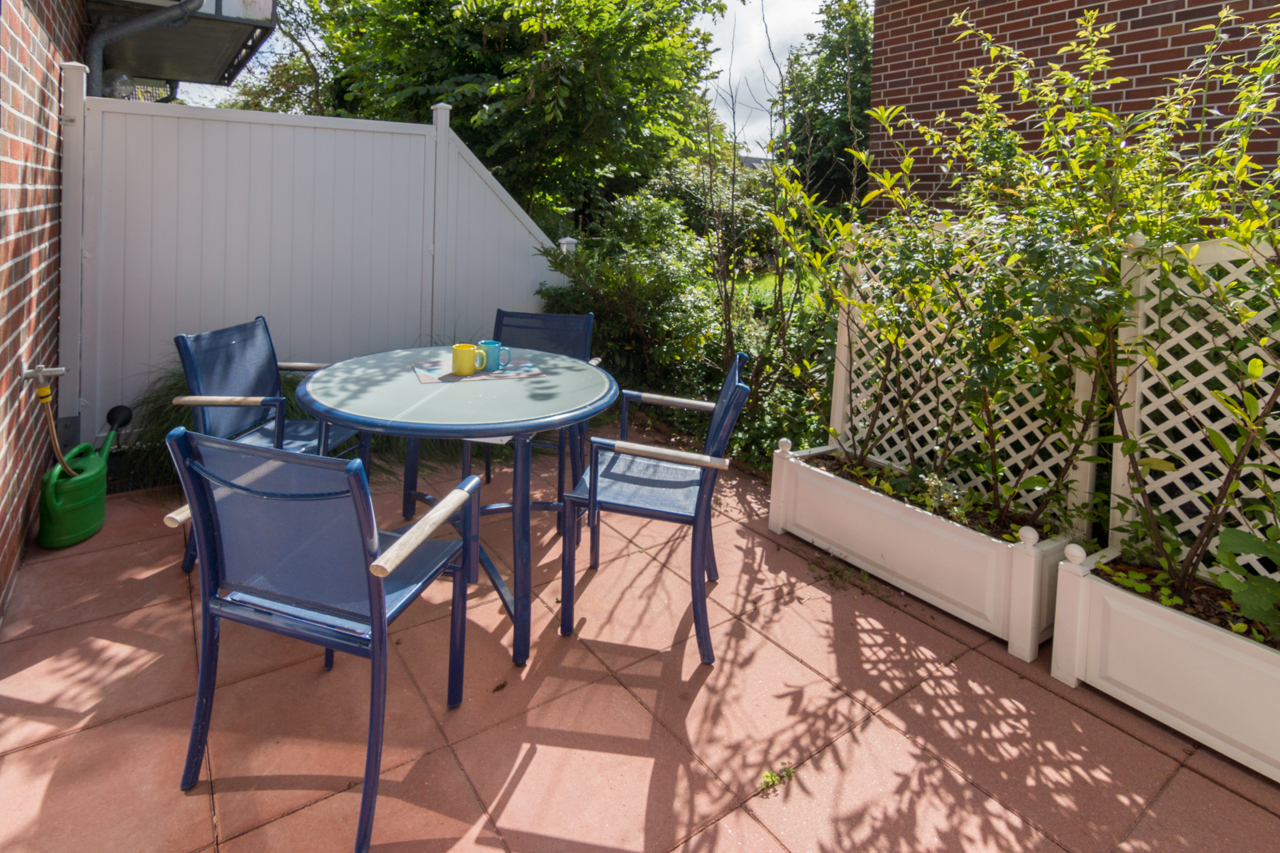 Direkt am Haus befindet sich der eigene Parkplatz, die Terrasse ist ausgestattet mit Gartenmöbel dazu zählen 4 bequeme Gartenstühle ein Tisch.Hinter dem Haus befindet sich noch ein Abstellraum-