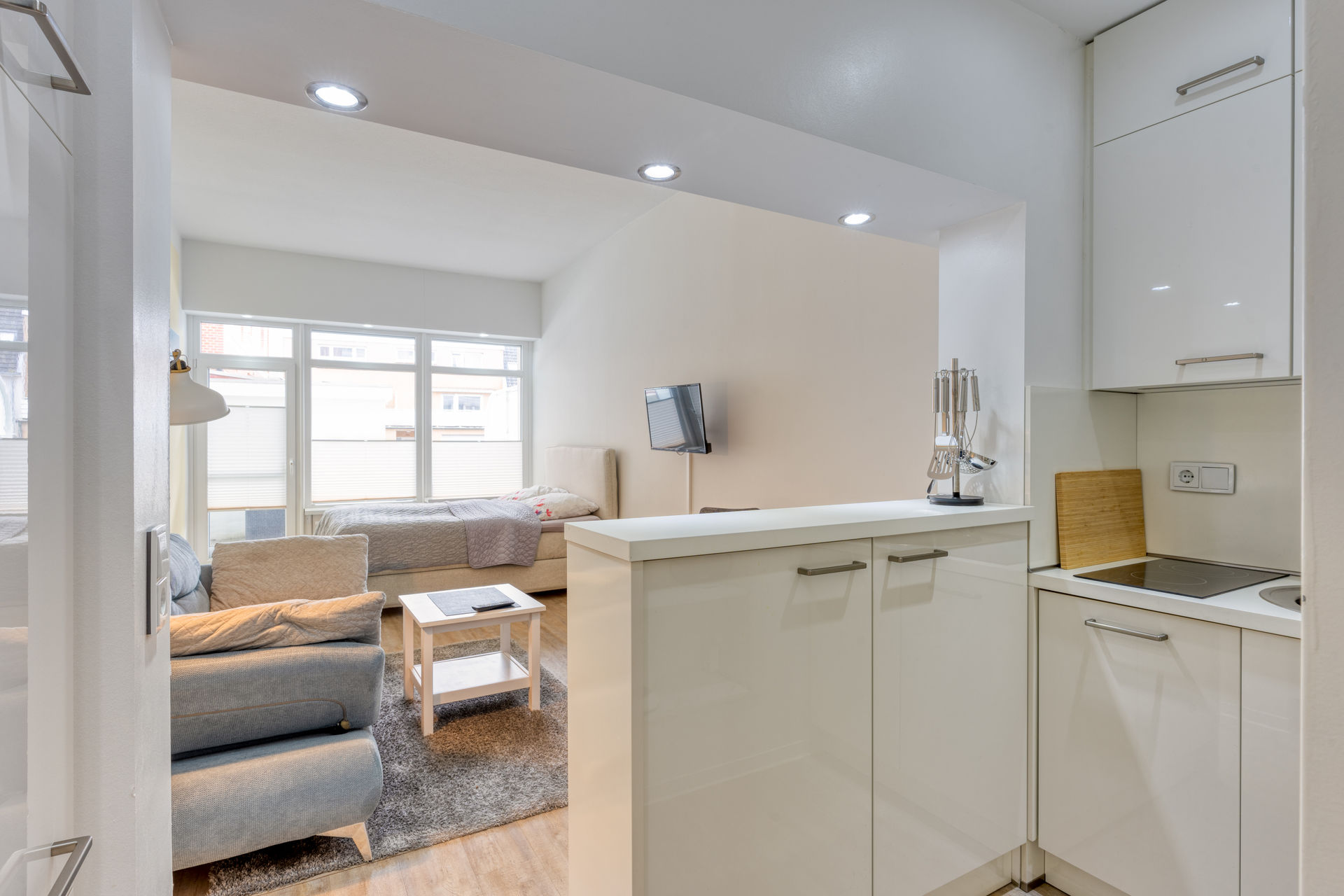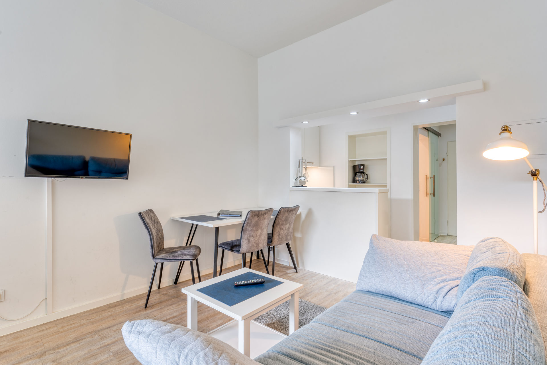 Das Appartement kombiniert Wohn- und Schlafbereich in einem offenen, hellen Raum und bietet so eine freundliche, wohnliche Atmosphäre. Ideal für Paare oder Alleinreisende, die eine stilvolle Unterkunft in zentraler Lage suchen.