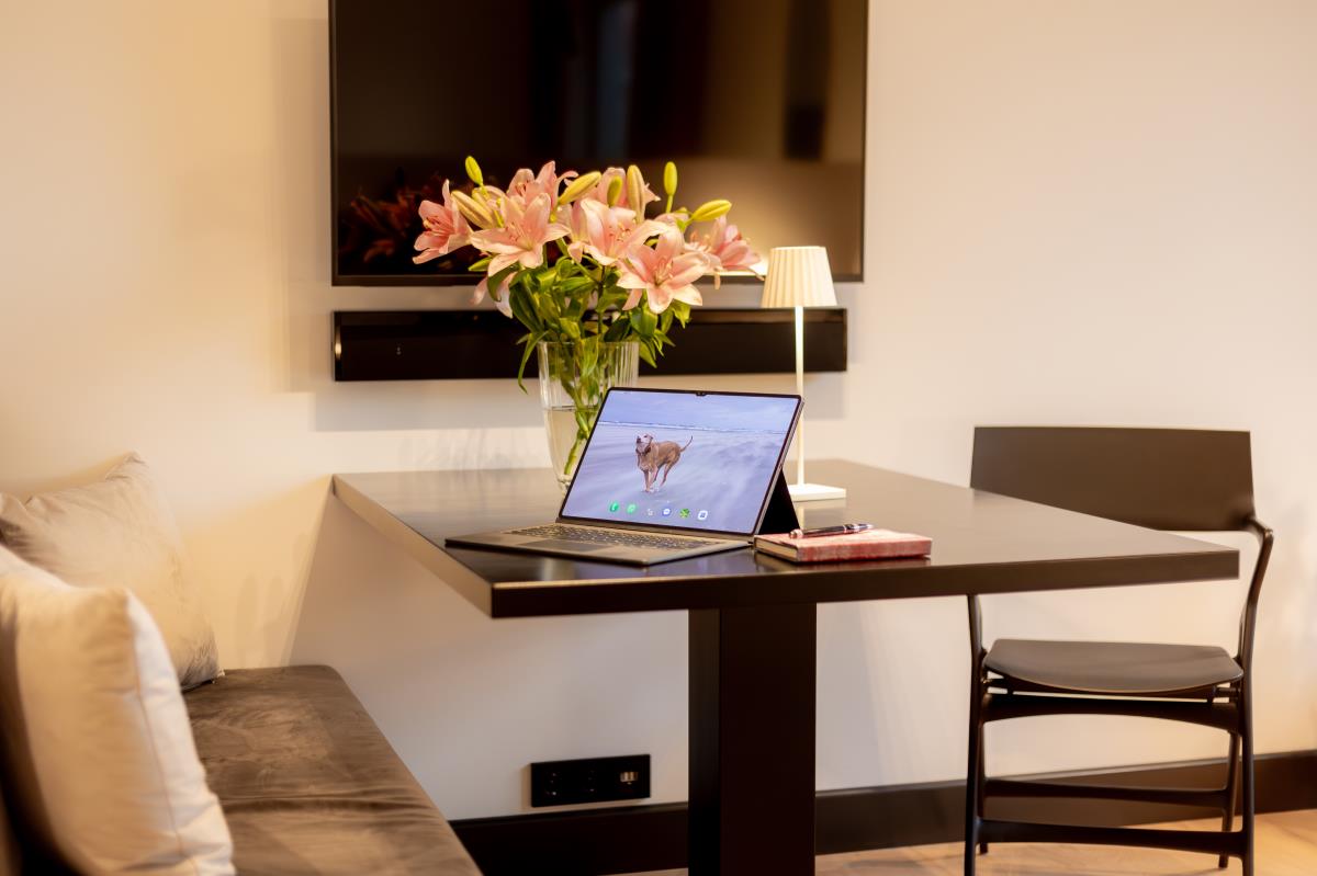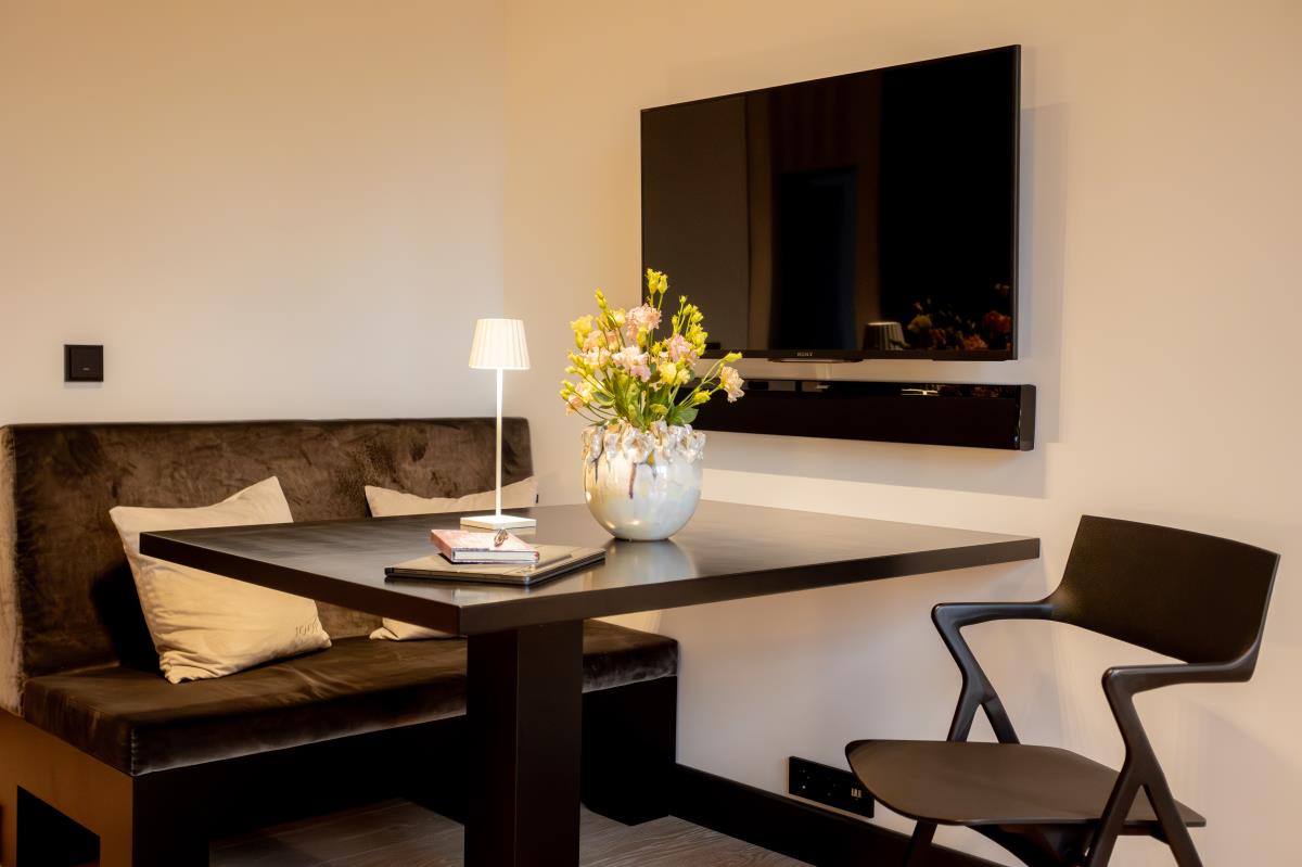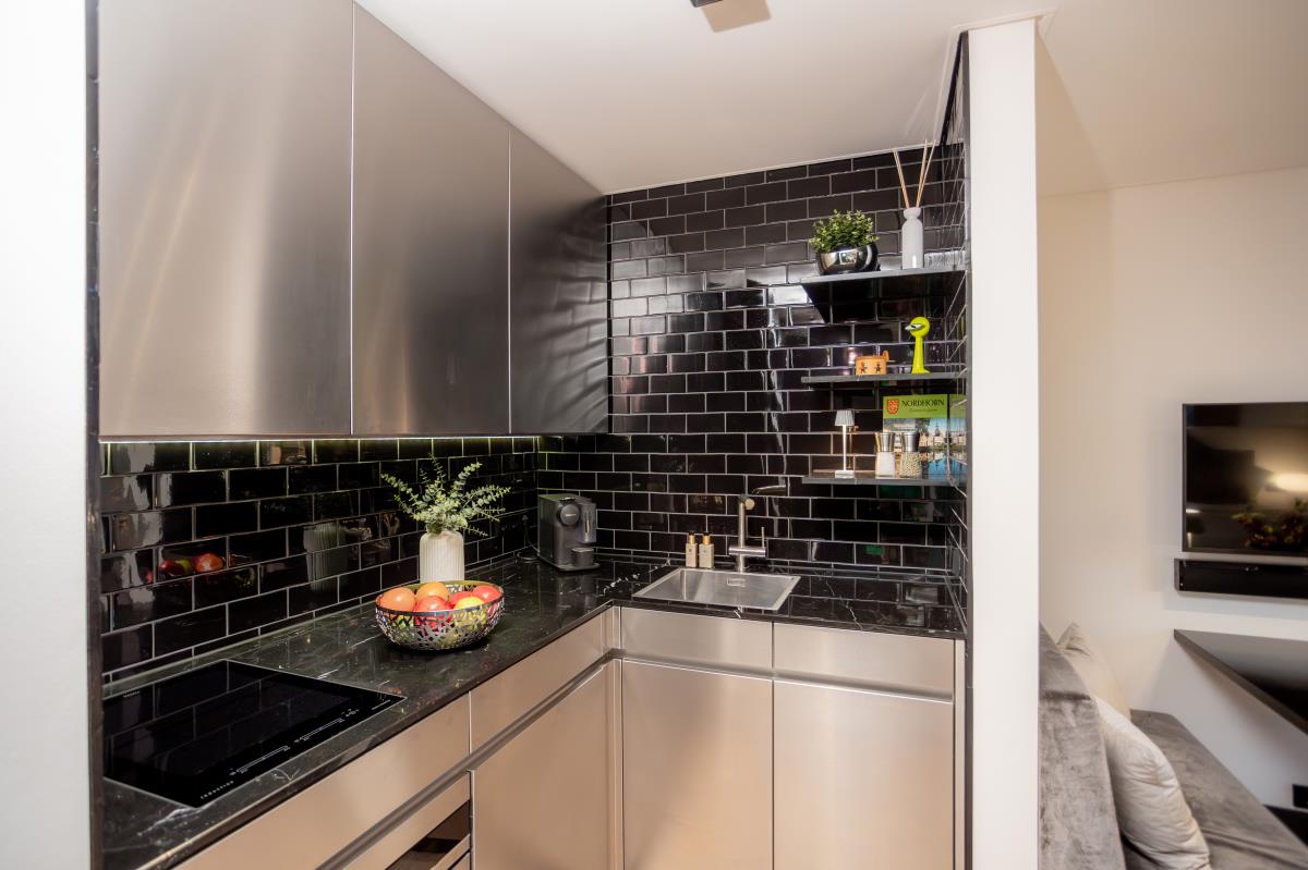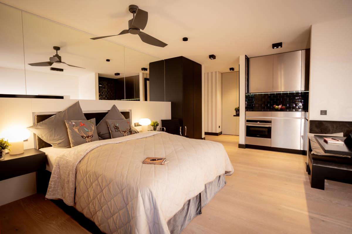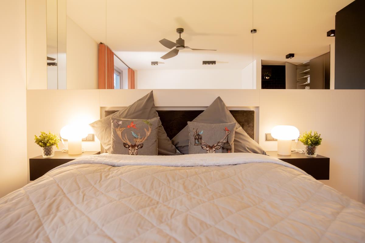 Die voll ausgestattete Küche lässt keine Wünsche offen und lädt zum Kochen und Genießen ein. Der offene Wohnbereich ist mit einem großen Flachbildfernseher und einer Bose-Soundanlage ausgestattet, damit Sie Ihre Lieblingsserien oder Musik in bester Qualität genießen können. Das hochwertige Badezimmer mit einer geräumigen Regendusche und eleganten Fliesen sorgt für einen Hauch von Luxus.