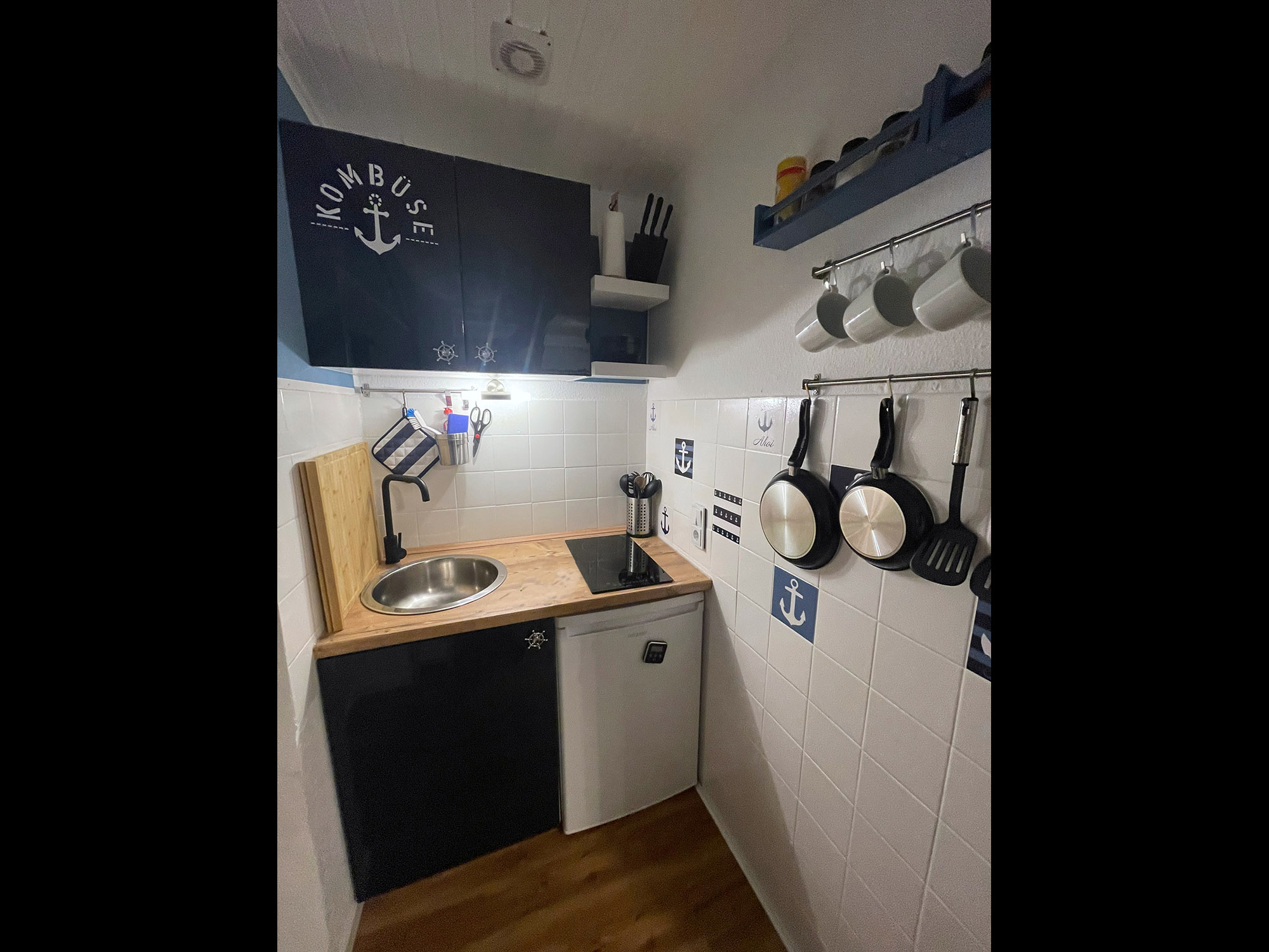 Die Wohnung wurde komplett renoviert und liebevoll neu eingerichtet. Sie ist mit Vinylboden im Wohn- und Schlafbereich ausgestattet. Sie verfügt über eine Pantryküche mit Spüle, 2 Herdplatten, Minibackofen, Toaster, Wasserkocher, Kaffeemaschine und Mixer.