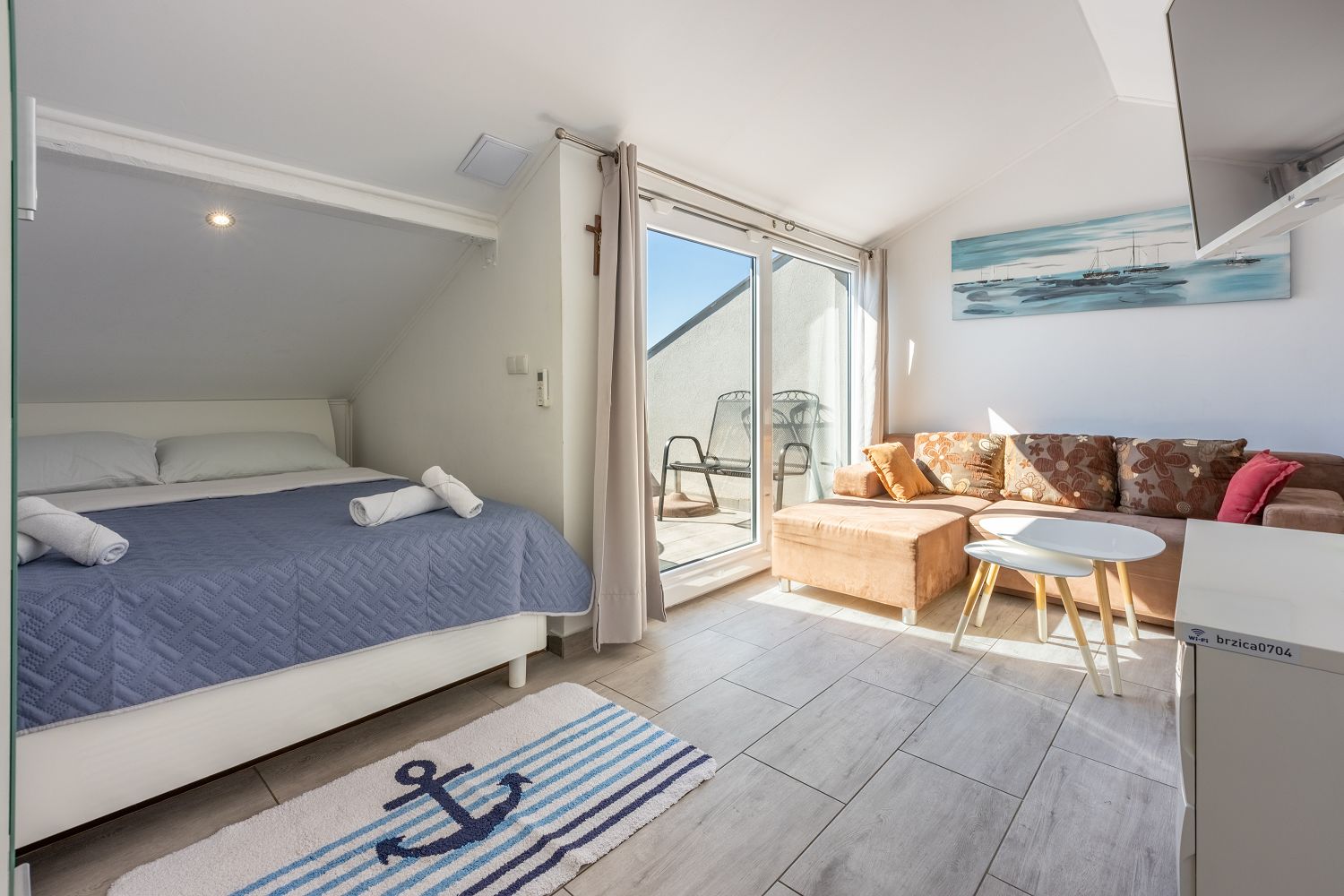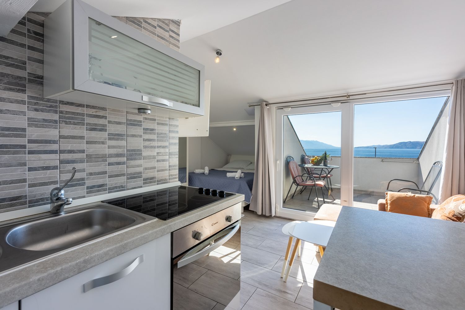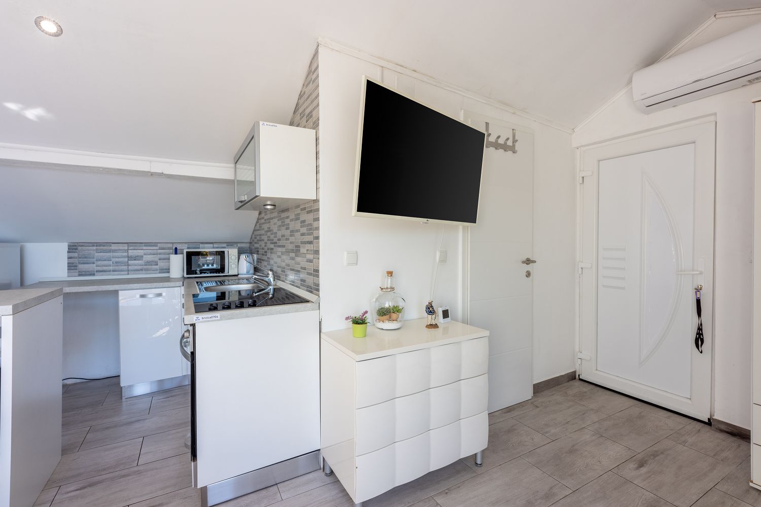 Dieses schöne Apartment besteht aus einem Wohn-/Esszimmer mit offener Küche, einem Schlafbereich im selben Raum und einem Badezimmer. Vom Wohnbereich aus hat man direkten Zugang zum eigenen Balkon. Dieser ist mit einem Tisch und zwei Stühlen ausgestattet. Im Erdgeschoss des Hauses steht ein gemeinsamer Garten mit Grill zur Verfügung. Ein Parkplatz befindet sich hinter dem Haus. Von dem Grundstück aus sind es nur wenige Schritte über die Küstenstraße zum Meer und den nahegelegenen Stränden. In der nahen Umgebung des Hauses befinden sich Restaurants und ein Lebensmittelgeschäft.