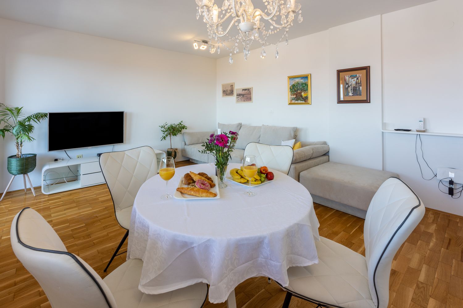 Das moderne Ferienapartment für zwei Personen liegt im Herzen von Novi Vinodolski und verbindet Komfort mit einer zentralen Lage. Es umfasst ein gemütliches Wohn- und Esszimmer mit integrierter Küche, ein einladendes Schlafzimmer, ein modernes Badezimmer sowie einen eigenen Balkon mit traumhaftem Meerblick, der sich perfekt zum Entspannen eignet. Ein privater Parkplatz auf dem Grundstück steht zur Verfügung, sodass Sie Ihr Fahrzeug sicher abstellen können. Haustiere sind in dieser Unterkunft nicht gestattet. Die Nutzung der Klimaanlage ist im Preis inbegriffen und dank WLAN-Internet bleiben Sie stets verbunden. Die Unterkunft ist nur 400 Meter vom Meer und 100 Meter vom Stadtzentrum entfernt. Sowohl der Strand als auch Geschäfte, Restaurants und Sehenswürdigkeiten sind bequem zu Fuß erreichbar. Die Wohnung ist ideal für Paare, die eine moderne und praktische Unterkunft in zentraler Lage suchen.