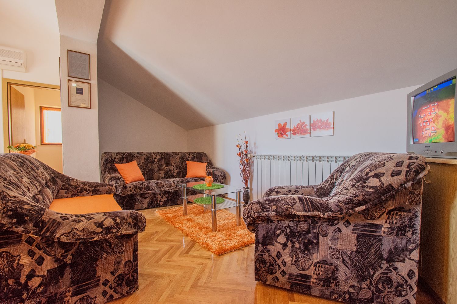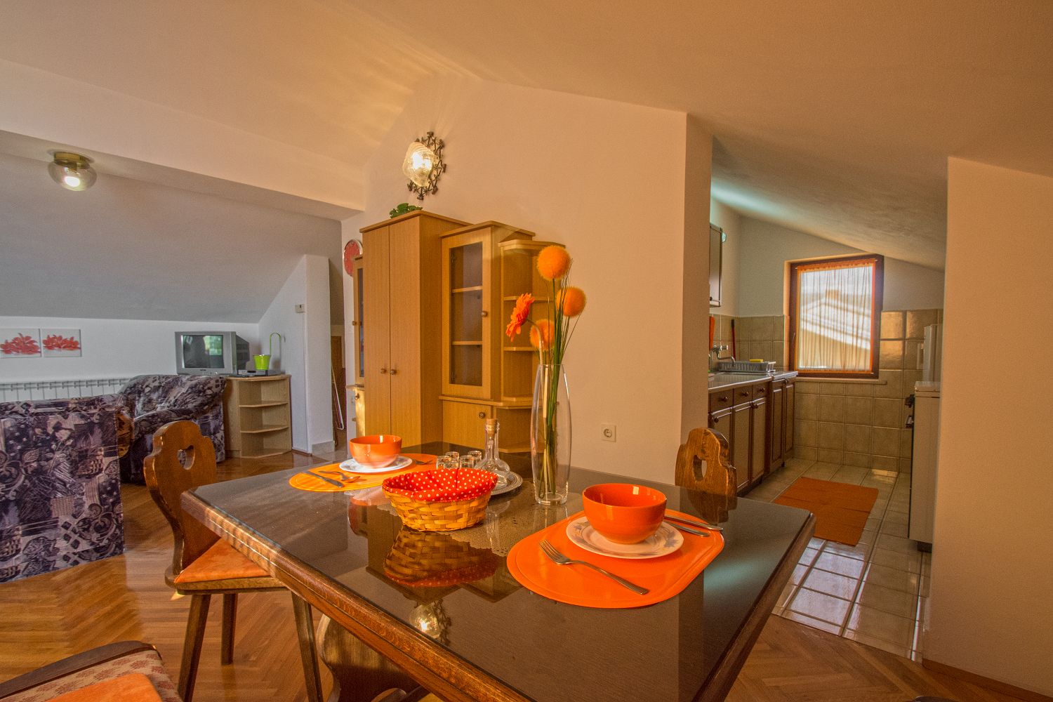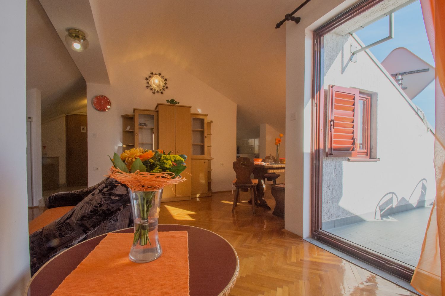 Diese schöne Dachgeschosswohnung mit atemberaubendem Meerblick befindet sich im Urlaubsort Novi Vinodolski. Sie ist eine von drei Ferienwohnungen in diesem Haus. Sie besteht aus einem Wohn-/Esszimmer mit Küche, zwei Schlafzimmern, einem Badezimmer und einem schönen Balkon. Im Gartenbereich des Hauses steht eine gemeinsame Terrasse mit Grill zur Verfügung. Vom Objekt bis zum Strand sind es 400 Meter und die Entfernung zum Zentrum beträgt 1,4 km. Das nächstgelegenste Lebensmittelgeschäft befindet sich 400 Meter von der Ferienimmobilie entfernt. In 500 Metern ist das umliegende Restaurant zu erreichen.