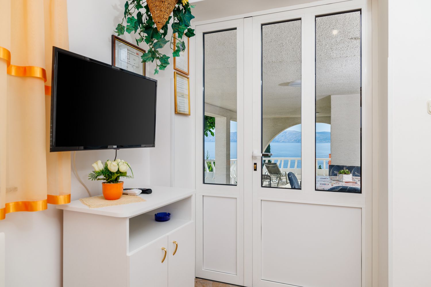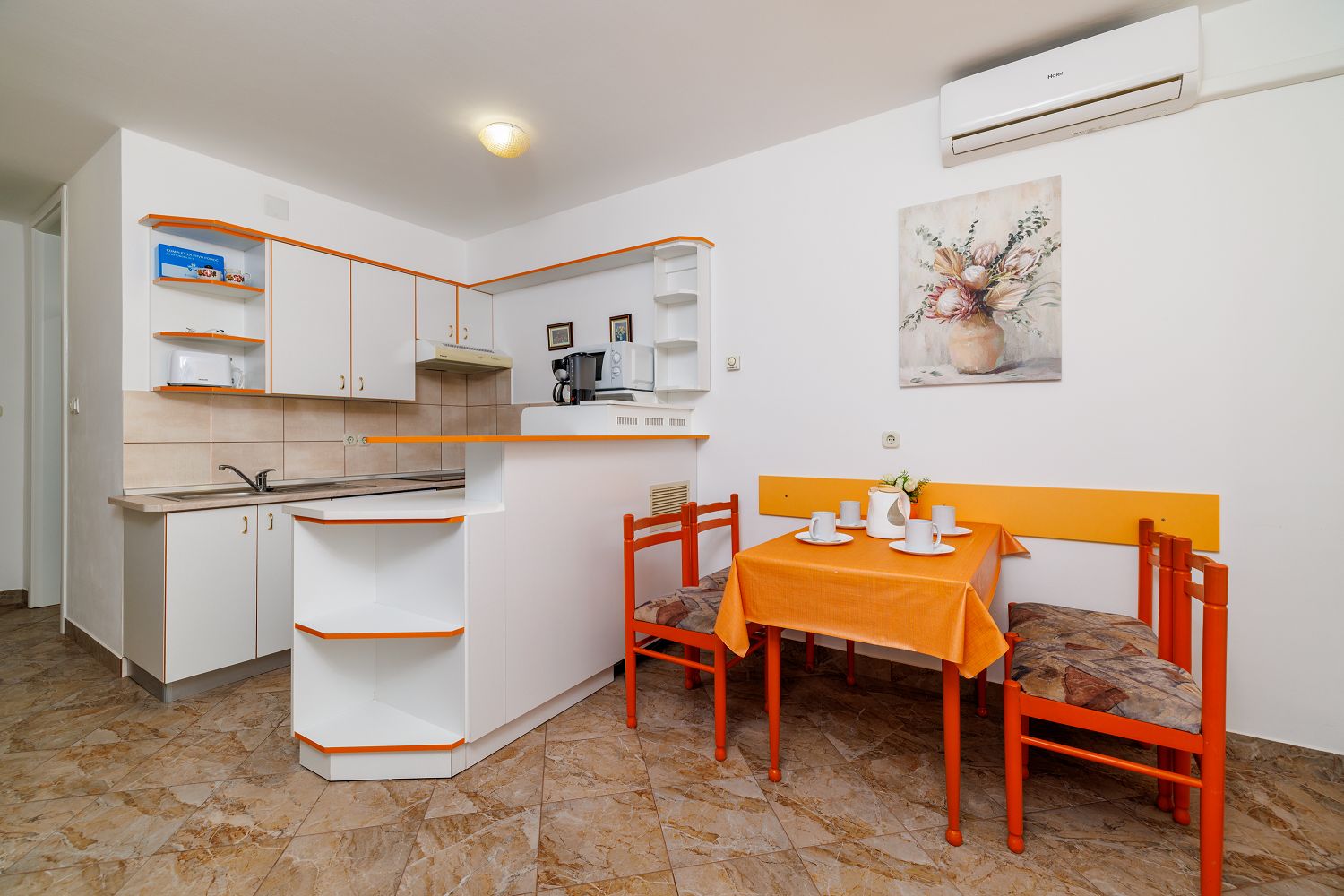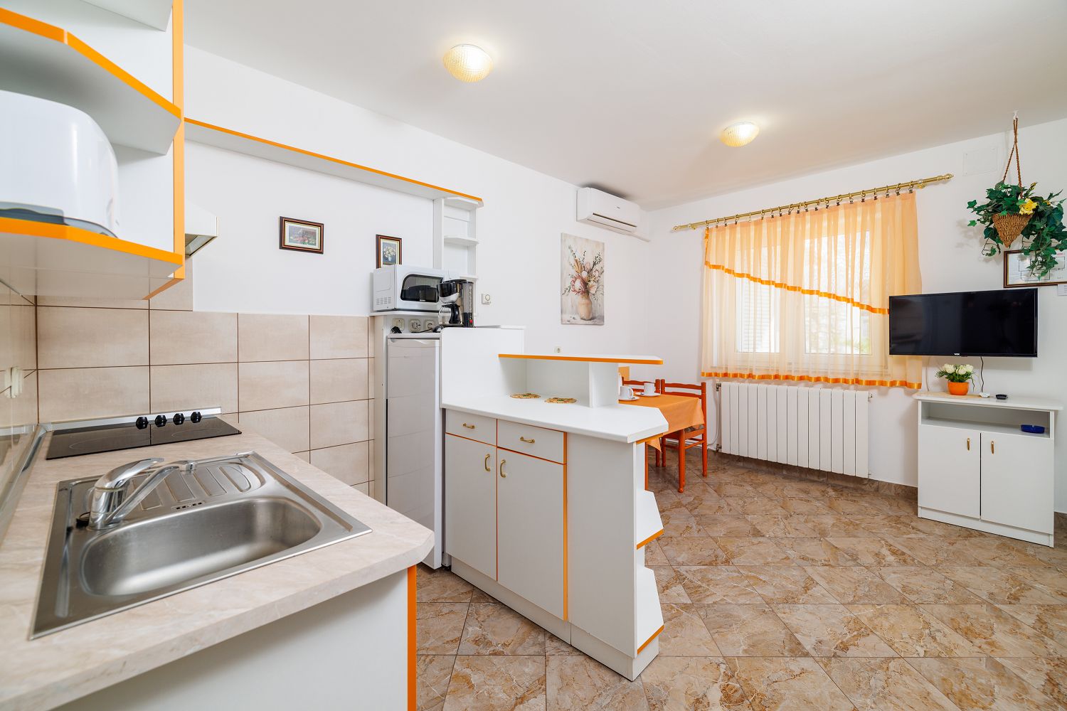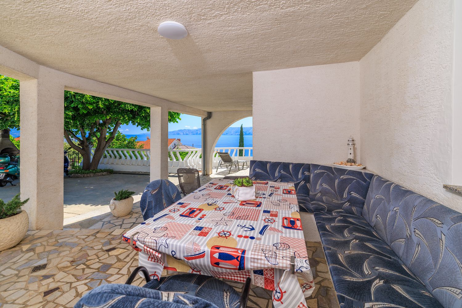 Diese Ferienwohnung für maximal fünf Personen liegt über den Dächern von Novi Vinodolski. Die 45 m² große Erdgeschosswohnung verfügt über eine komfortable Wohnküche, zwei Schlafzimmer, ein Badezimmer und eine überdachte Terrasse mit Eckbank und Tisch. Vom Objekt bis zum Strand sind es 800 Meter und die Entfernung zum Zentrum beträgt 800 Meter. Das nächstgelegenste Lebensmittelgeschäft befindet sich 150 Meter von der Ferienimmobilie entfernt. In 300 Metern ist das umliegende Restaurant zu erreichen.