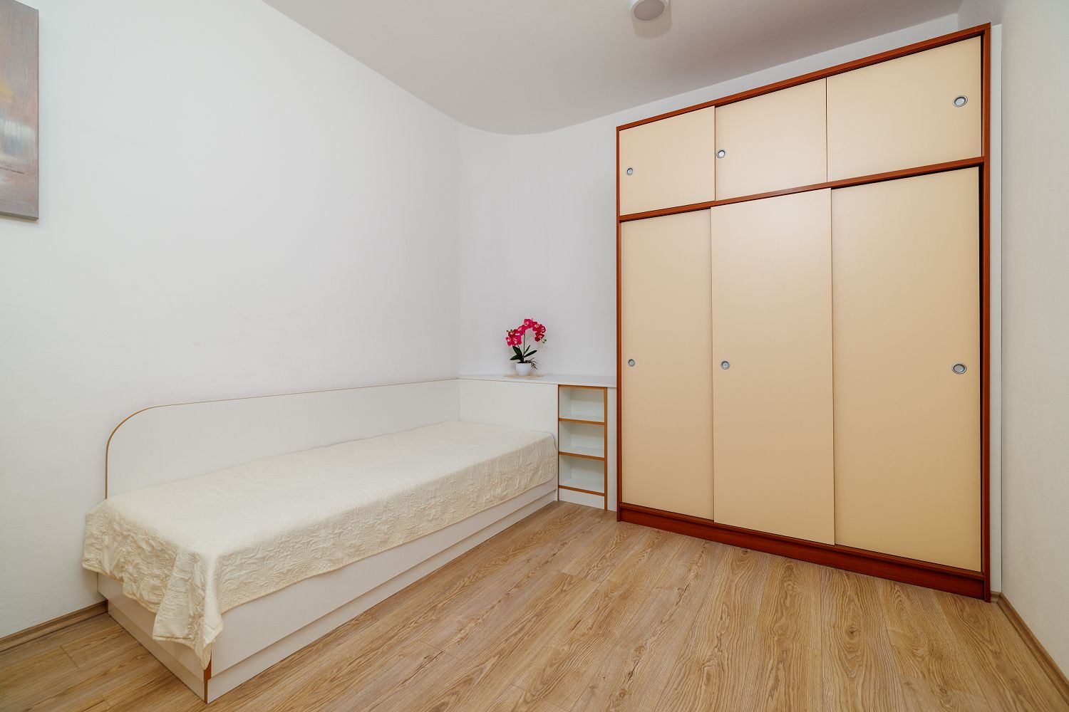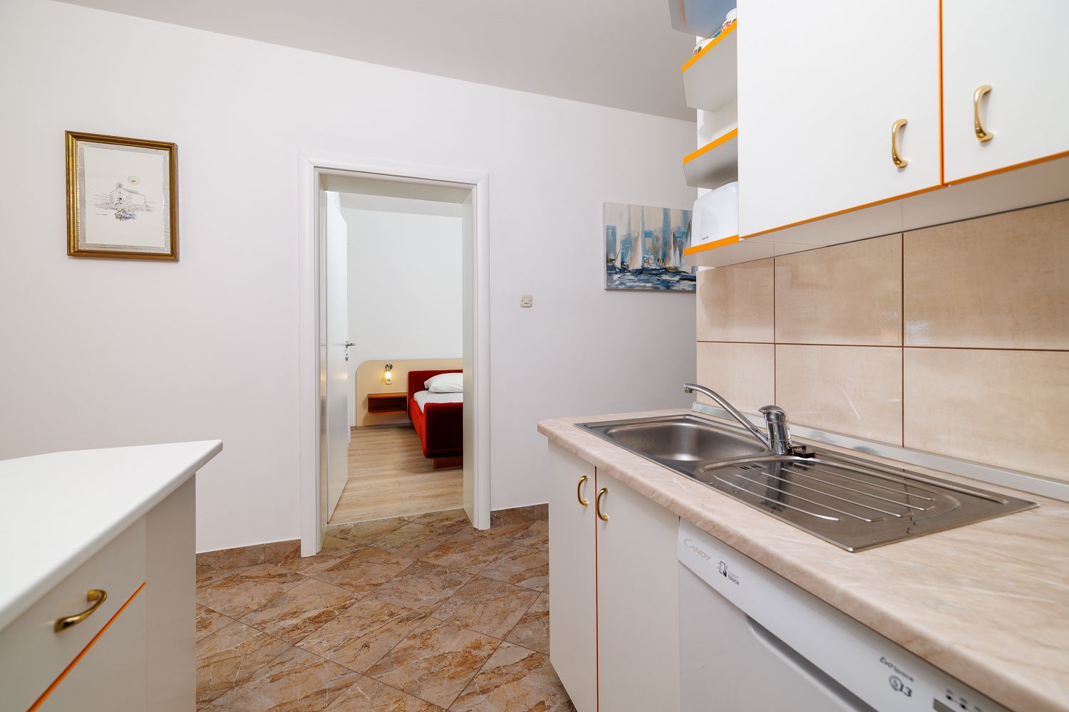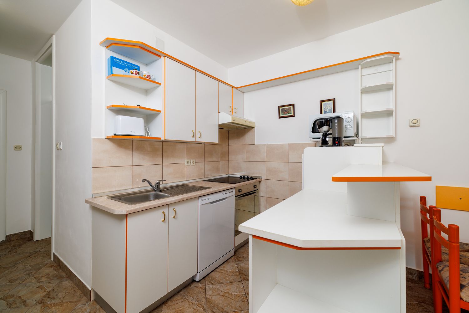 Diese Ferienwohnung für maximal fünf Personen liegt über den Dächern von Novi Vinodolski. Die 45 m² große Erdgeschosswohnung verfügt über eine komfortable Wohnküche, zwei Schlafzimmer, ein Badezimmer und eine überdachte Terrasse mit Eckbank und Tisch. Vom Objekt bis zum Strand sind es 800 Meter und die Entfernung zum Zentrum beträgt 800 Meter. Das nächstgelegenste Lebensmittelgeschäft befindet sich 150 Meter von der Ferienimmobilie entfernt. In 300 Metern ist das umliegende Restaurant zu erreichen.