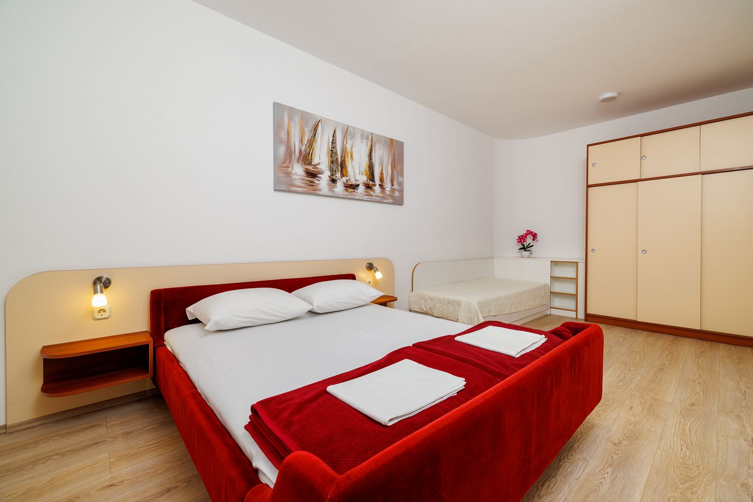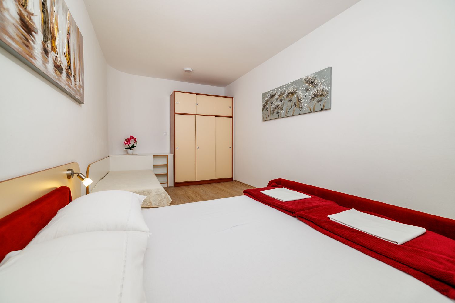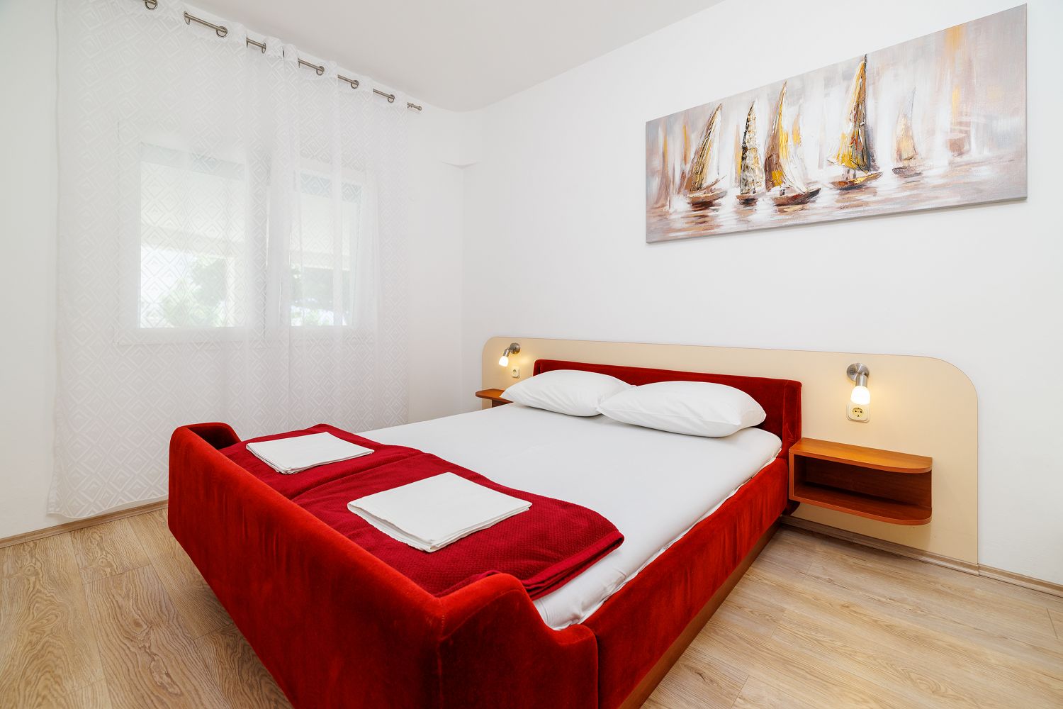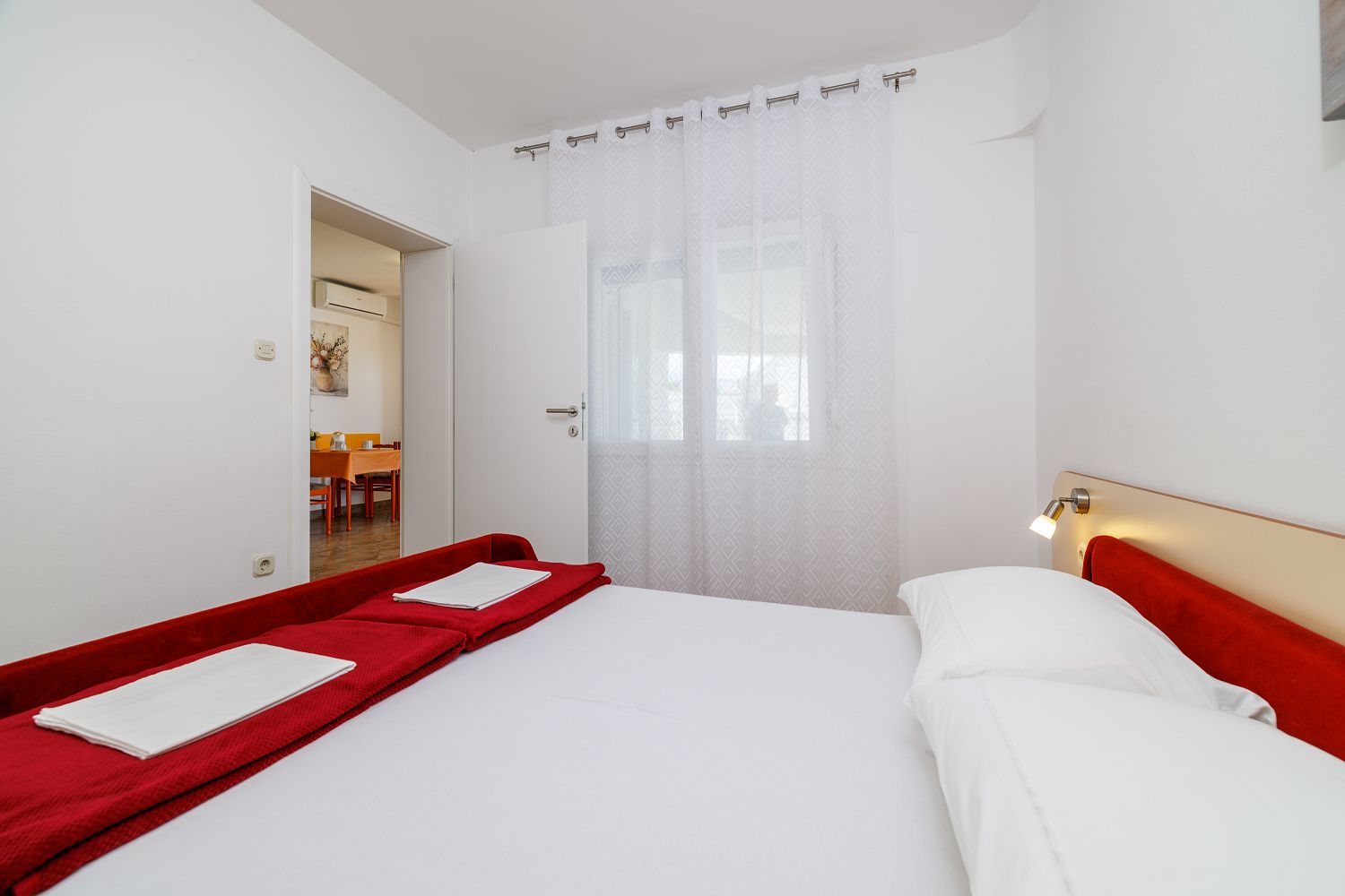 Diese Ferienwohnung für maximal fünf Personen liegt über den Dächern von Novi Vinodolski. Die 45 m² große Erdgeschosswohnung verfügt über eine komfortable Wohnküche, zwei Schlafzimmer, ein Badezimmer und eine überdachte Terrasse mit Eckbank und Tisch. Vom Objekt bis zum Strand sind es 800 Meter und die Entfernung zum Zentrum beträgt 800 Meter. Das nächstgelegenste Lebensmittelgeschäft befindet sich 150 Meter von der Ferienimmobilie entfernt. In 300 Metern ist das umliegende Restaurant zu erreichen.