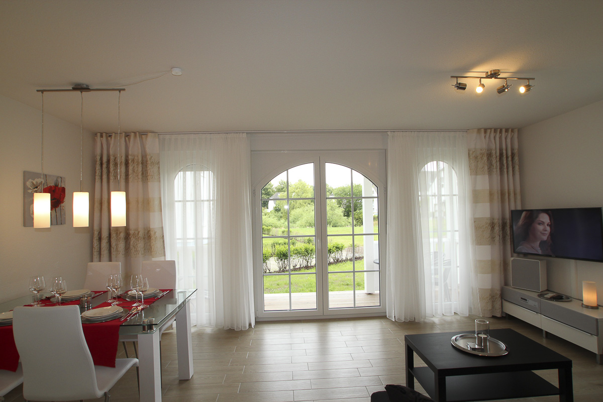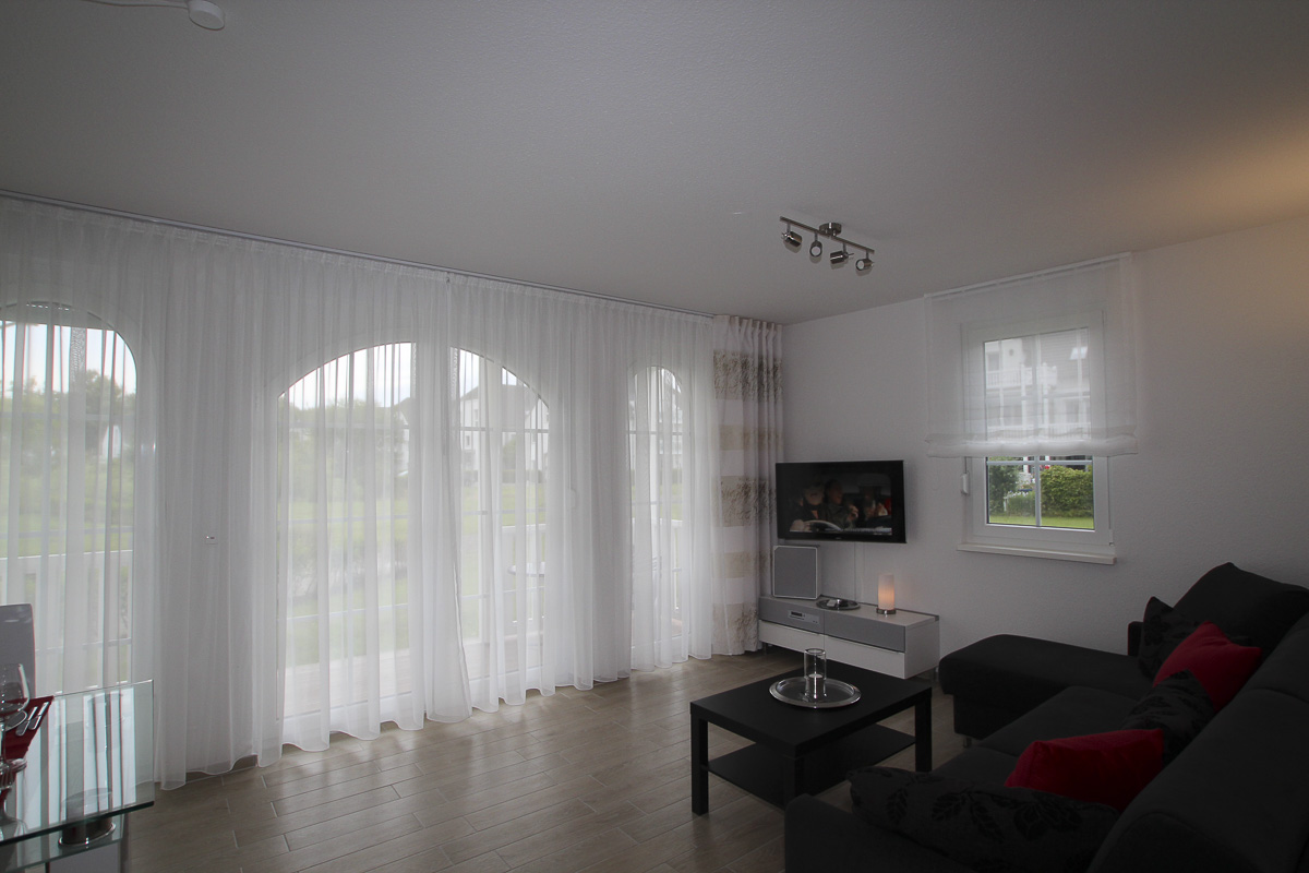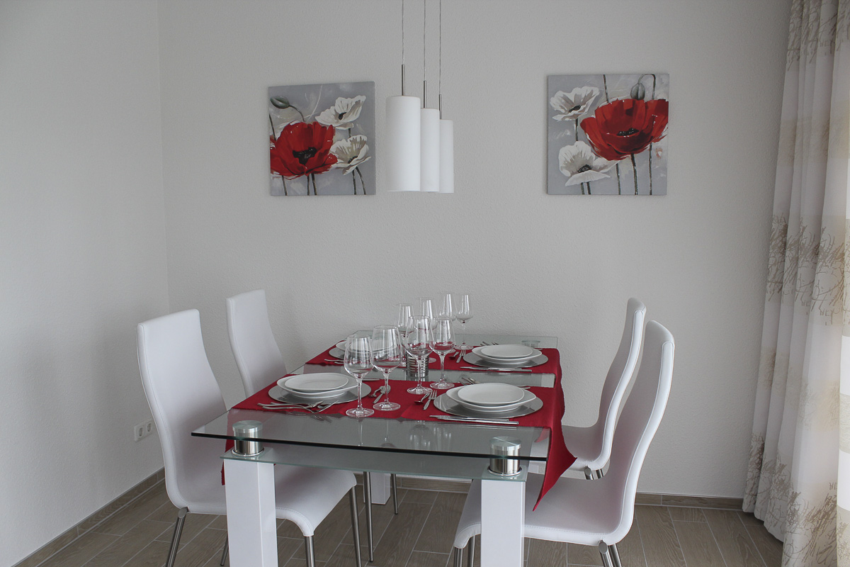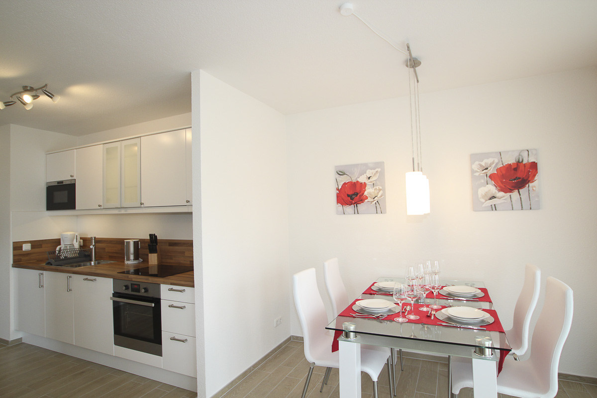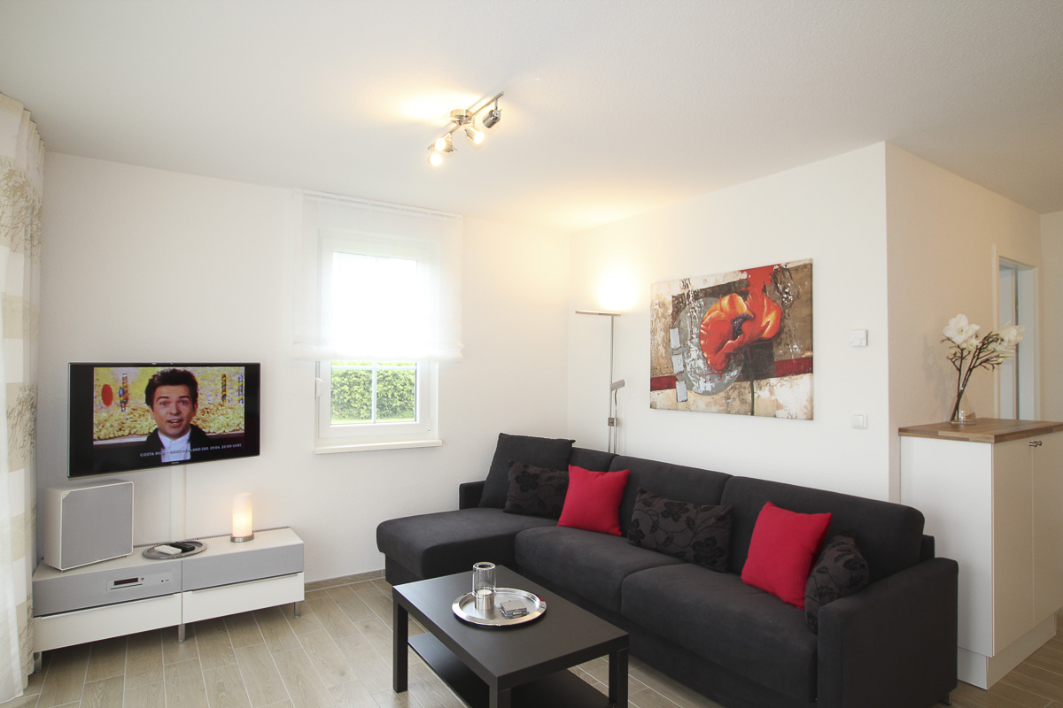 Das Wohnzimmer hat eine offene Küche, in der Sie alle modernen Geräte, incl. Geschirrspüler, Mikrowelle und Kühlschrank mit Gefrierfach vorfinden. Die Schlafcouch (mit Kaltschuammatratze) bietet Schlafgelegenheit für 2 Personen . Im Schlafzimmer steht ein Doppelbett. Die Wohnung wird über eine Fußbodenheizung beheizt und der Fußboden ist komplett gefliest, die Fenster sind mit Außenrollläden und Insektenschutzgitter ausgestattet. Für die kleinsten Gäste stehen ein Kinderreisebett und ein Kinderhochstuhl zur Verfügung. Das Badezimmer hat ein Duschbad und erwähnenswert ist auch das Fenster im Bad. Außerdem stehen ein Bügelbrett und ein Bügeleisen bereit. Zur Wohnung gehört ein Fahrradabstellraum (verschlossen).WLAN kann kostenfrei genutzt werden. Ein PKW Stellplatz steht den Gästen direkt vor dem Haus auf dem hauseigenen Grundstück kostenfrei zur Verfügung.