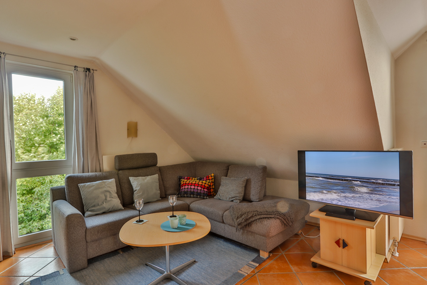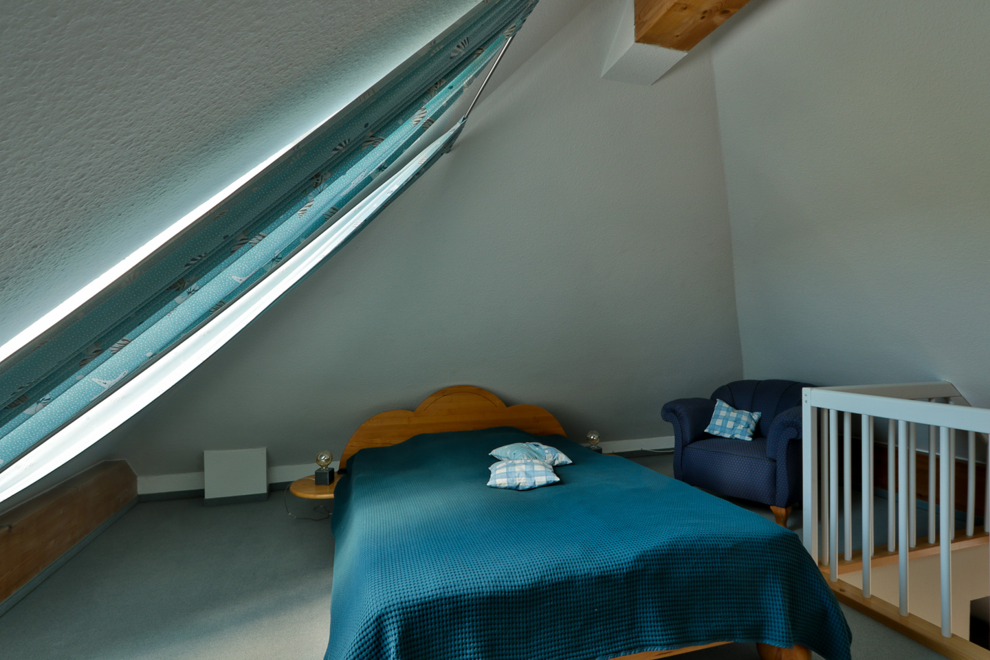 Hier erwartet Sie eine sehr schöne, geräumige und helle Ferienwohnung mit 1 Schlafzimmer mit 2 Einzelbetten, welche sich zu einem Doppelbett zusammenfügen lassen und einem 2. offenen Schlafzimmer in der Galerie mit einem Doppelbett 160 x 200 cm. Das Wohnzimmer hat eine offene Küche mit allen modernen Geräten und einem Esstisch. Das Bad mit Dusche, WC und Waschmaschine fehlt natürlich auch nicht. Auf dem Balkon können Sie schöne Stunden genießen. Direkt am Haus befindet sich der PKW-Stellplatz-Nr. 5.