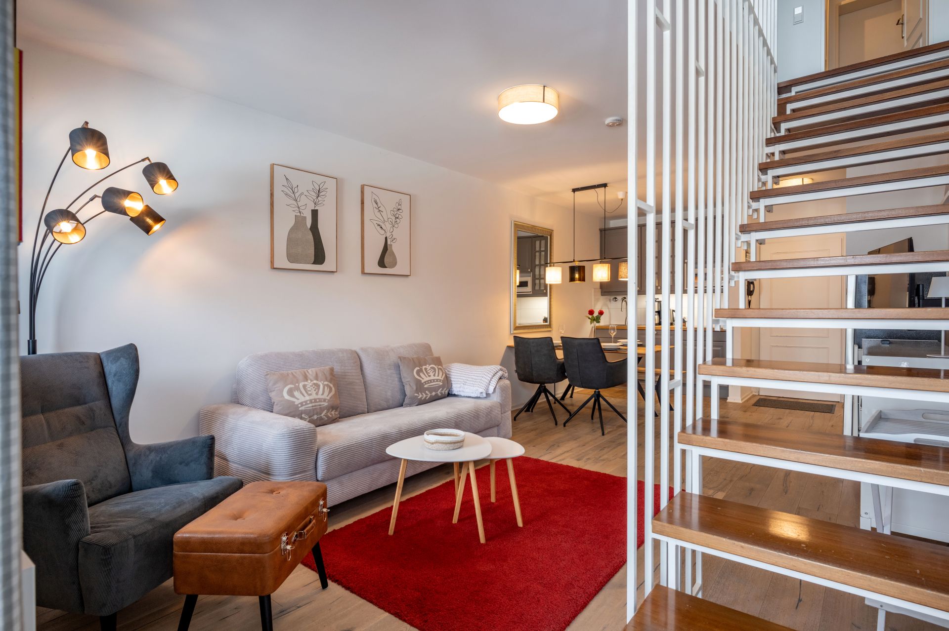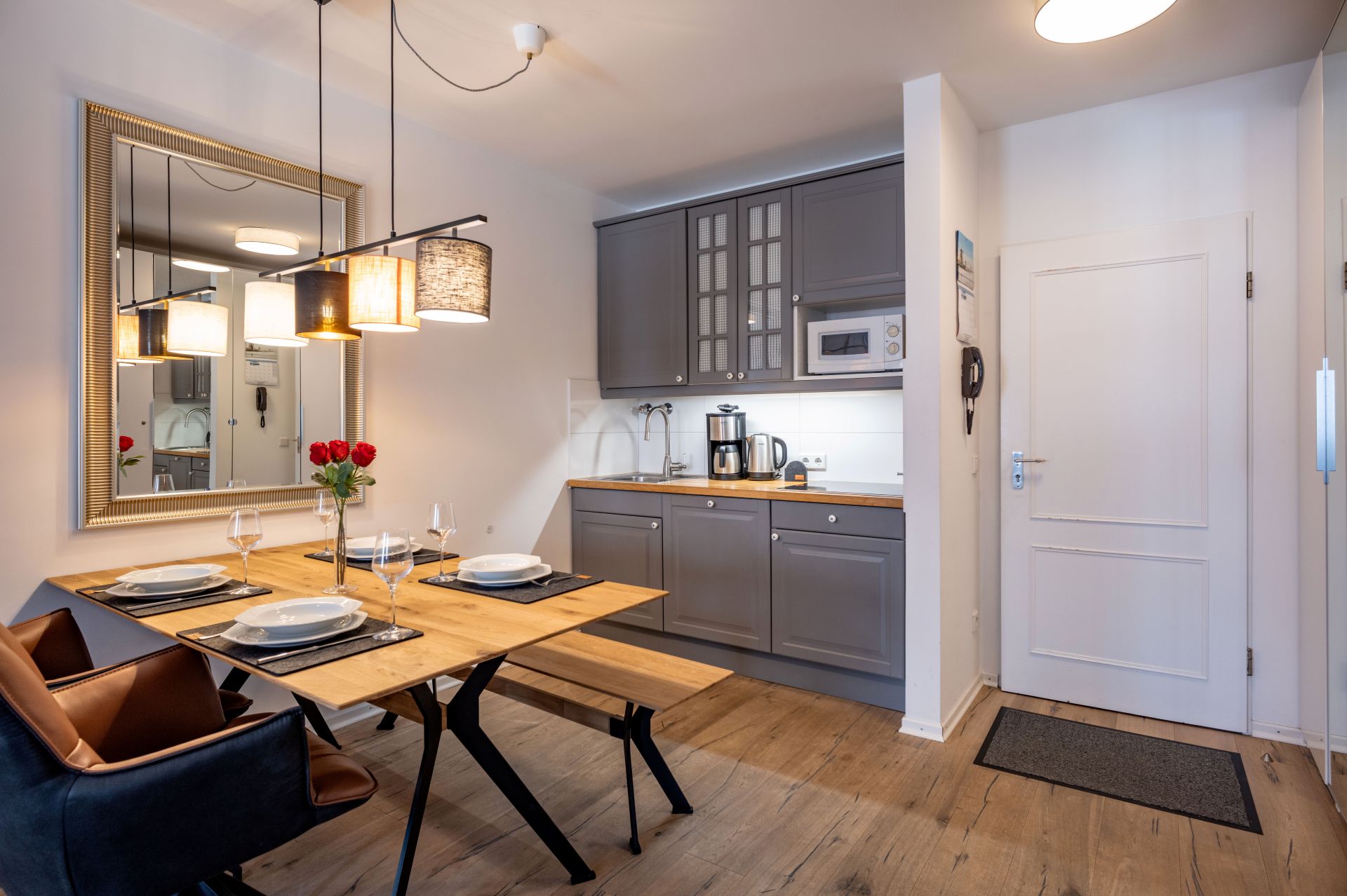 Ausgestattet ist diese charmante,gepflegte 2-Zimmer Ferienwohnung mit : Schlafzimmer, Wohnzimmer - Eßzimmer mit Ausziehcouch für 2 Personen, Küchenzeile, Bad, Dusche, Toilette separat sowie einem Balkon. Bettwäsche, Handtücher und Geschirrtücher sind inkusive.