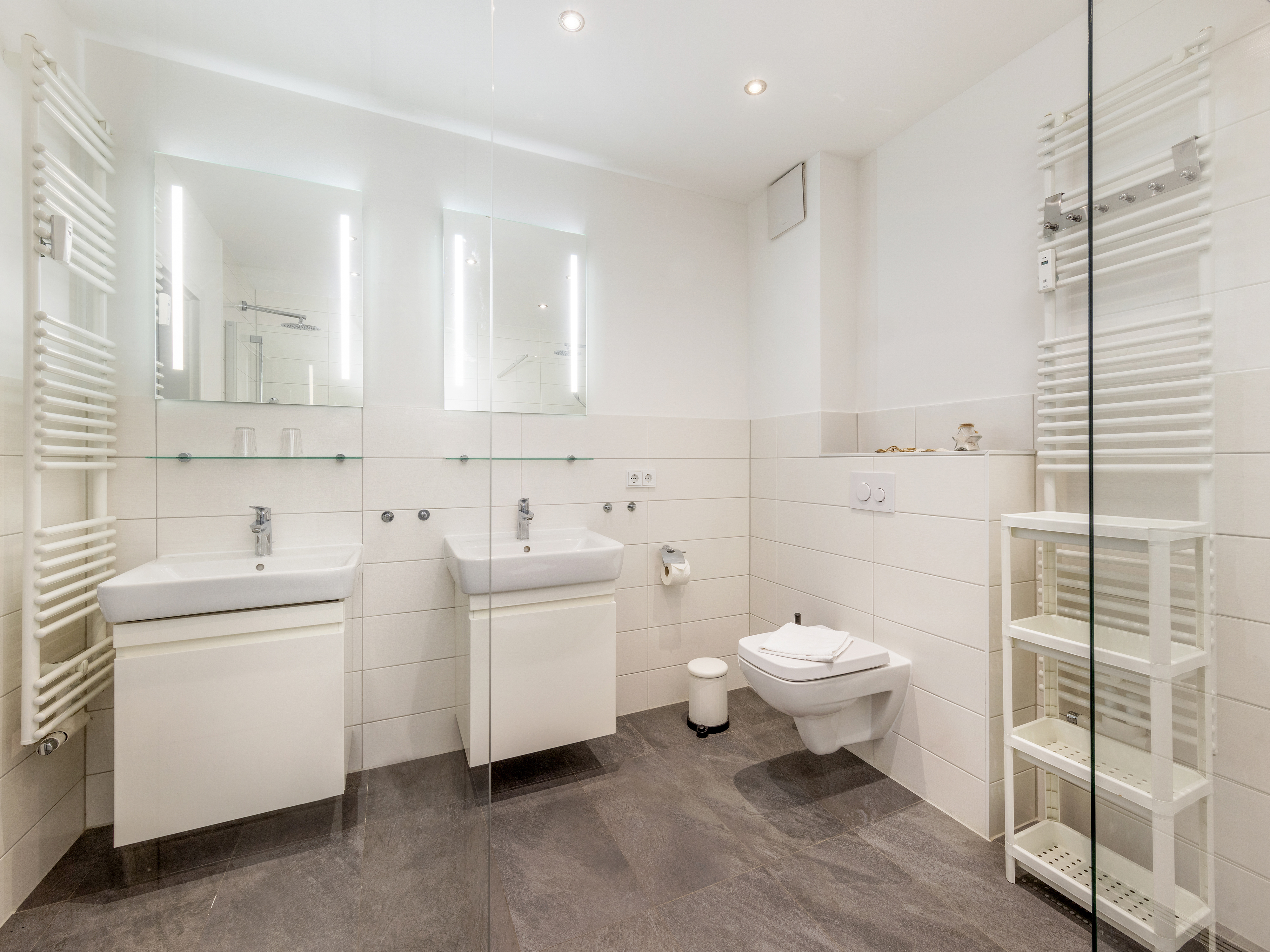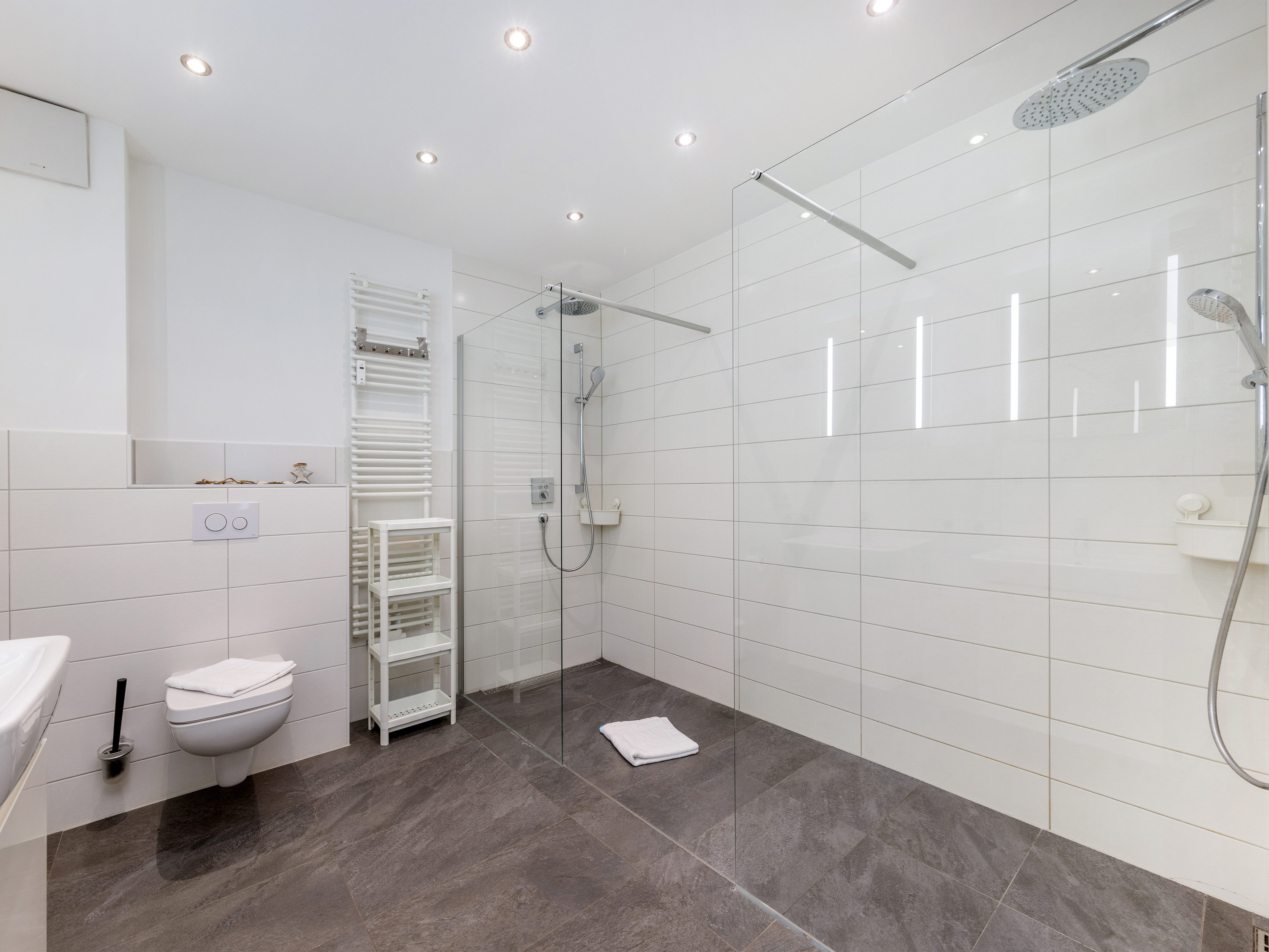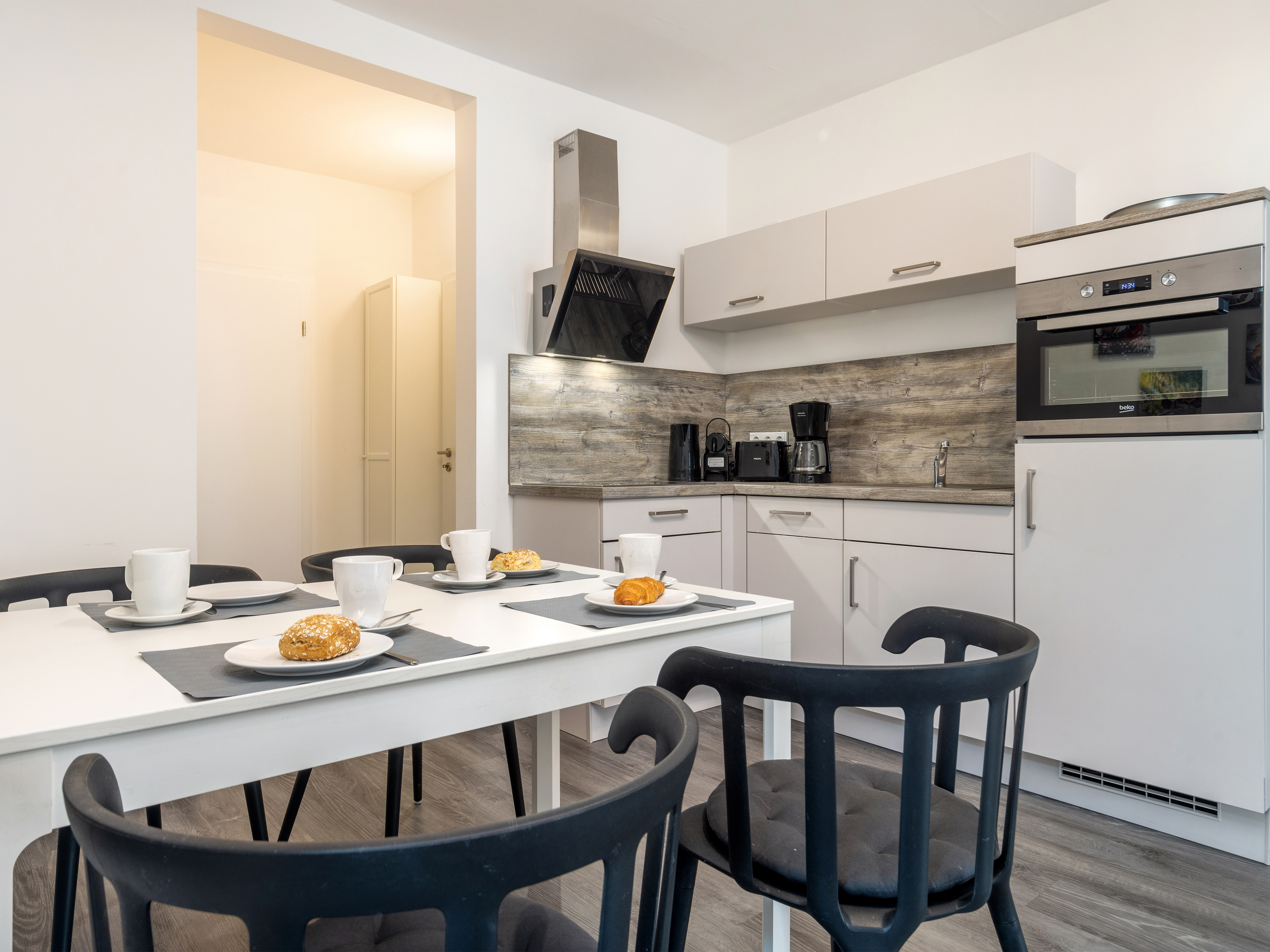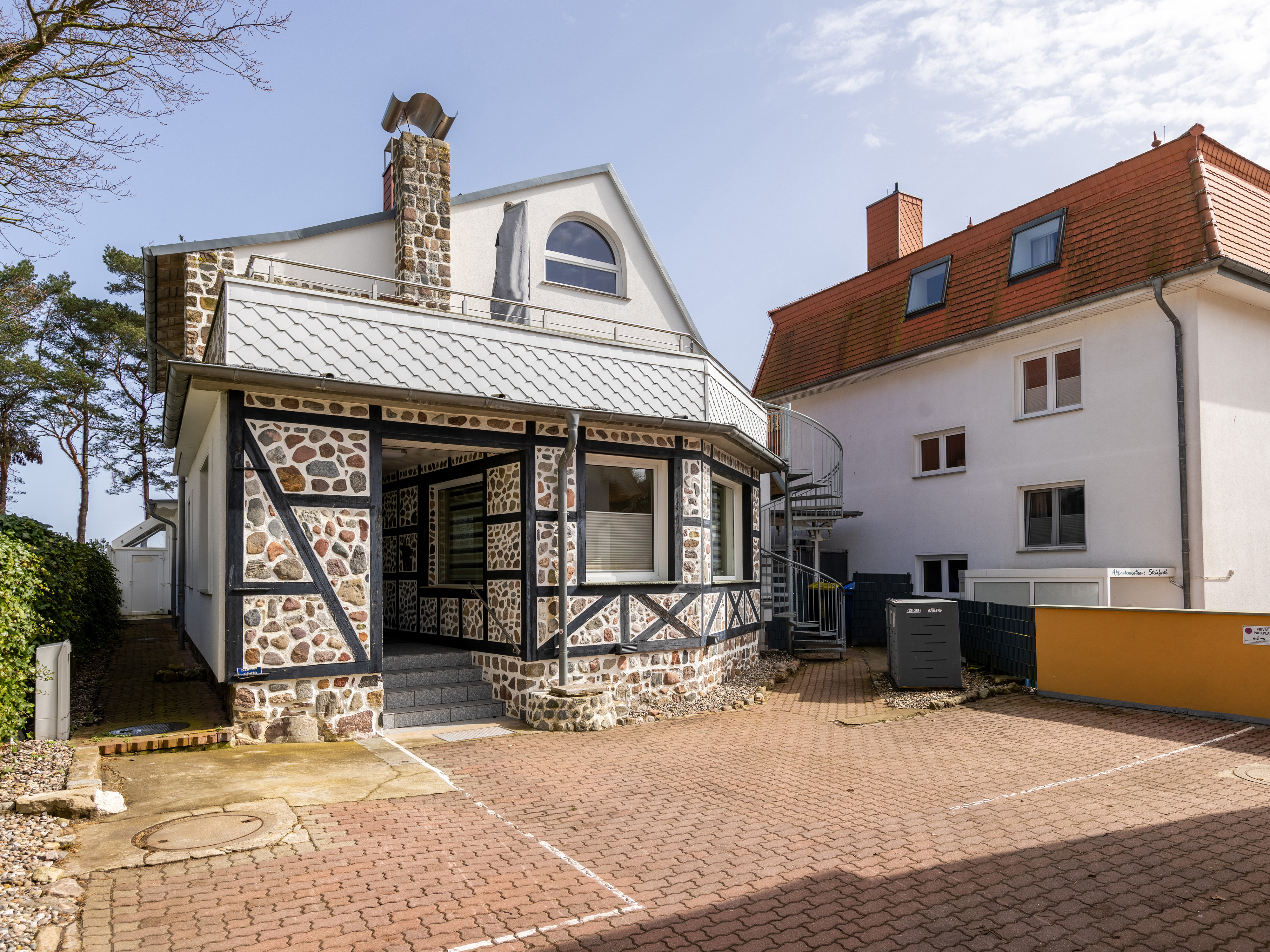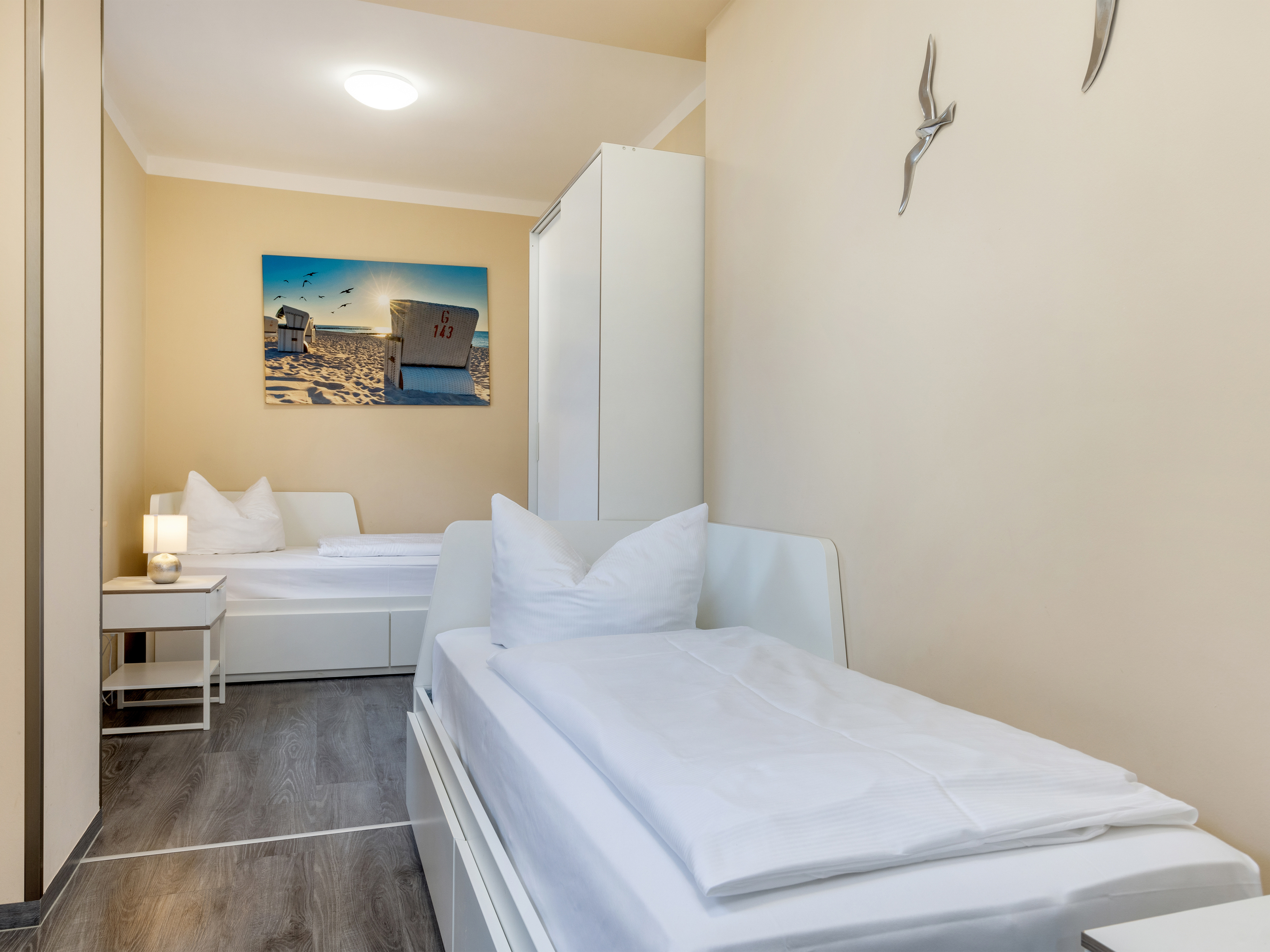 Die großzügige Ferienwohnung befindet sich im Vorderhaus und ist aufgeteilt auf ein Wohnzimmer mit offener Küche, zwei Schlafzimmer, ein Badezimmer und einen Flur. Das Wohnzimmer lädt zu gemütlichen Abenden am Kaminofen ein. Ein Schlafzimmer ist mit einem Doppelbett und eines mit zwei Einzelbetten ausgestattet. Von Mai bis September können Sie optional einen eigenen Strandkorb am Strand mieten. Für Ihre Fahrräder gibt es im Haus einen abschließbaren Fahrradraum. Ein Stellplatz auf dem Grundstück gehört ebenfalls dazu.