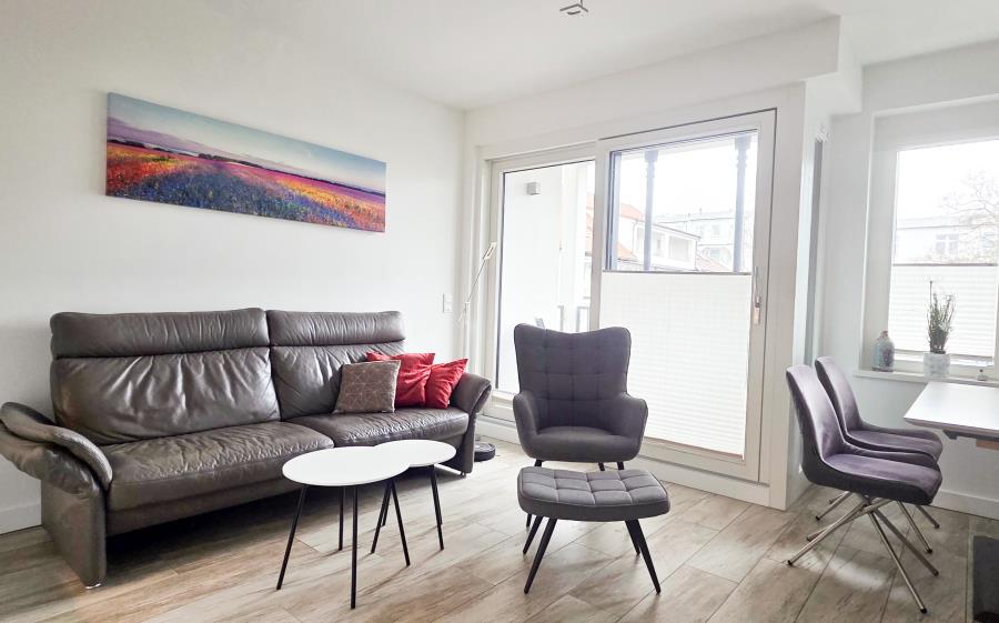 Genießen Sie entspannte Stunden auf dem geschmackvoll möblierten Balkon und lassen Sie die ruhige Umgebung auf sich wirken – nur wenige Gehminuten von der Ostsee entfernt.
