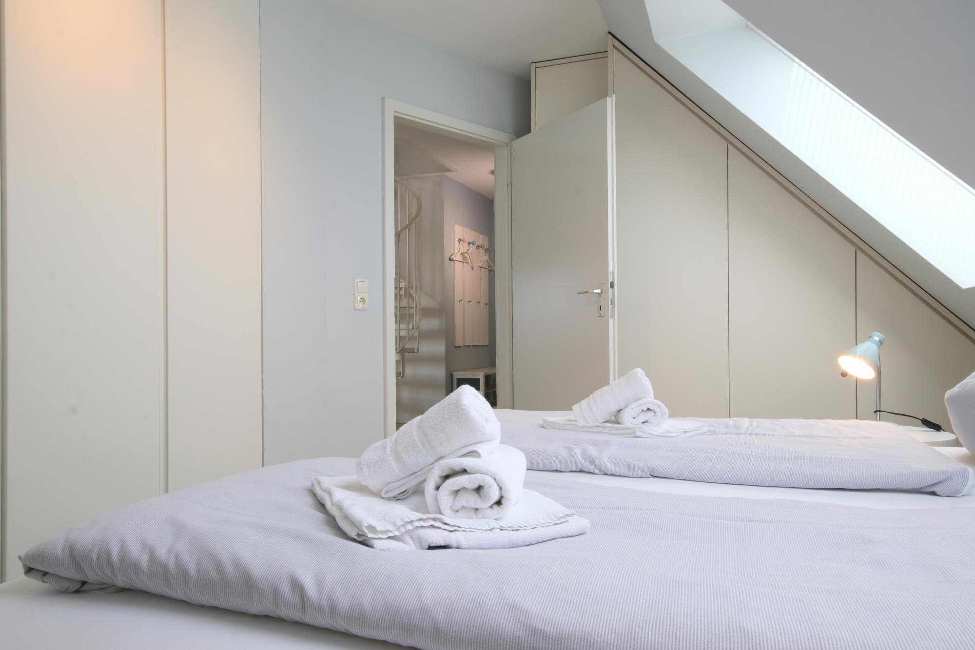 Eines der Schlafzimmer verfügt über zwei Einzelbetten (80x200cm). Im zweiten Schlafzimmer befindet sich ein Doppelbett (180x200 mit zwei Einzelmatratzen). Ein Baby-Reisebett ist ebenfalls verfügbar.