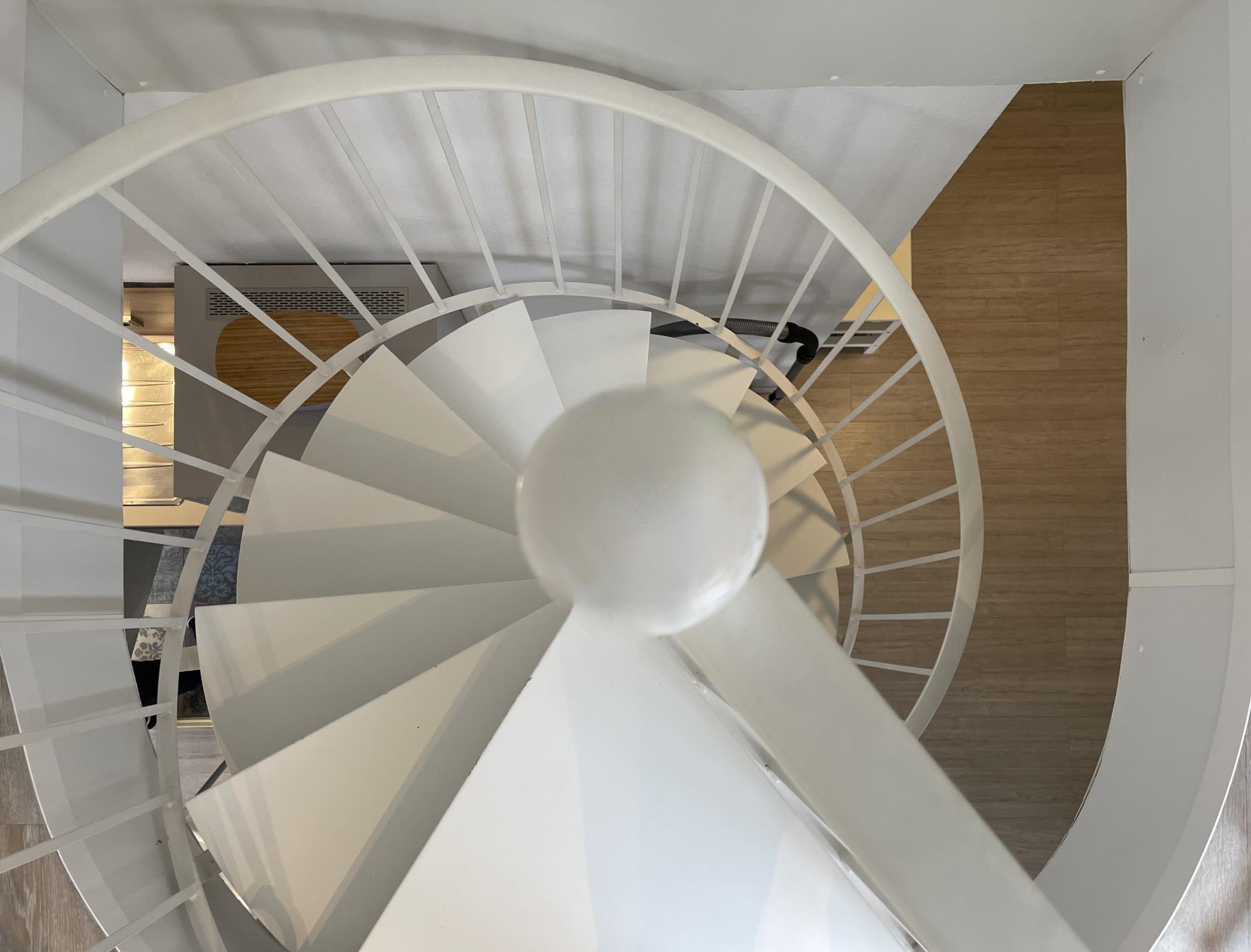 Auf zwei Ebenen befinden sich, der Wohnraum mit offenem Küchenbereich und Balkonzugang, ein Bad und zwei Schlafzimmer.