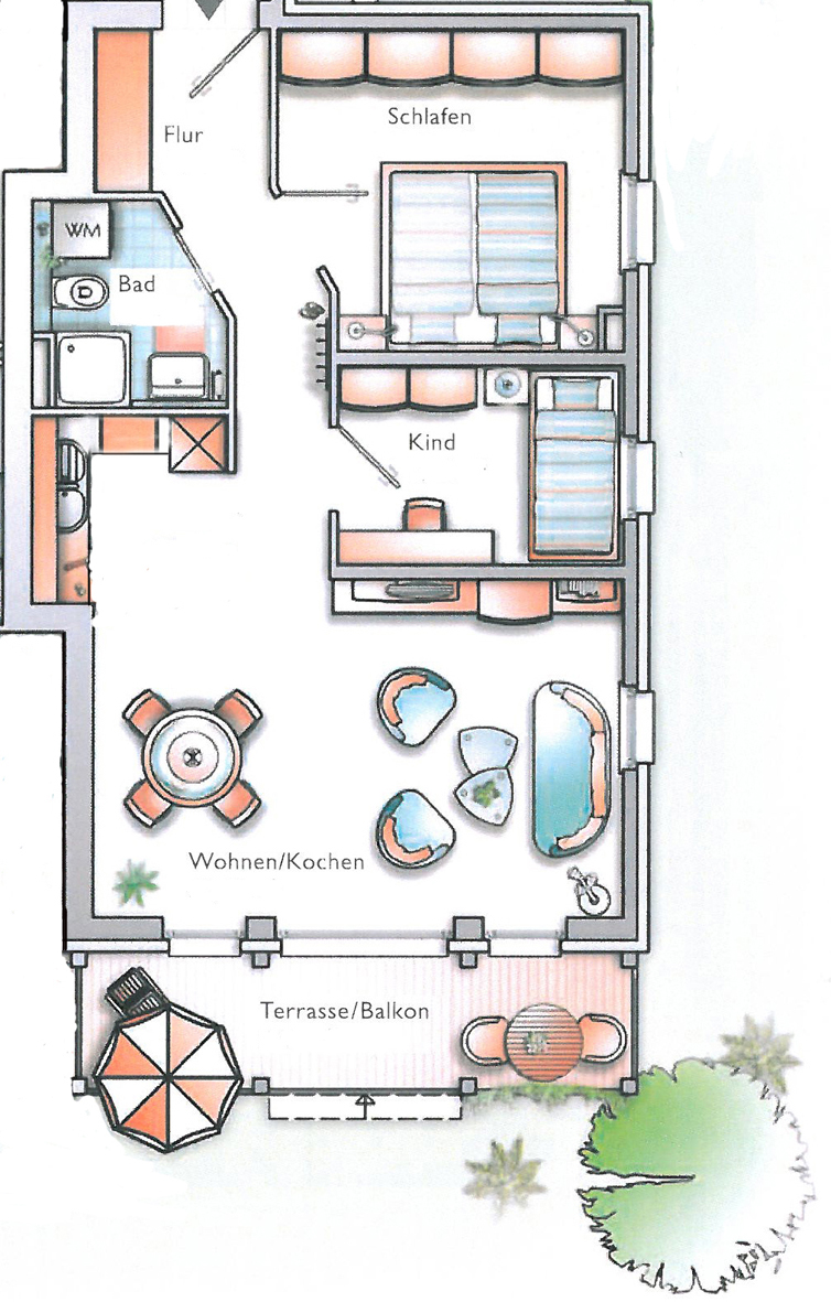 Die Ferienwohnung mit 67qm befindet sich in der Villa Gesine und wurde 2012 fertiggestellt. Die Ferienanlage der "weißen Villen im Bäderstil" liegt 250 m vom schönen Sandstrand entfernt. Die helle und sonnige Wohnung bietet 2 Schlafzimmer eins mit Doppelbett und im 2. Schlafzimmer gibt es eine Doppelbettcouch. Das geräumige Wohnzimmer ist mit integrierter Küche, ein Duschbad mit Handtuchwärmer und einen PKW Stellplatz sind natürlich auch vorhanden. Vom Wohnzimmer gelangen Sie direkt auf den großzügigen Balkon. An technischer Ausstattung erwarten Sie CD-Player, DVD-Player, Radio, 2. CD Radio und Sat TV. Die hochwertige Einbauküche verfügt über einen Herd mit Backofen, einen Kühlschrank mit Gefrierfach, eine Kaffeemaschine, einen Toaster, einen Wasserkocher sowie genügend Geschirr und Töpfe. Die Wohnung ist komplett gefliest und mit Fussbodenheizung versehen, alle Fenster haben Aussenjalousien. Kinderbett und -hochstuhl stehen ebenfalls zur Verfügung; für den Balkon Balkonmöbel, Sonnenschirm, Wäscheständer und ein Elektrogrill.