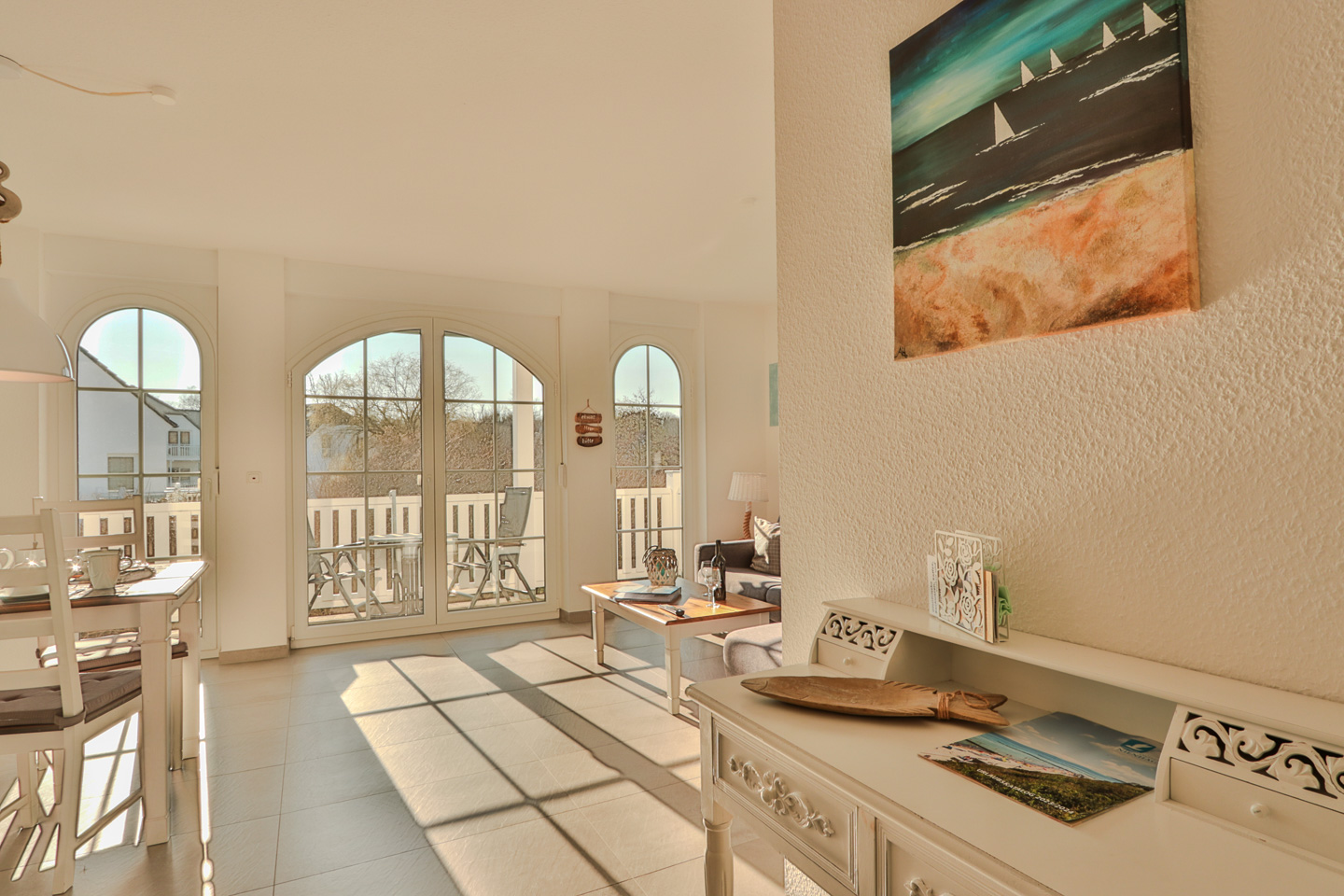 Bei uns genießen Sie Ihren Urlaub auf 61qm, die sich auf einen großzügigen Wohn- und Essbereich, ein separates Schlafzimmer, eine offene Küche sowie einen herrlichen Süd-West-Balkon mit Blick ins Grüne erstrecken.
