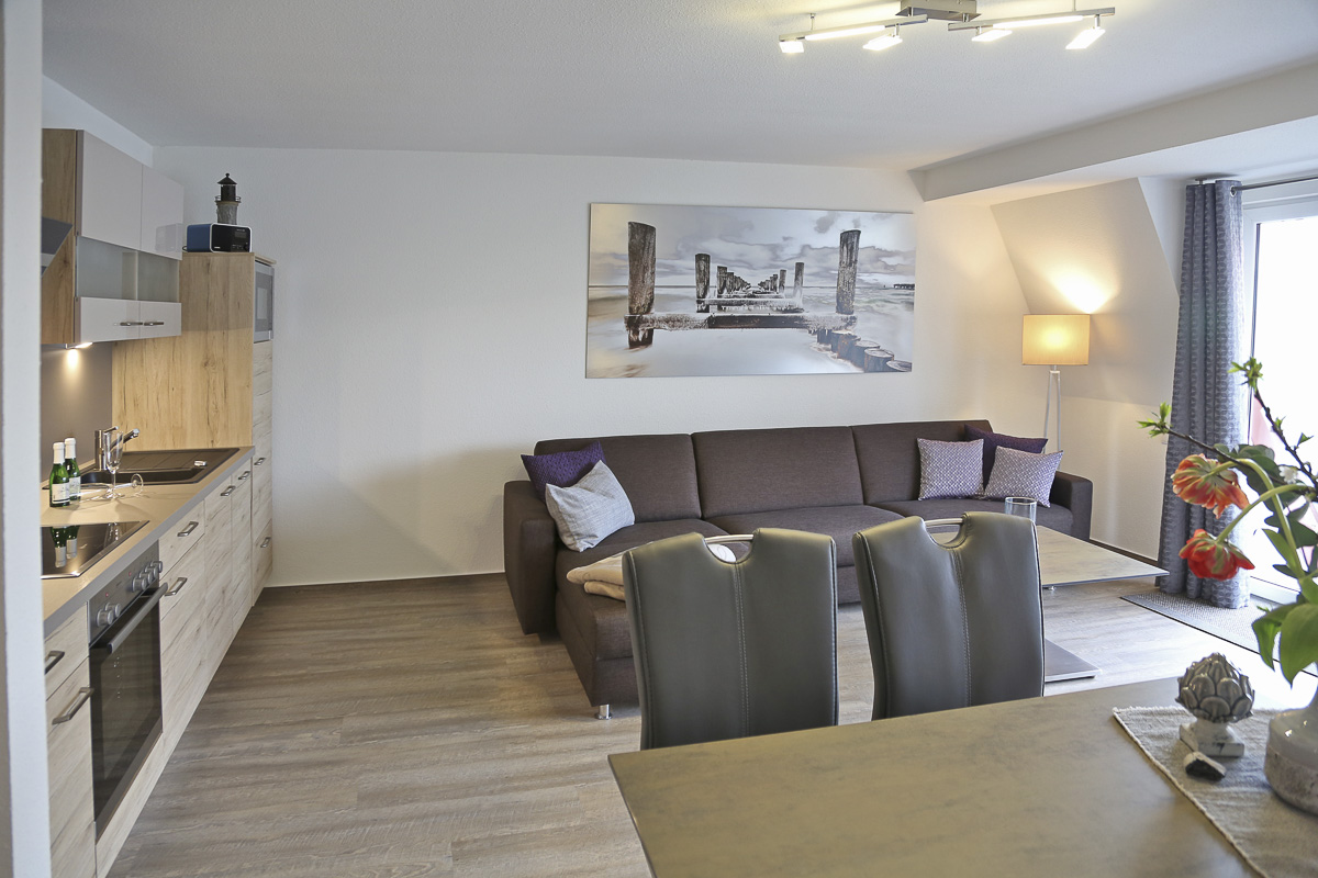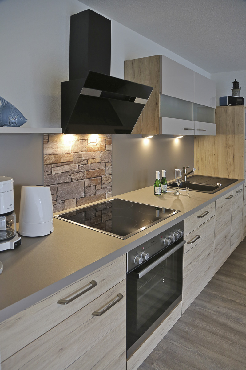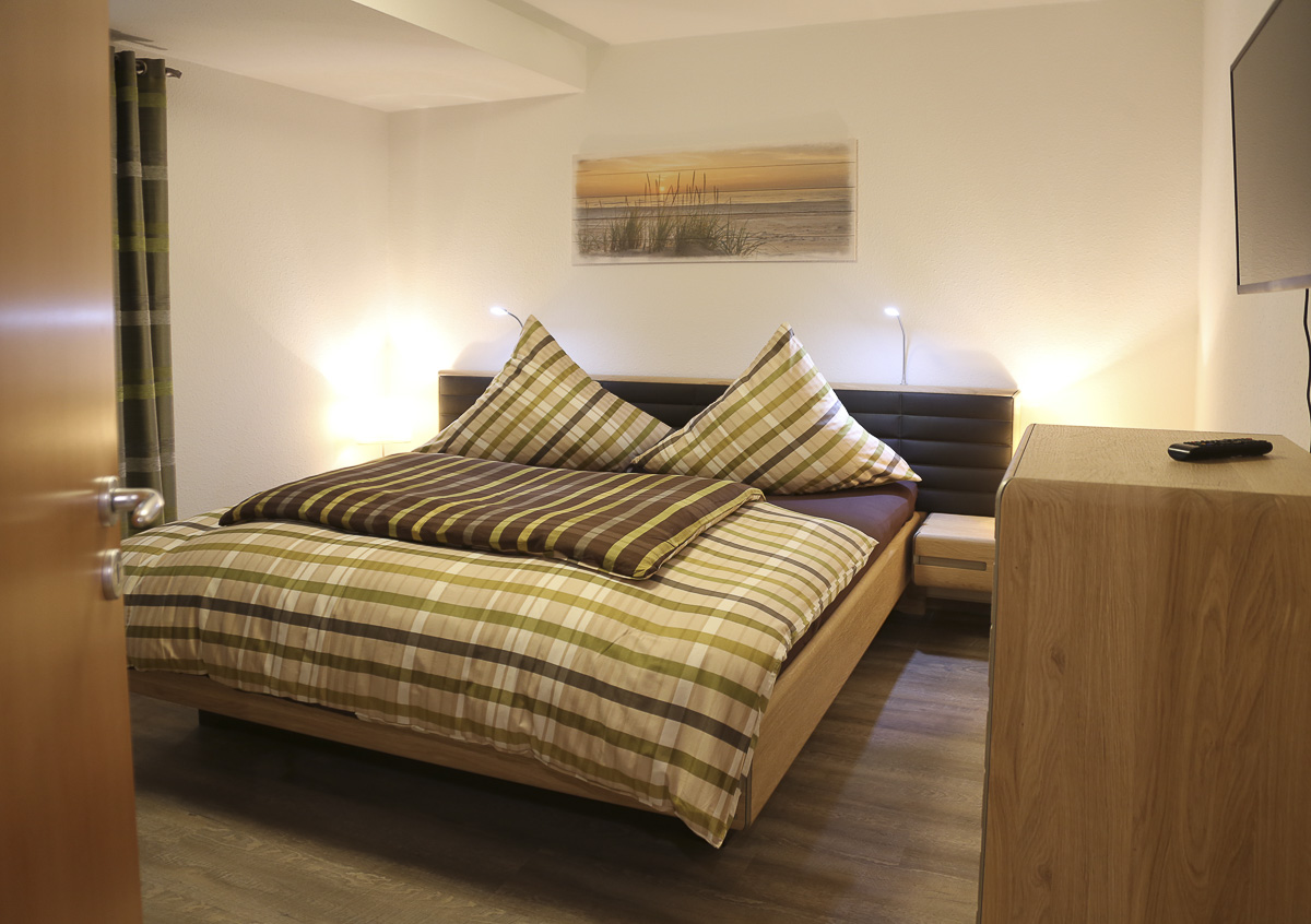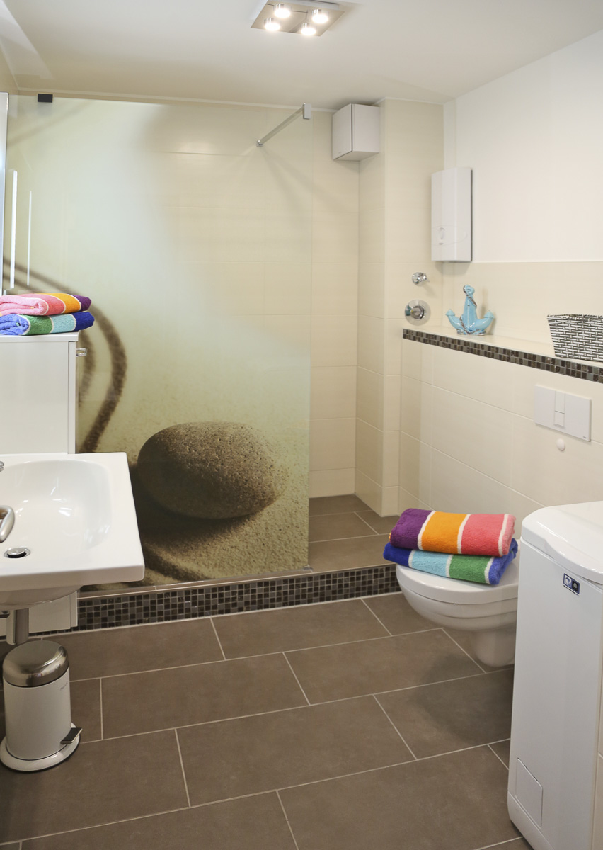 Im Wohn-Essbereich befindet sich ein Schlafsofa für 2 Personen mit einer Liegefläche von 160x200 cm. Im Schlafzimmer ist ein Doppelbett mit einer Liegefläche von 180x200 cm. Die moderne Küchenzeile bietet alles, was man für einen Urlaub benötigt. Von der Spülmaschine bis hin zur Mikrowelle und sogar das Handrührgerät für den Urlaubskuchen- ist alles vorhanden. Für den faltenfreien Sitz der Abendrobe steht ein kleines Bügelbrett+ Bügeleisen zur Verfügung Für die Unterhaltung ist auch gesorgt. Mit WLAN, TV CD- u. Blueray Player, Radio und 2. Fernseher im Schlafzimmer ist die FeWo super ausgestattet. Im Duschbad befindet sich auch eine Münzwaschmaschine für die Wäsche zwischendurch. Die Regendusche sorgt für die richtige Entspannung nach einem anstrengenden Strandtag. Sollte diese nicht faltenfrei sein, steht auch ein Bügelbrett und ein dazugehöriges Bügeleisen zur Verfügung. Auch an die Kleinsten ist gedacht. Im Mietpreis inbegriffen ist ein Reisebettchen mit Matratze und ein Hochstuhl und sogar ein Bollerwagen, um den Weg zum Strand so angenehm wie möglich zu gestalten. Dieser befindet sich in einem abschließbaren Abstellraum, der zu der Wohnung gehört. Dort können Fahrräder, Dachgepäckträger oder auch Kinderwagen sicher untergebracht werden.