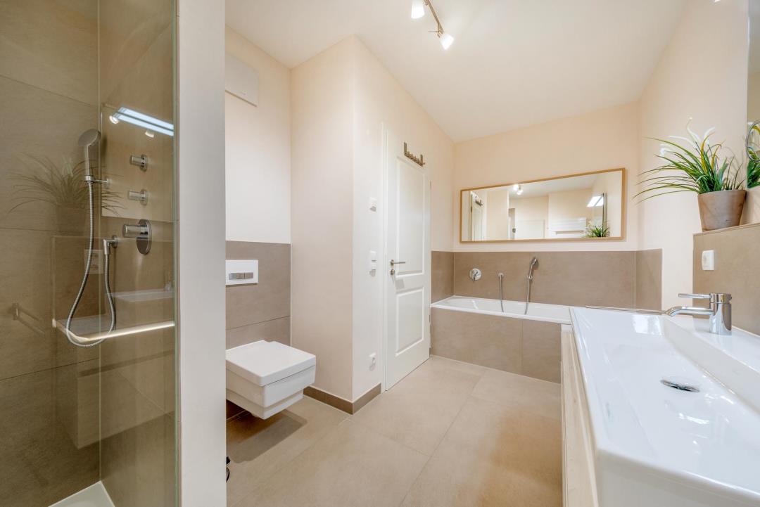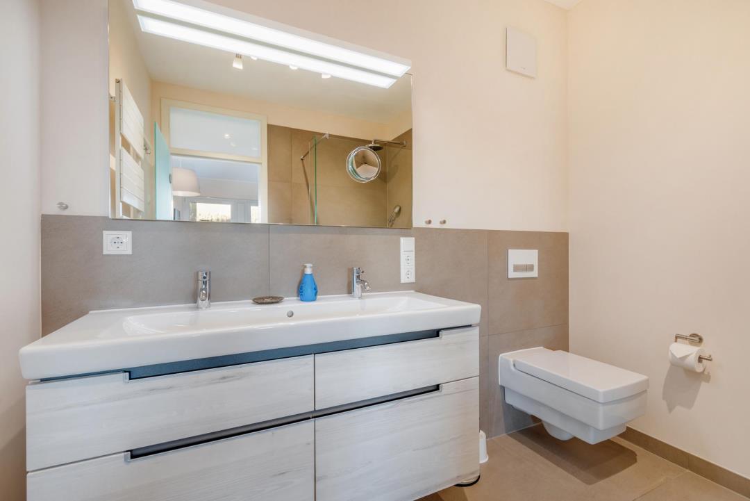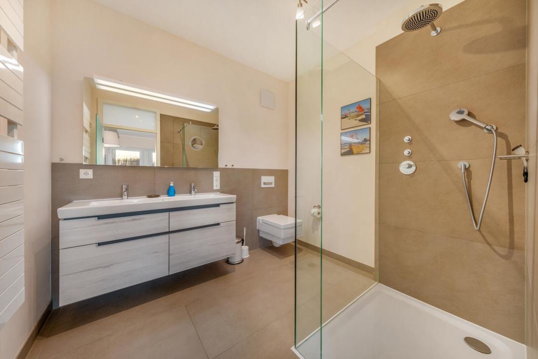 Zwei luxuriöse Badezimmer & private SaunaDie zwei modernen Badezimmer sind mit hochwertigen Armaturen, großen Duschen mit Regendusche, Doppelwaschbecken sowie einer separaten Badewanne ausgestattet.