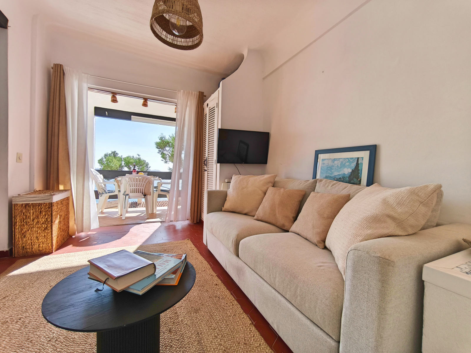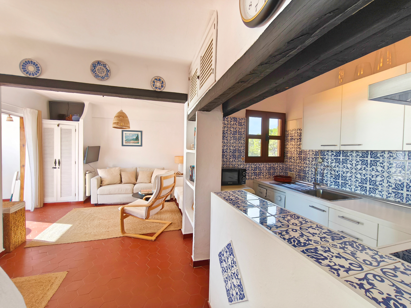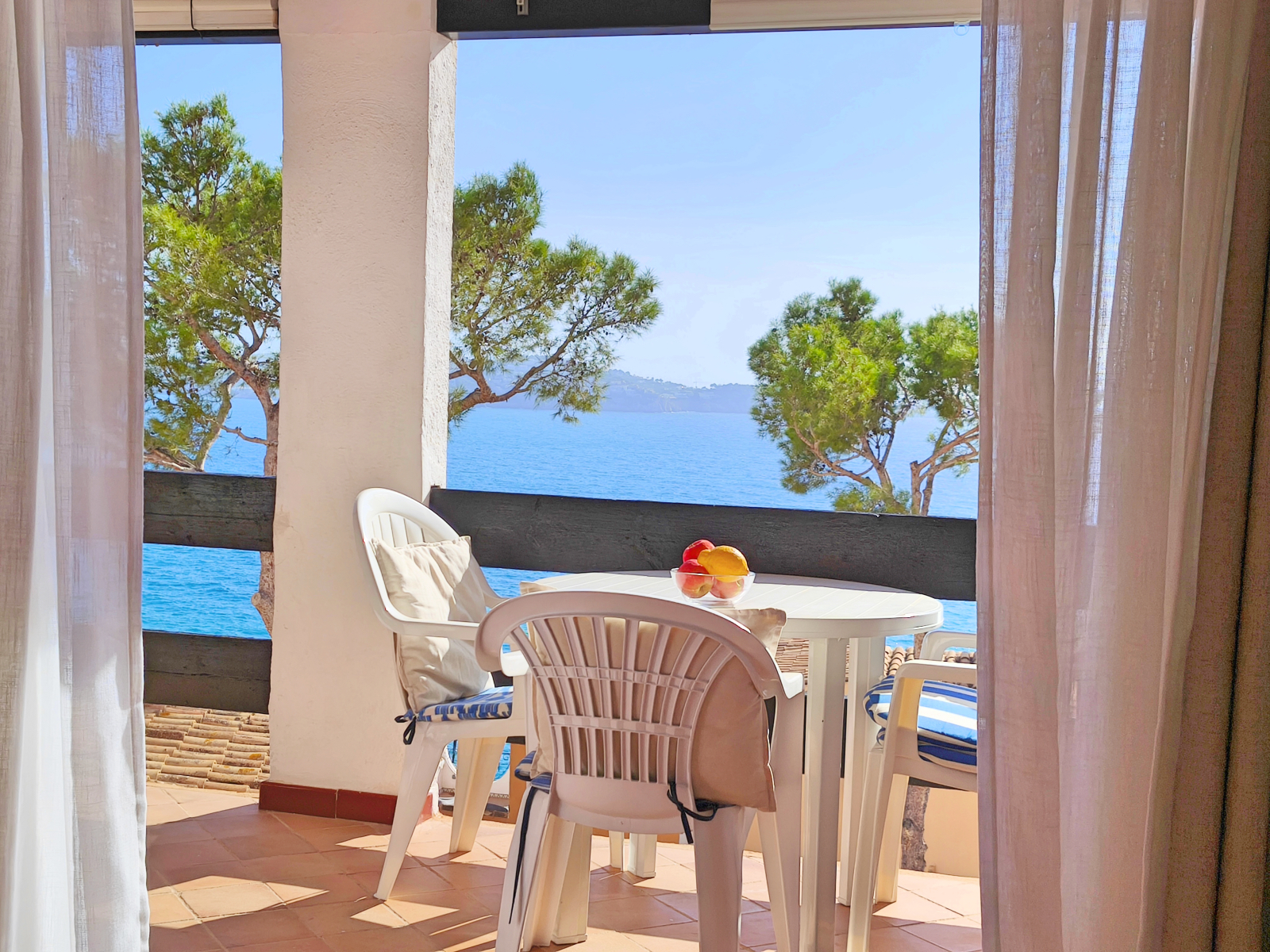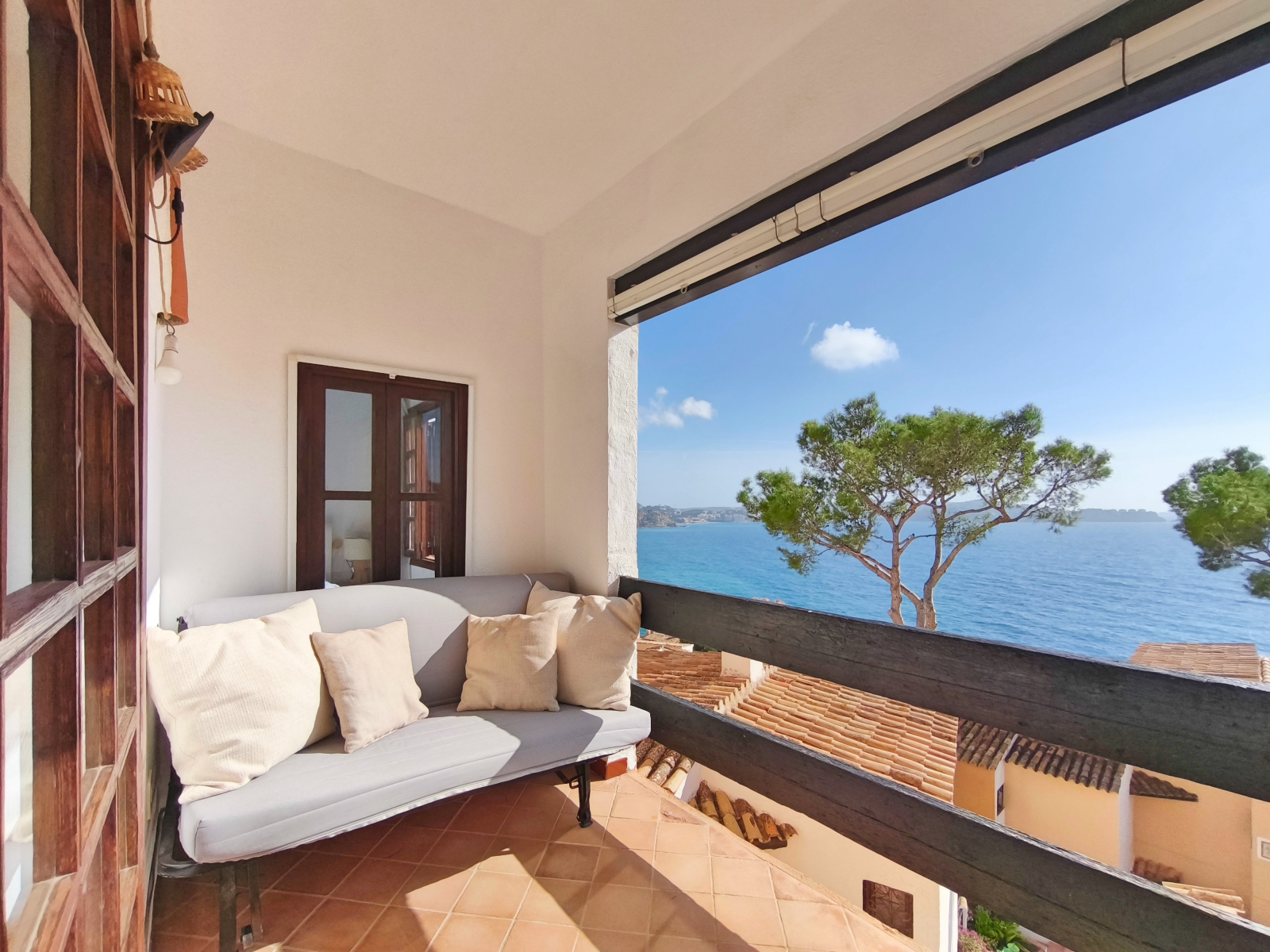 Das gemütliche Schlafzimmer mit Doppelbett schenkt Ihnen ebenfalls den fantastischen Blick auf das glitzernde Mittelmeer. Die Lage im 1. Stock ist ideal für Gäste, die nur wenige Stufen zurücklegen möchten. Die hervorragende Infrastruktur der Anlage liegt in unmittelbarer Reichweite: Genießen Sie den direkten Meerzugang für ein erfrischendes Bad oder entspannen Sie am Gemeinschaftspool, der von einem Restaurant mit fantastischem Meerblick gesäumt wird. Zur komfortellen Ausstattung gehören zudem zwei weitere Restaurants sowie ein gut sortierter Lebensmittelladen für den spontanen Bedarf – in den Wintermonaten von November bis März jedoch geschlossen. Die ideale Lage zeigt sich ebenso in der näheren Umgebung: Die traumhaften Sandstrände von Paguera ebenso wie die reizende Kiesbucht von Cala Fornells erreichen Sie in einem kurzen Spaziergang, genau wie die lebendige Ortsmitte mit ihrer abwechslungsreichen Gastronomie und ihren zahlreichen Einkaufsmöglichkeiten. Ihre Vorteile auf einen Blick: ???? Traum-Meerblick aus der Wohnung und von der Terrasse ???? Überdachte Terrasse (ca. 10 m²) als gemütlicher Wohnraum im Freien ???? Kostenfreie Parkmöglichkeit an der Straße vor der Anlage ???? Gemeinschaftspool mit Restaurantanschluss & direkter Meerzugang via Leiter ???? Umfangreiche Infrastruktur: 3 Restaurants, Lebensmittelgeschäft und Eisdiele direkt in der Anlage (Winter: ggf. eingeschränkt), weitere fußläufig im Ort. ???? Ideale Lage: Kurze Wege zu den Sandstränden von Paguera, der Bucht von Cala Fornells sowie Geschäften und Restaurants im Ort.