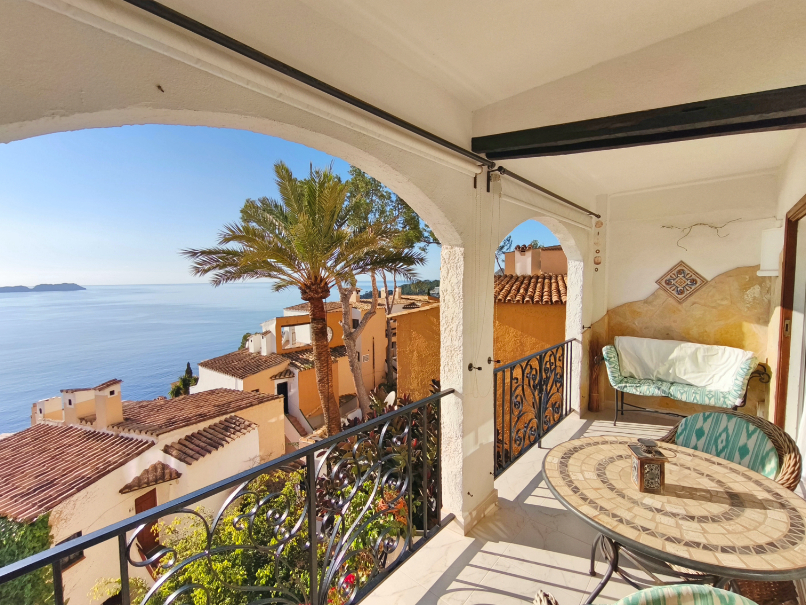 Genießen Sie unvergessliche Urlaubstage in dieser hellen und modernen Ferienwohnung in der begehrten Lage von Cala Fornells bei Paguera. Vom Wohnzimmer, Schlafzimmer und der überdachten Terrasse aus eröffnet sich Ihnen ein traumhafter Blick über die Dächer der Anlage direkt auf das Mittelmeer.
