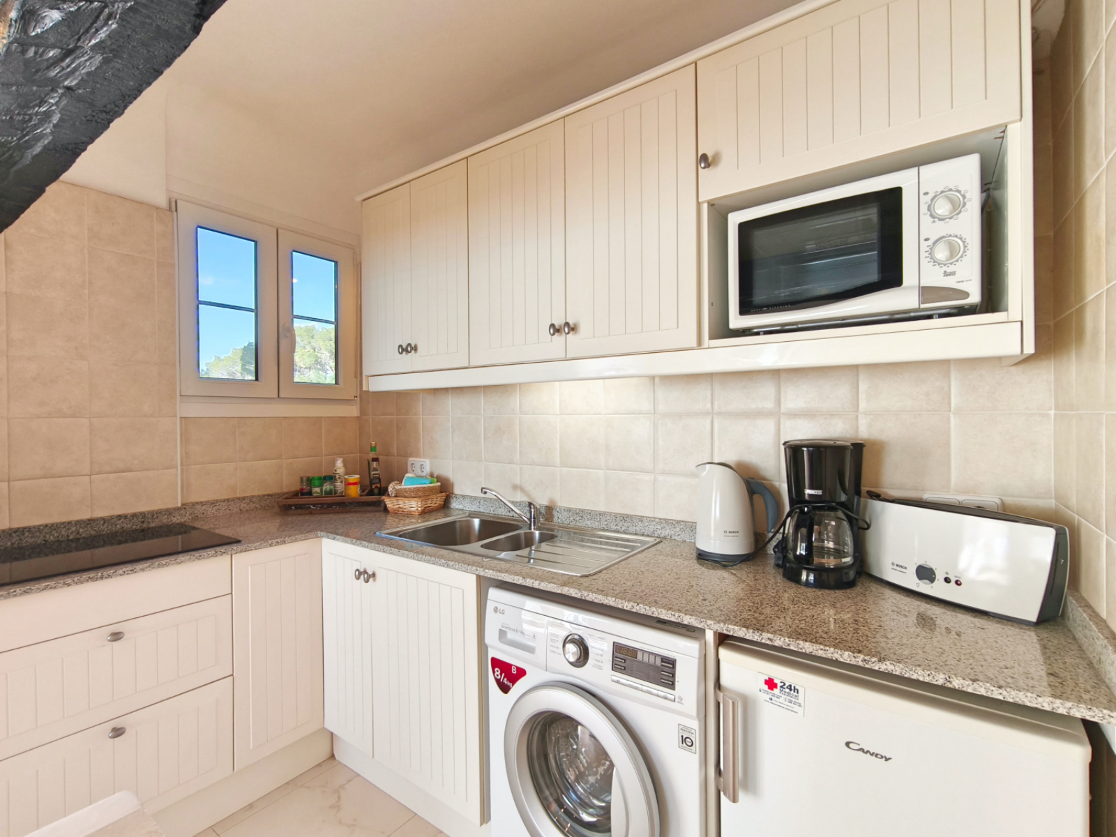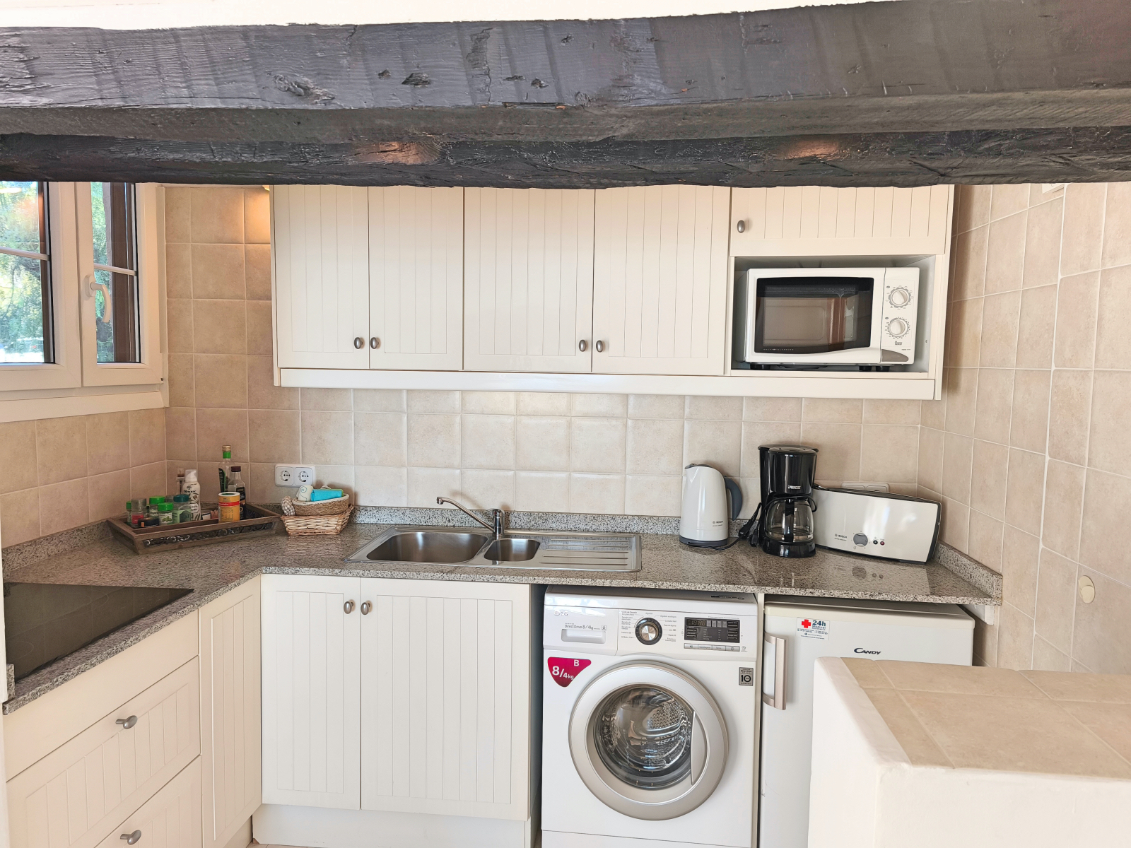 Anmerkung: ???? Treppenstufen von der Strasse bis zur Wohnung: ca. 16 ???? Treppenstufen von der Wohnung bis zum Pool: ca. 200 (die Wohnung ist ganz oben in der Anlage, der Pool ganz unten) ???? Der Pool ist derzeit von 09:00 Uhr bis 19:00 Uhr nutzbar (Änderungen vorbehalten) ???? Der Kamin ist nur Dekoration und kann nicht genutzt werden. ???? Im Preis enthalten sind Wäschepakete für 2 Personen. Bei eine Belegung mit 3 Personen bzw. Nutzung des Schlafsofas benötigen Sie 1 Wäschepaket zusätzlich (Aufpreis).