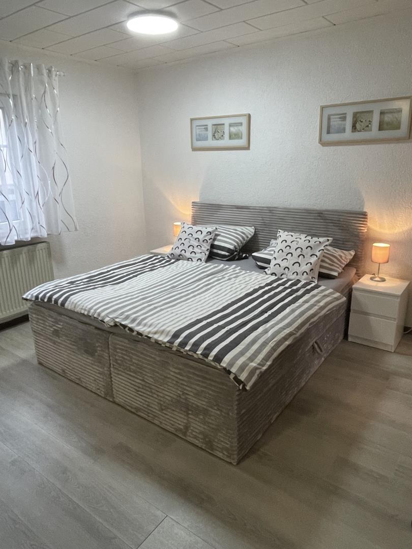 Dieses frisch renovierte Apartment ist buchbar für bis zu 3 Personen und bietet auf 65qm einen großzügigen Wohn- und Schlafbereich mit einem gemütlichen Boxspringbett 180 x 200 und einem Einzelbett 90 x 190 sowie einer Couch mit TV. Eine gut ausgestattete moderne Küche und ein helles Badezimmer mit Dusche und WC. Das Apartment befindet sich im Erdgeschoß und verfügt über eine große Terrasse mit Markise und Blick in den Garten wo man schön Frühstücken kann und Entspannen. PKW Stellplatz.