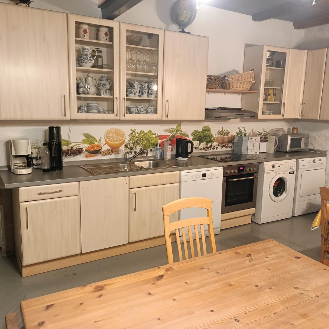 Das Storchennest befindet sich mit 44 m² im Obergeschoss. Es ist ausgestattet mit 2 Einzelbetten (90 cm) und einem großen Kleiderschrank im Schlafzimmer. Ein weiteres Bett und ein Schlafsofa, ein Flachbild-TV, ein Esstisch mit 4 Stühlen befindet sich im kombinierten Schlaf- und Wohnzimmer. Des Weiteren gibt es eine Küchenzeile mit Kühlschrank (incl. Frostfach), mobiles 2-Flammen-Ceranfeld, Wasserkocher, Kaffeemaschine, Mikrowelle und ausreichend Geschirr, Töpfe und Pfannen. W-Lan darf kostenfrei genutzt werden. Ebenso inklusive sind Handtücher und Bettwäsche. Sie dürfen außerdem unseren Gemeinschaftsraum nutzen. Dieser ist ausgestattet mit einem großen Herd incl. Ofen, Waschmaschine, Trockner, Geschirr und gemütlichen Sitzmöglichkeiten. Für unsere Gäste steht ein kleiner überdachter Biergarten und unser Garten mit verschiedenen Sitzmöglichkeiten zur Verfügung. Frühstück und Abendessen bieten wir auf Anfrage an.