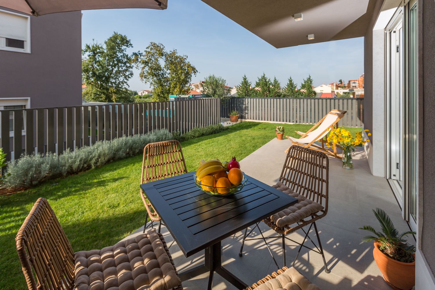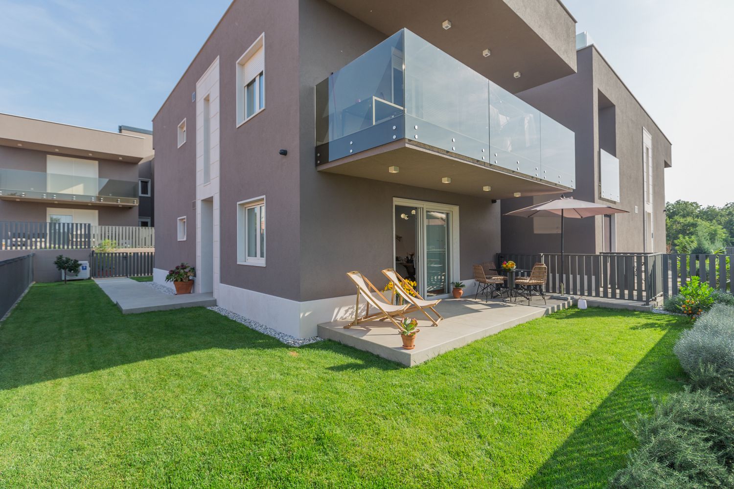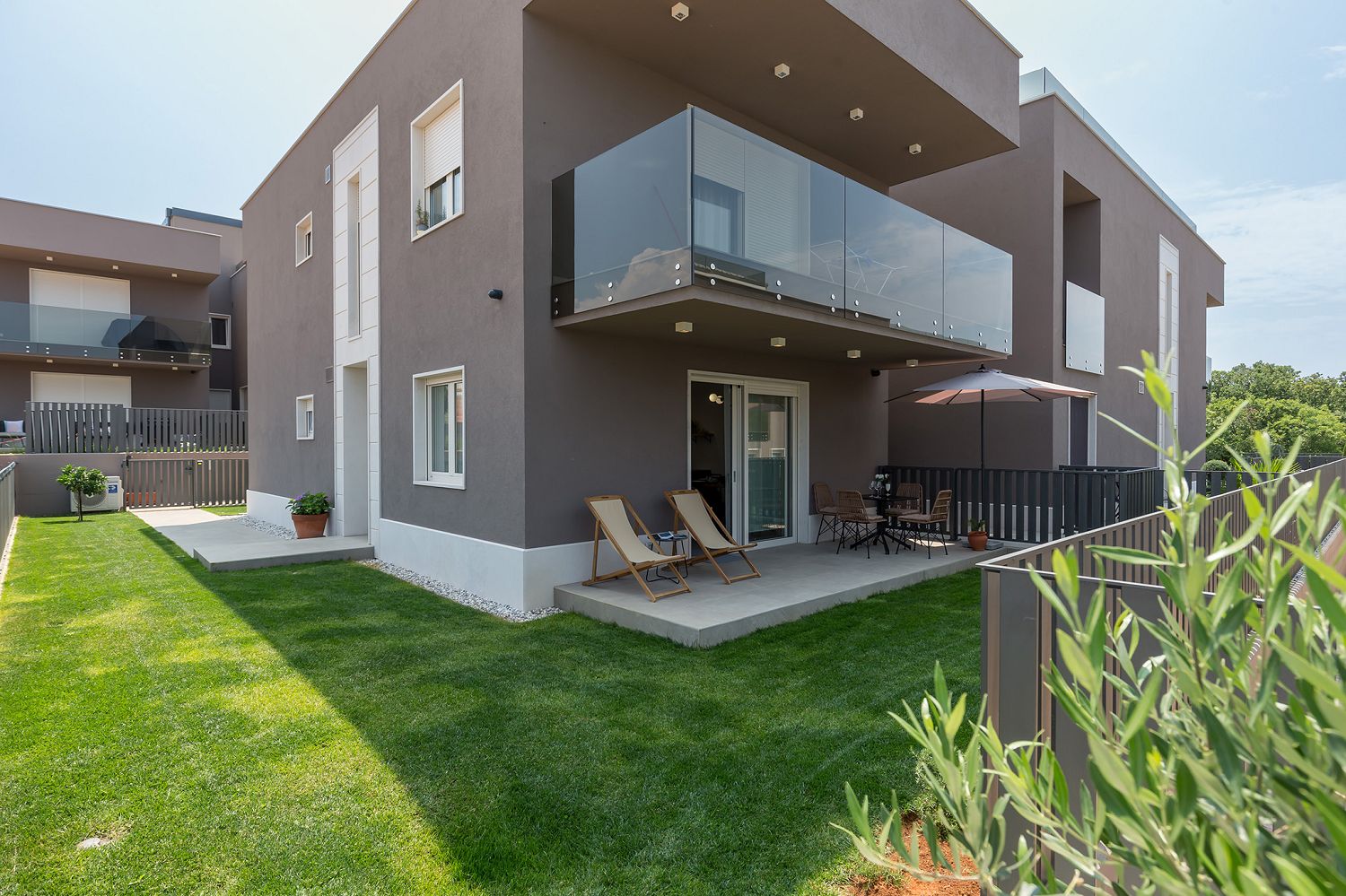 Die Ferienwohnung befindet sich im Erdgeschoss eines neu gebauten Gebäudes im Vorort von Porec und ist nur 1,5 km vom Strand mit Sportmöglichkeiten entfernt. Ein Geschäft und ein Restaurant sind nur wenige Gehminuten vom Apartment entfernt und das Zentrum von Porec ist nur fünf Autominuten entfernt. Die Wohnung verfügt über einen 150 m² großen Rasengarten und zwei private Parkplätze. Die moderne, neugebaute Ferienwohnung für vier Personen ist 65 m² groß, besteht aus einem Wohnzimmer mit Zugang zum Garten und einer teilweise überdachten Terrasse mit Gartenmöbeln, einer voll ausgestatteten Küche mit Esstisch, zwei Doppelzimmern und zwei Badezimmern mit Dusche/WC. Die gesamte Etage ist klimatisiert. WLAN und Mückennetze an allen Fenstern sind ebenfalls vorhanden. Der Vermieter wohnt in der Nähe. Dank der Lage bietet diese wunderschöne Ferienwohnung eine völlig private Atmosphäre.