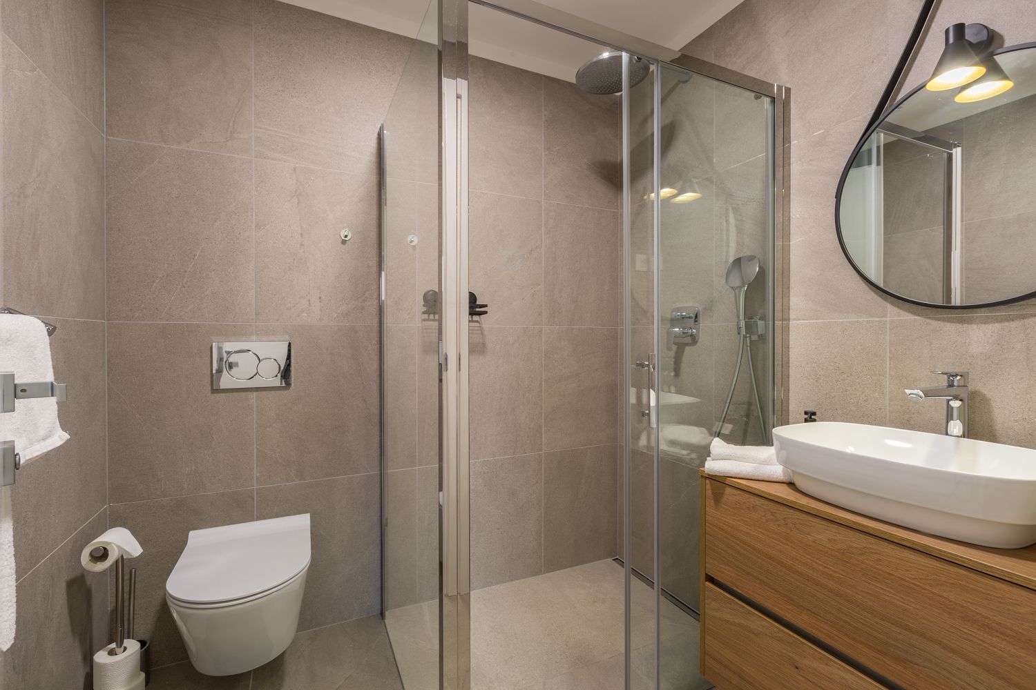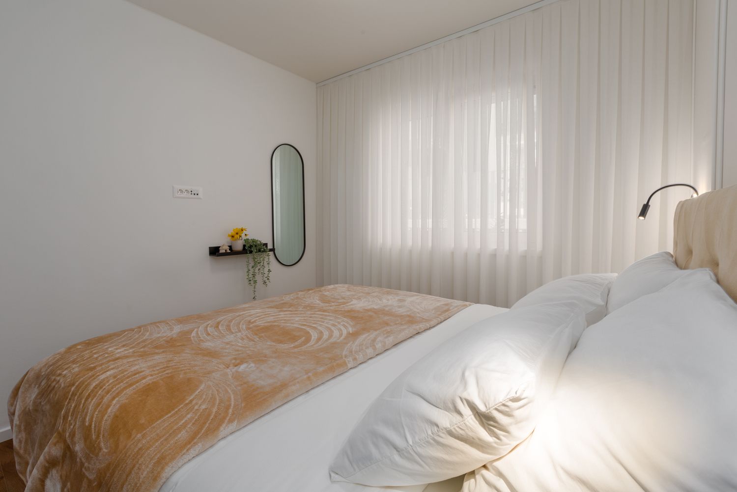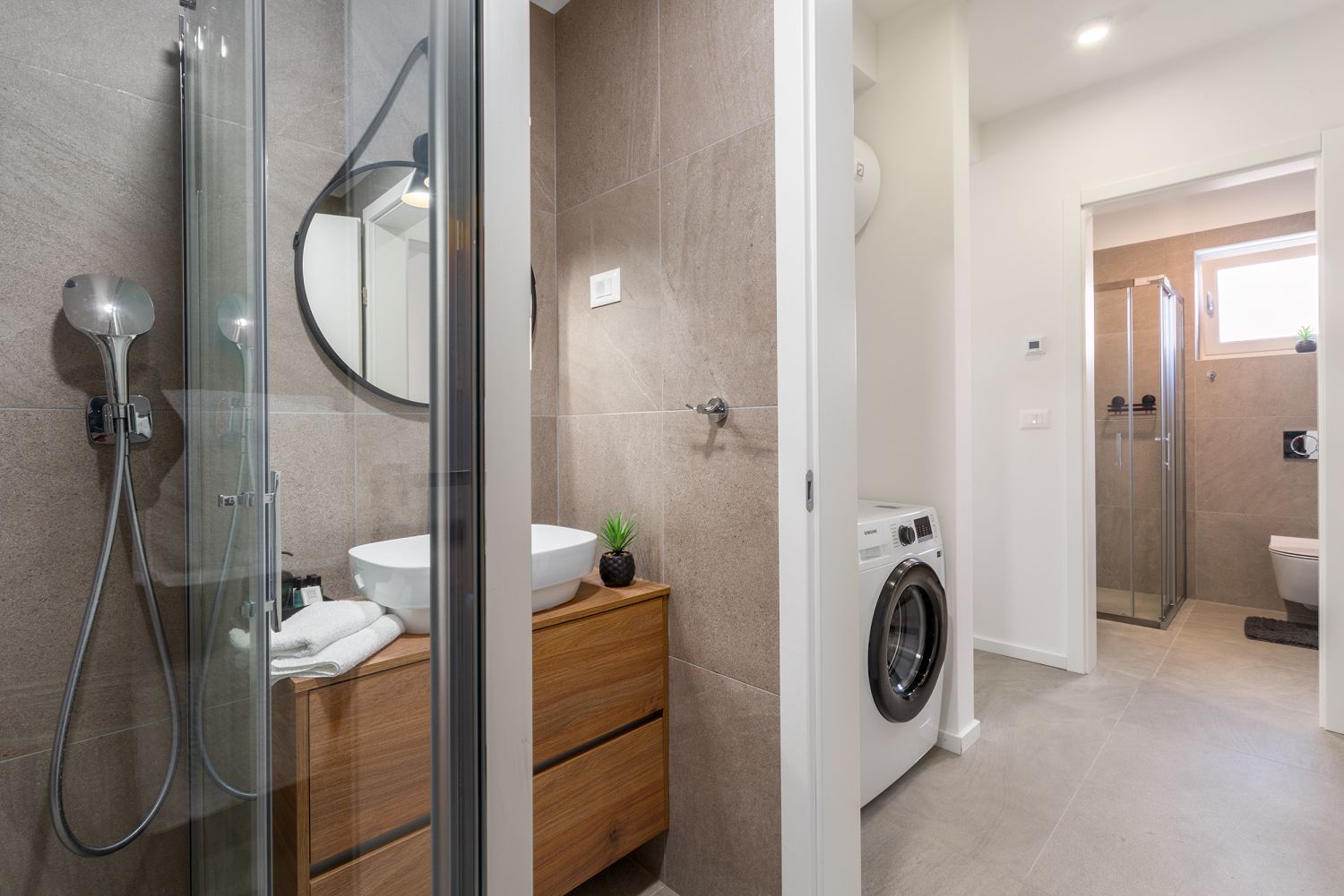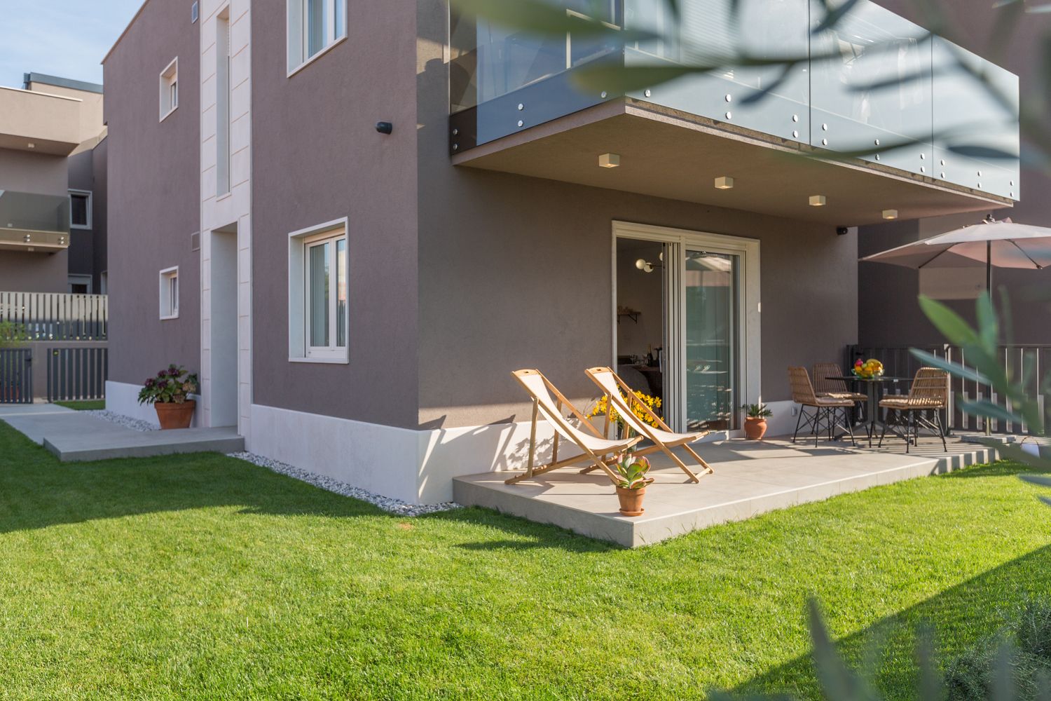 Die Ferienwohnung befindet sich im Erdgeschoss eines neu gebauten Gebäudes im Vorort von Porec und ist nur 1,5 km vom Strand mit Sportmöglichkeiten entfernt. Ein Geschäft und ein Restaurant sind nur wenige Gehminuten vom Apartment entfernt und das Zentrum von Porec ist nur fünf Autominuten entfernt. Die Wohnung verfügt über einen 150 m² großen Rasengarten und zwei private Parkplätze. Die moderne, neugebaute Ferienwohnung für vier Personen ist 65 m² groß, besteht aus einem Wohnzimmer mit Zugang zum Garten und einer teilweise überdachten Terrasse mit Gartenmöbeln, einer voll ausgestatteten Küche mit Esstisch, zwei Doppelzimmern und zwei Badezimmern mit Dusche/WC. Die gesamte Etage ist klimatisiert. WLAN und Mückennetze an allen Fenstern sind ebenfalls vorhanden. Der Vermieter wohnt in der Nähe. Dank der Lage bietet diese wunderschöne Ferienwohnung eine völlig private Atmosphäre.