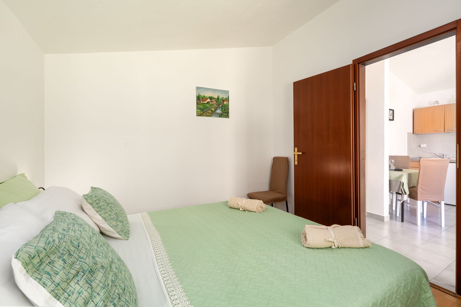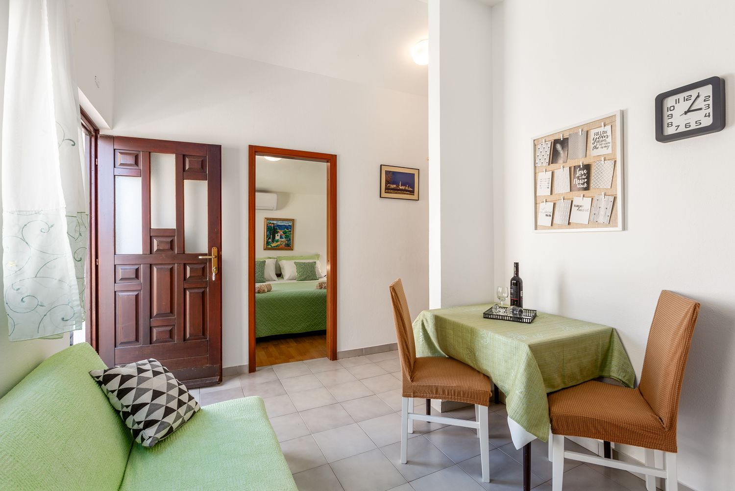 Diese Ferienwohnungen befinden sich in einem ruhigen Viertel von Porec, nur wenige Minuten zu Fuß vom Strand Pical und ca. 800 m von der Altstadt von Porec entfernt. Ein Restaurant und Einkaufsmöglichkeiten sind in wenigen Minuten erreichbar und nur 100 m entfernt. Das Haus liegt auf einem ca. 600 m² großen, umzäunten Grundstück mit Garten. Der Vermieter wohnt in einem anderen Objekt auf demselben Grundstück. Ein privater Parkplatz ist auf dem Grundstück vorhanden. Die 30 m² große Ferienwohnung Rozi für zwei Personen liegt im ersten Stock des Hauses und verfügt über eine kleine Essküche mit Couch, ein Schlafzimmer mit Doppelbett, ein Badezimmer mit Dusche/WC und eine schöne Terrasse mit Gartenmöbeln. Klimaanlage und WLAN sind vorhanden und im Preis inbegriffen.