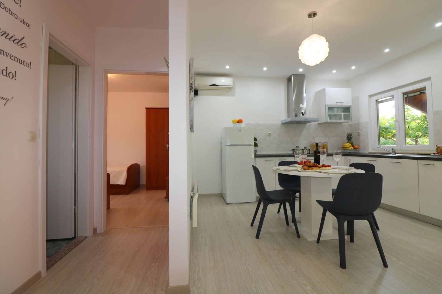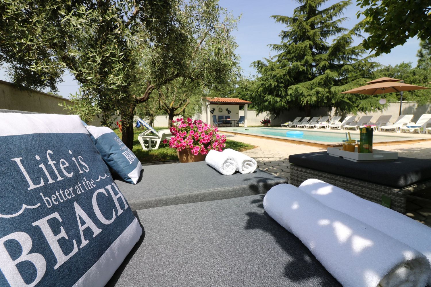 Die Anlage liegt im Ortsteil Stancija Portun, nur 2,5 km von Porec und dem nächsten Strand entfernt. Das Einkaufszentrum Kaufland ist ca. 150 m entfernt. Auf einem 5.000 m² großen, umzäunten Grundstück bietet die Anlage einen schönen Garten mit Blumen und Olivenbäumen, einen überdachten Parkplatz für mehrere Autos, einen gemauerten Grill mit Gartenmöbeln sowie einen 50 m² großen Pool, der von Grün umgeben und separat liegt. Die Residence Lorena verfügt über insgesamt zehn neu eingerichtete Ferienwohnungen im Haupthaus und in Bungalows. Im Erdgeschoss des Hauses befindet sich eine Ferienwohnung für sechs bis sieben Personen und im ersten Stock eine für sechs bis acht Personen. Die anderen Ferienwohnungen befinden sich in vier Doppelbungalows. In jedem Bungalow liegen zwei Ferienwohnungen für jeweils vier bis fünf Personen. Alle Ferienwohnungen sind klimatisiert und verfügen über WLAN. Die Ferienwohnung hat eine Wohnfläche von 55 m² und verfügt über eine Wohnküche mit Schlafcouch für eine Person und Essbereich – alles in einem Raum –, Satellitenfernsehen, ein Schlafzimmer mit Doppelbett, ein Schlafzimmer mit zwei getrennten Betten und ein Badezimmer mit Dusche und WC. Beim Eingang befindet sich eine schöne, überdachte Terrasse mit Gartenmöbeln und Blick auf den Garten.