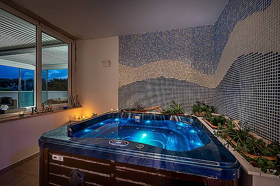 Die grosszügige Dreizimmerwohnung bietet Platz für bis zu 5 Personen (davon ein Kind). Sie verfügt über ein Hauptschlafzimmer mit einem Doppelbett und einem Einzelbett sowie über ein zweites Schlafzimmer mit einem Einzelbett. Je nach Belegung kann entweder ein zusätzliches Einzelbett oder ein Babybett bereitgestellt werden. Die gut eingerichtete Küchenzeile im Wohnbereich verfügt über einen Induktionsherd, Geschirr, Besteck, Töpfe, Mikrowelle, Kaffeemaschine und einen Kühlschrank mit Eisfach. Eine Klimaanlage und SAT-TV sind vorhanden. Das Badezimmer ist mit einer Dusche, einem Waschbecken, einem WC und einem Bidet ausgestattet. Der Balkon lädt mit Tisch und Stühlen zum Entspannen ein. Fahrzeit ab ital. Grenze beträgt etwa 6 Stunden. Hinweis: Wenn Sie mehr als eine Unterkunft benötigen, ist dies bei uns in der Regel möglich, da wir über mehrere Objekte des gleichen Haustyps verfügen.