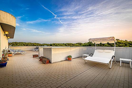 Das gemütliche Studio bietet Platz für maximal 3 Erwachsene oder 2 Erwachsene und 2 Kinder. Die Wohnung besteht aus einem kombinierten Wohn- und Schlafbereich, welcher mit einem Doppelbett (auf Anfrage auch zwei Einzelbetten) sowie einem Schlafsofa mit einem zweiten, ausziehbaren Einzelbett für ein Kind ausgestattet ist. Die gut eingerichtete Küchenzeile im Wohnbereich verfügt über einen Induktionsherd, Geschirr, Besteck, Töpfe, Mikrowelle, Kaffeemaschine und einen Kühlschrank mit Eisfach. Eine Klimaanlage und SAT-TV sind vorhanden. Das Badezimmer ist mit einer Dusche, einem Waschbecken, einem WC und einem Bidet ausgestattet. Der Balkon lädt mit Tisch und Stühlen zum Entspannen ein. Fahrzeit ab ital. Grenze beträgt etwa 6 Stunden. Hinweis: Wenn Sie mehr als eine Unterkunft benötigen, ist dies bei uns in der Regel möglich, da wir über mehrere Objekte des gleichen Haustyps verfügen.