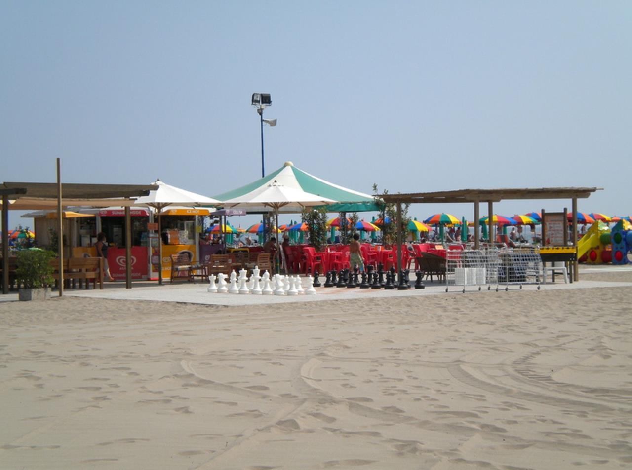 STRANDDer wunderschöne und weitläufige Sandstrand ist bequem zu Fuss in nur wenigen Minuten erreichbar. Vor Ort haben Sie die Möglichkeit, Liegen und Sonnenschirme zu mieten und die Angebote wie Spielplätze, Bars und verschiedene Sportmöglichkeiten zu nutzen. Falls Sie lieber Ihren eigenen Sonnenschirm mitbringen möchten, ist auch das kein Problem! Direkt nebenan befindet sich ein grosser freier Strand, an dem dies problemlos möglich ist. Das Meer ist besonders familienfreundlich und ideal für kleine Kinder, da es flach abfällt und somit sicheres Spielen im seichten Wasser ermöglicht. Zusätzlich sorgen täglich Bademeister für Ihre Sicherheit, damit Sie Ihren Strandtag unbeschwert geniessen können.