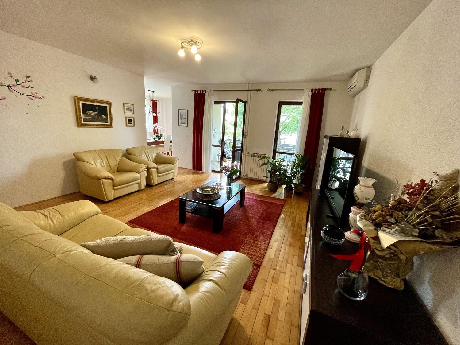Die Ferienwohnung mit zwei Schlafzimmern befindet sich 15 Gehminuten vom Stadtzentrum und 10 Gehminuten vom nächsten Strand entfernt. Die Wohnfläche beträgt 100 m². Sie befindet sich im ersten Stock und verfügt über drei Balkone mit 3,5 und 6 m². Die Unterkunft ist mit zwei Klimaanlagen ausgestattet. Eine befindet sich auf dem Flur, die andere im Wohnzimmer. Bettwäsche und Handtücher werden von der Unterkunft zur Verfügung gestellt.