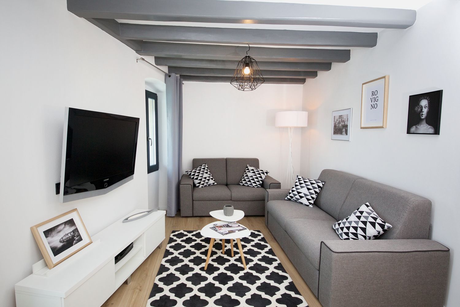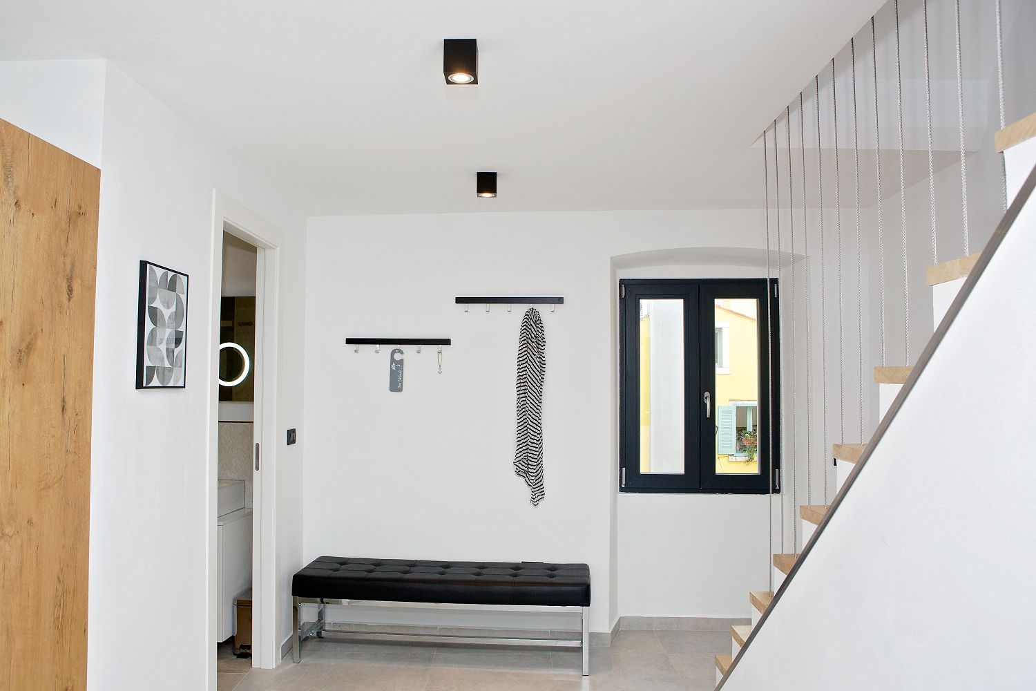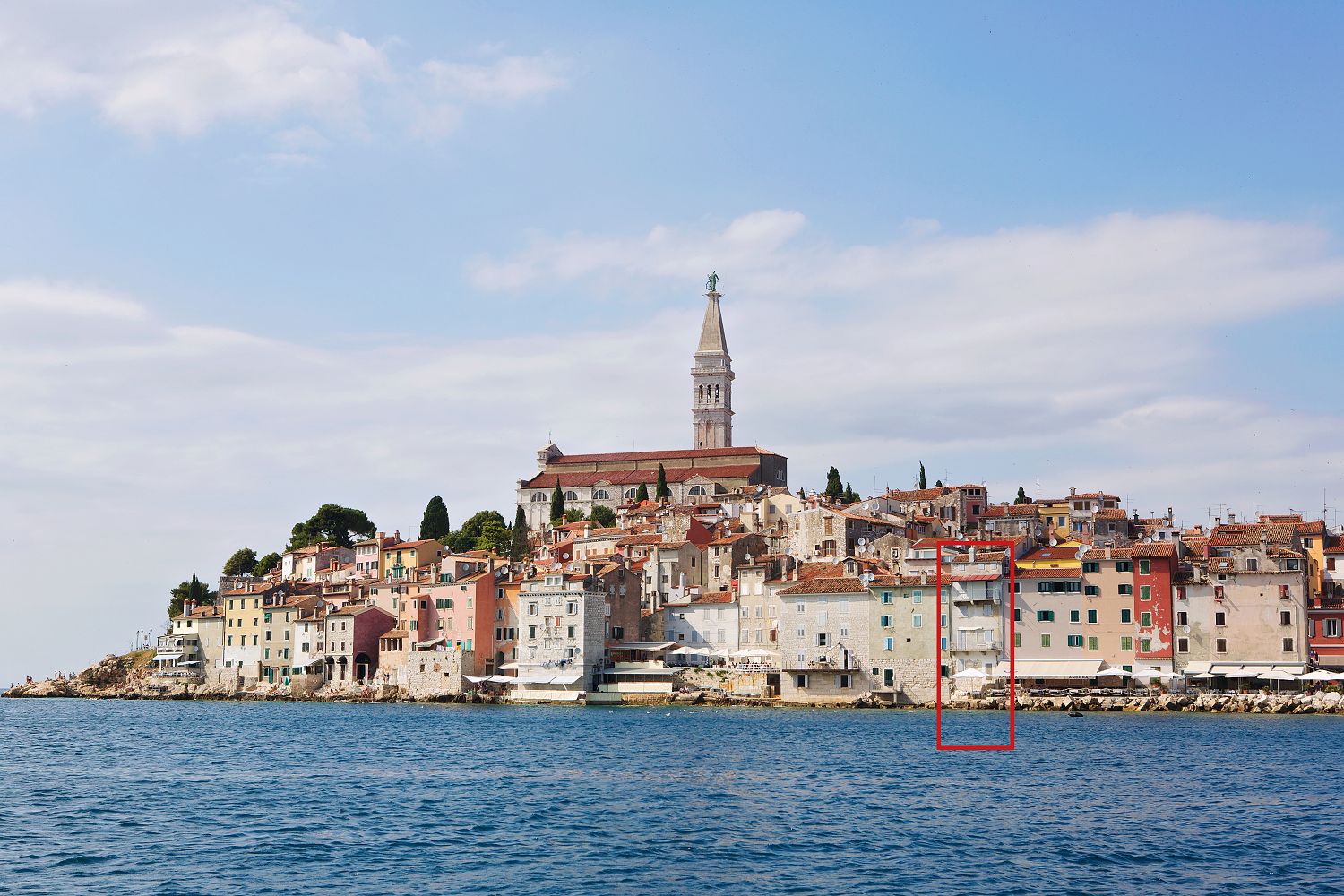 Die Ferienwohnung mit zwei Schlafzimmern befindet sich im Zentrum von Rovinj in der Fußgängerzone. Der nächste Strand ist drei Minuten zu Fuß entfernt. Die Wohnfläche beträgt 82 m², der Balkon 6 m². Das Haus erstreckt sich über drei Etagen: den zweiten, dritten und vierten Stock. Eine weitere Besonderheit dieser Unterkunft ist der Meerblick. Die Unterkunft ist mit drei Klimaanlagen ausgestattet. Eine befindet sich im Wohnzimmer, eine zweite in der Küche und eine dritte im Schlafzimmer. Bettwäsche und Handtücher werden von der Unterkunft zur Verfügung gestellt. Es stehen keine privaten Parkplätze zur Verfügung. Kostenpflichtige öffentliche Parkplätze erreichen Sie zu Fuß in 10 bis 15 Minuten.