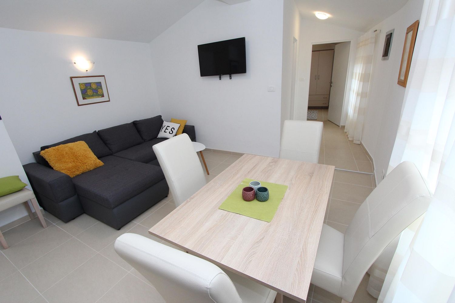 Die Ferienwohnung mit einem Schlafzimmer befindet sich zwei Minuten zu Fuß vom Stadtzentrum und zehn Minuten zu Fuß vom nächsten Strand entfernt. Die Wohnfläche beträgt 44 m². Sie befindet sich im ersten Stock und ist mit einer Klimaanlage ausgestattet. Diese befindet sich in der Küche. Bettwäsche und Handtücher werden von der Unterkunft zur Verfügung gestellt.