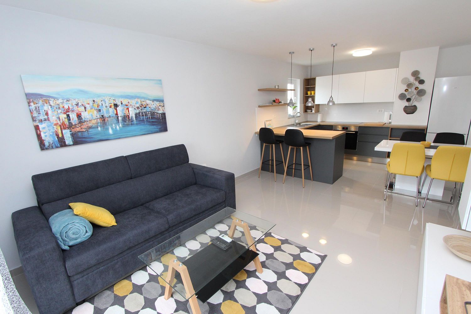 Die Ferienwohnung mit zwei Schlafzimmern befindet sich zwei Minuten zu Fuß vom Stadtzentrum und zehn Minuten zu Fuß vom nächsten Strand entfernt. Die Wohnfläche beträgt 66 m². Sie befindet sich im 3. Stock und ist mit einer Klimaanlage ausgestattet. Diese befindet sich im Wohnzimmer. Bettwäsche und Handtücher werden von der Unterkunft zur Verfügung gestellt.