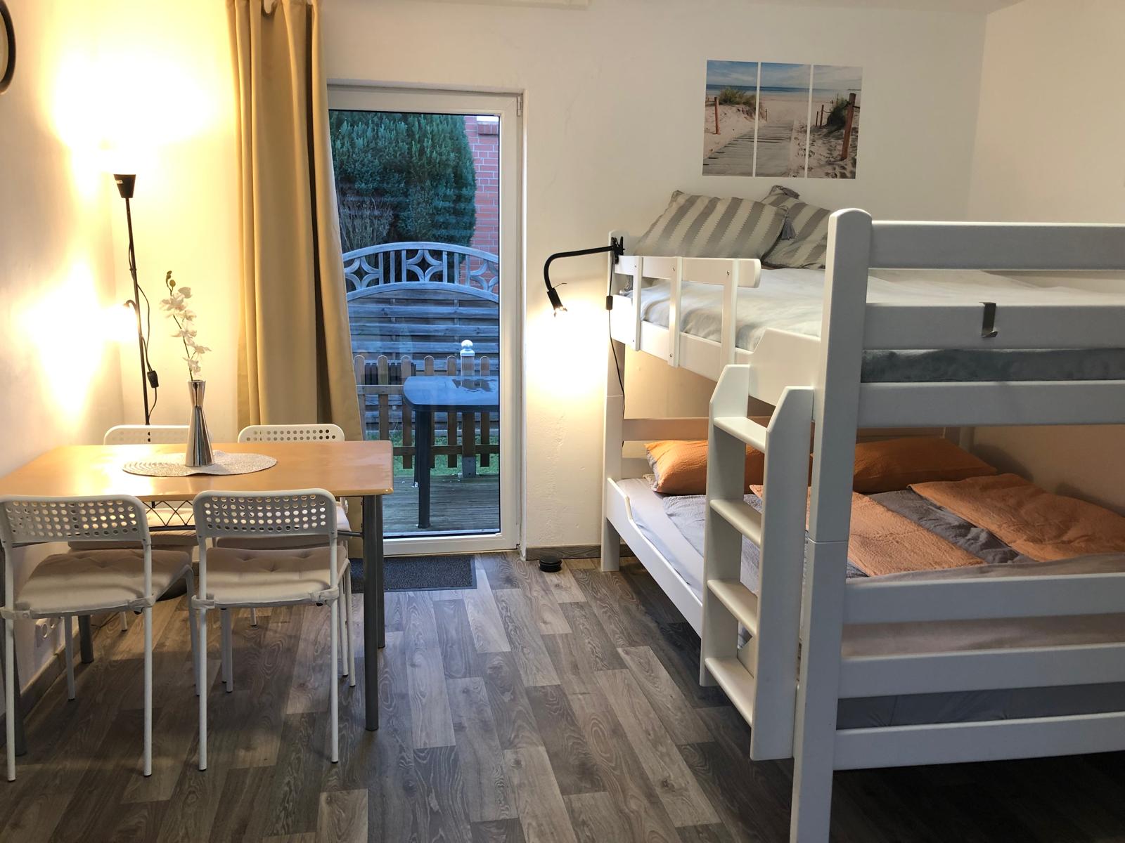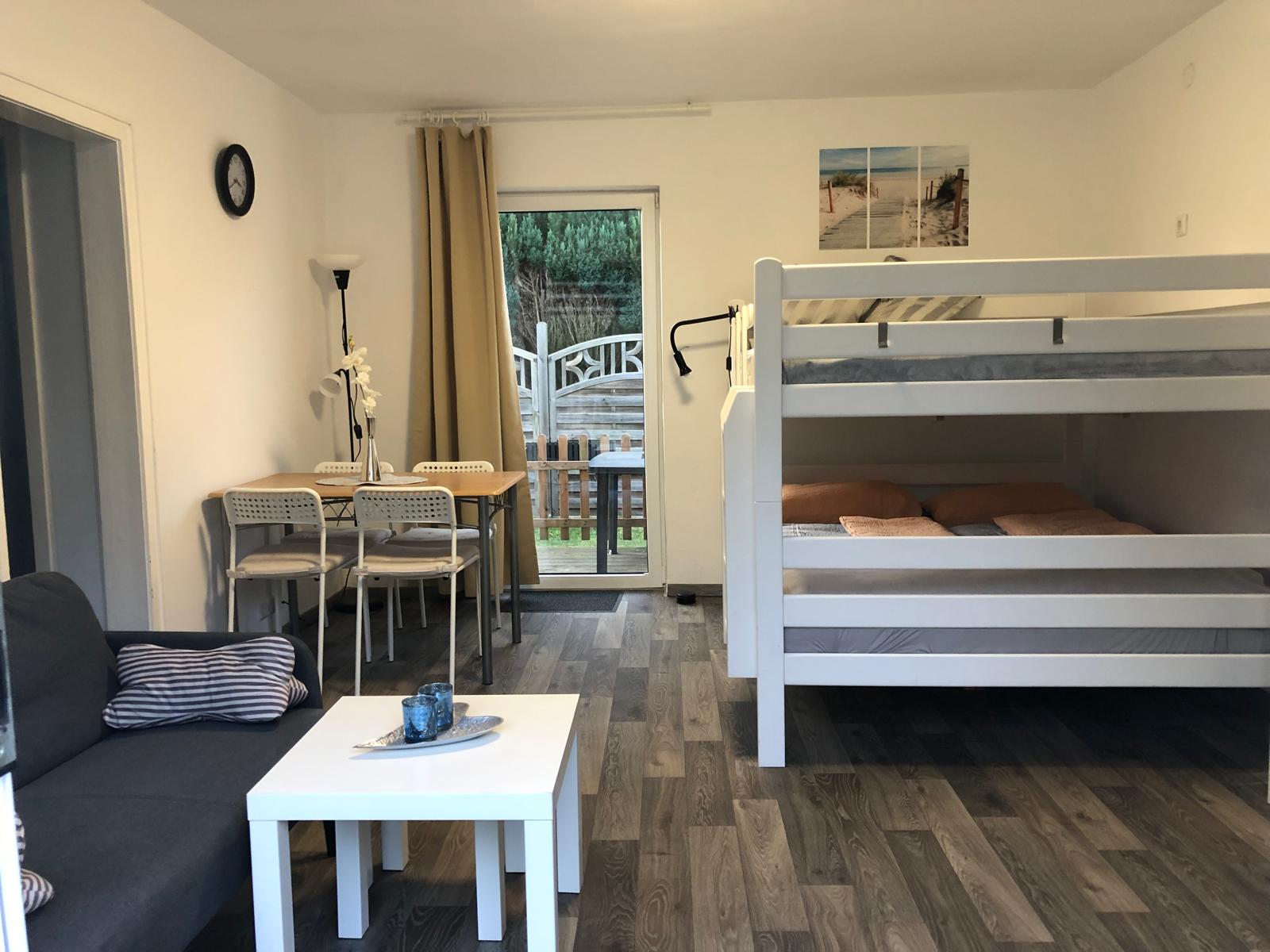Sie wohnen in einer kleinen Bungalow Anlage mit 3 Ferienwohnungen und eigener Terasse. Sie bietet idealerweise Platz für 2 Erwachsene und 2 Kinder.