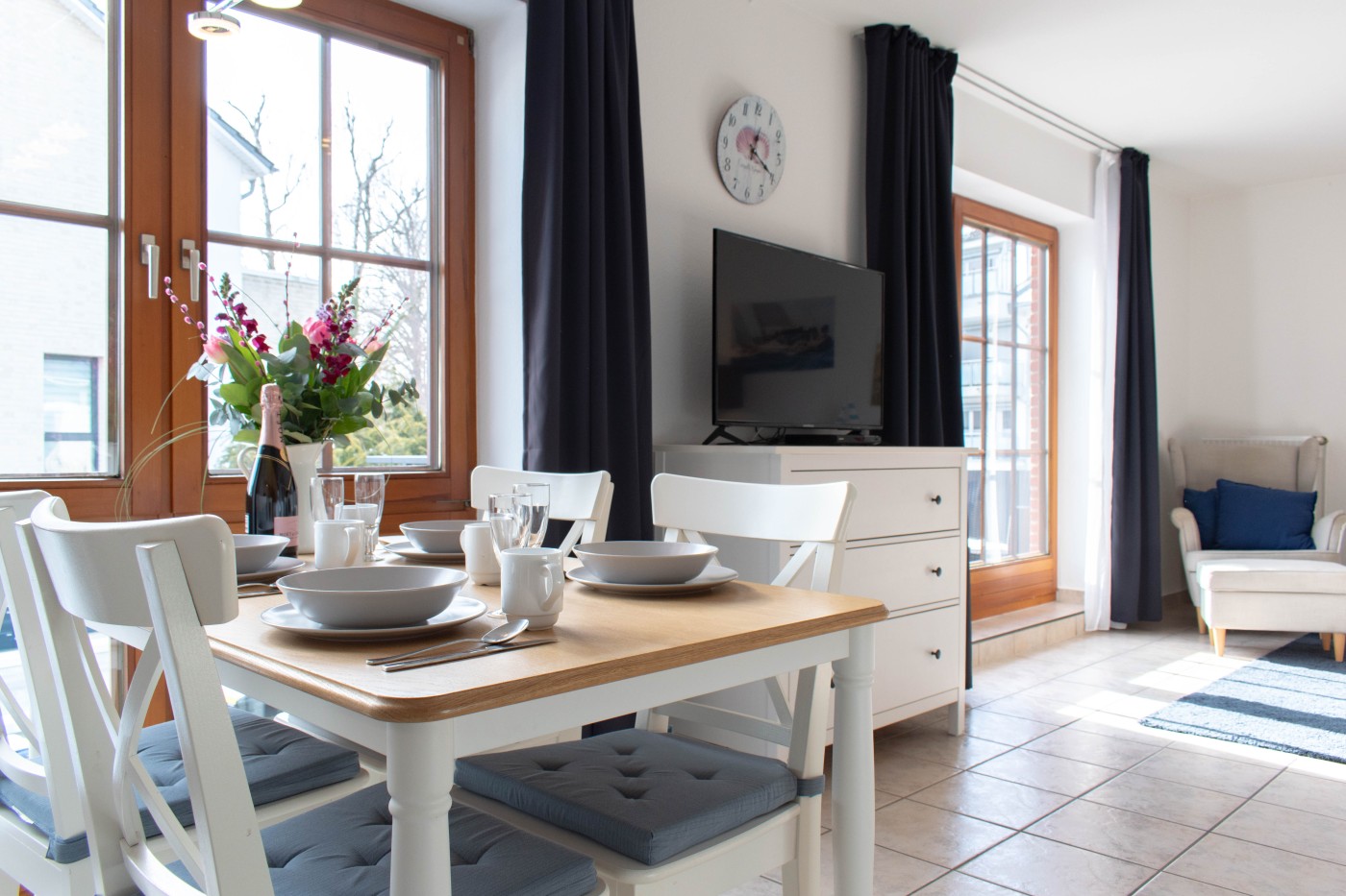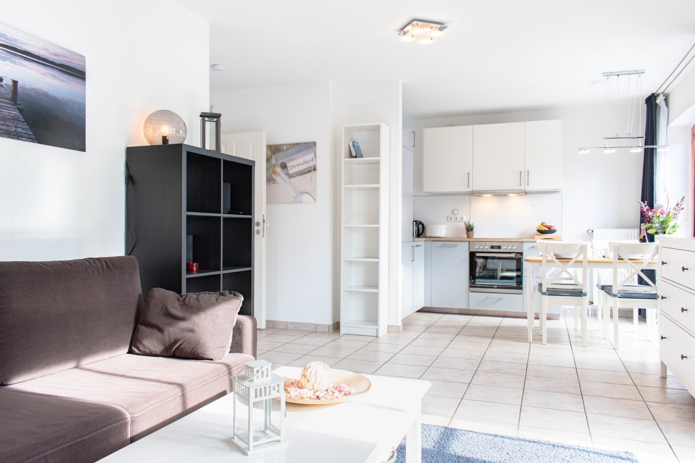 Die Wohnung überzeugt mit nordischem Flair und der liebevollen, durchdachten Einrichtung. Der offene Wohn- und Essbereich ist lichtdurchflutet, modern eingerichtet und clever zoniert. Die voll ausgestattete Küche bietet beste Voraussetzungen für gesellige Kochabende. Eine bequeme Sofalandschaft schafft den idealen Ort für spannende Filmabende. Sie kann auch als ausziehbare Schlafcouch mit integrierter Matratze (1,40m x 2,00m) genutzt werden. Vom Wohnbereich gelangen Sie auf den möblierten Balkon. Das separate Schlafzimmer verfügt über ein gemütliches Doppelbett (1,80 m Breite) und einem großen Kleiderschrank mit einer Menge Stauraum. Das Tageslichtbad ist mit einer großen Eckdusche und einem WC ausgestattet. Eine Waschmaschine und ein Trockner stehen Ihnen im Gemeinschaftskeller der Anlage zur Verfügung, perfekt für den Familienurlaub an der Ostsee.