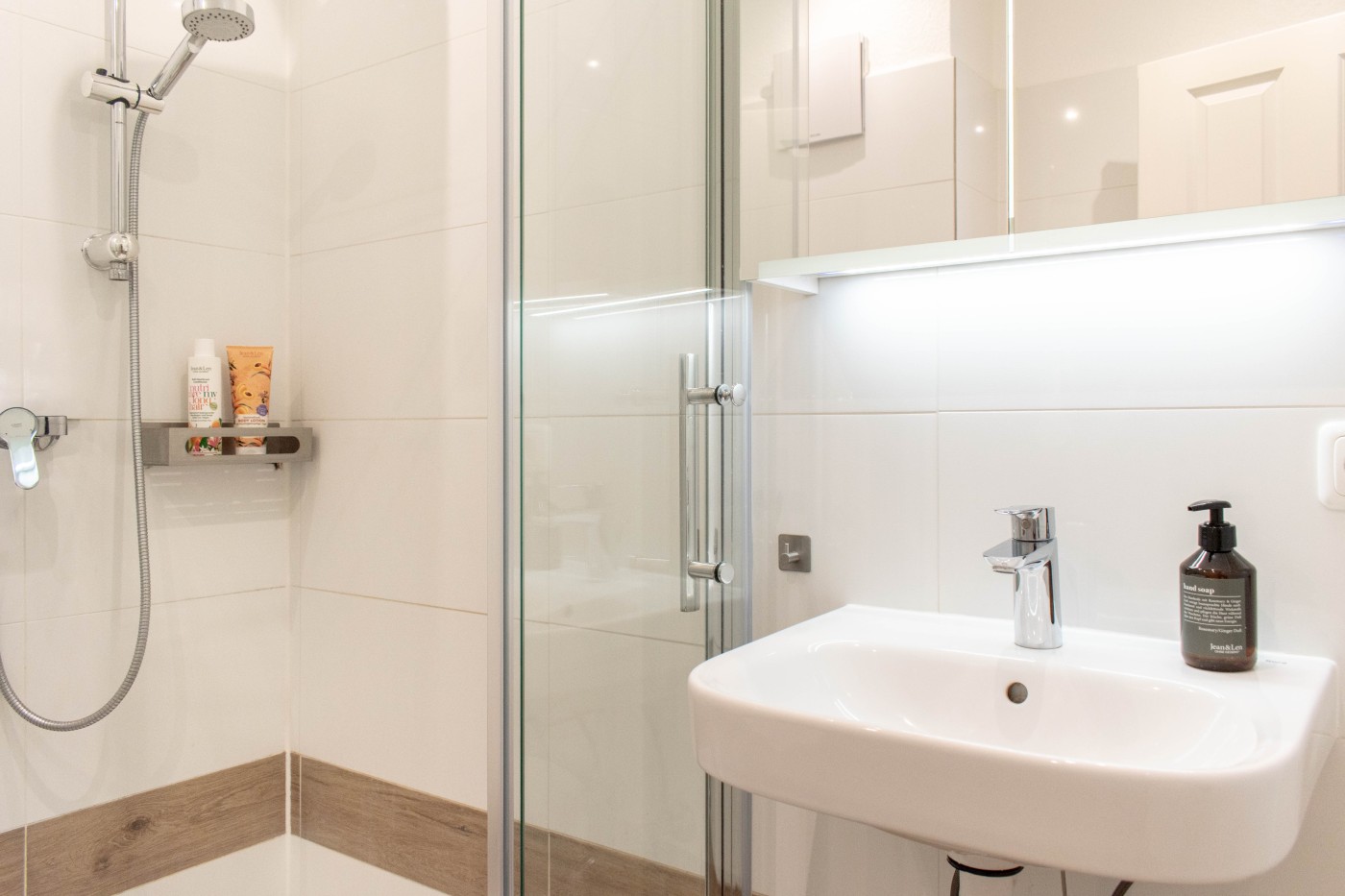 Ein hochwertiger Designfußboden mit Holzoptik und moderner nordisch-skandinavische Einrichtungseinflüsse lassen die Wohnung in einer warmen und hellen Atmosphäre erstrahlen.