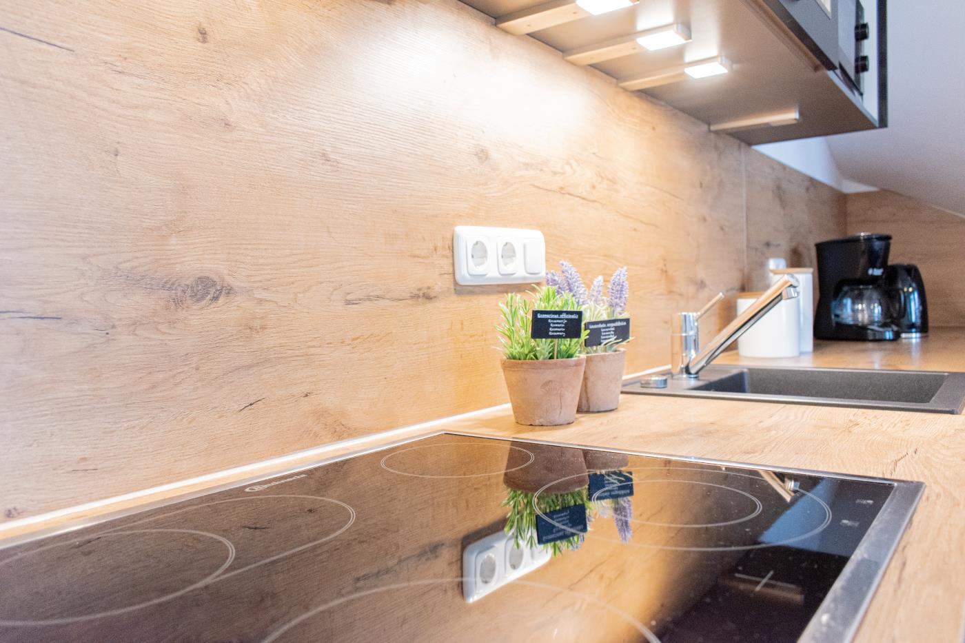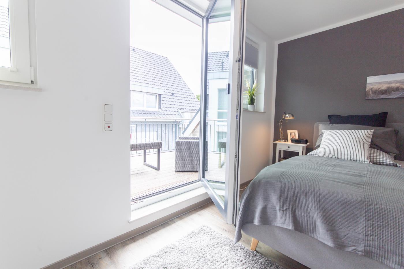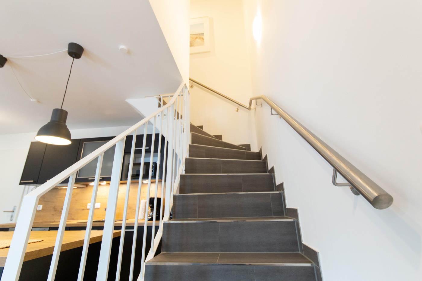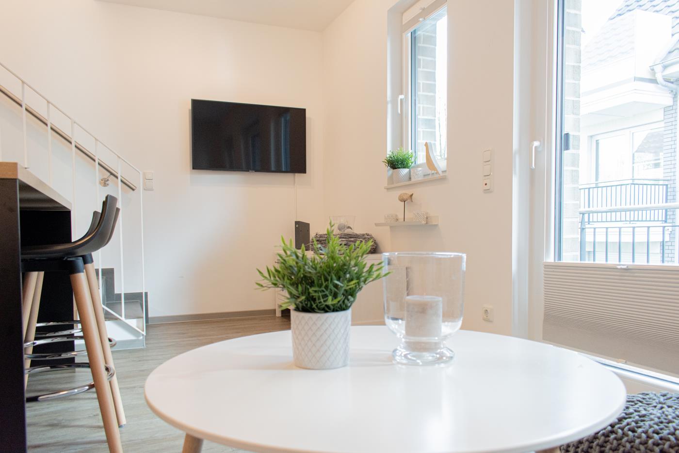 Wir empfehlen in der Ferienwohnung Bude 37 Whg 7 eine Belegung von zwei Erwachsenen und zwei Kindern oder maximal drei Erwachsene. Die modern ausgestattete Zweizimmerwohnung verfügt auf der ersten Ebene über einen Wohn- und Küchenbereich sowie einen Balkon mit Sonnenschirm, welcher zum gemeinsamen Frühstück und zum entspannen einlädt. Die Küche ist voll ausgestattet und lässt keine Wünsche offen. Sie ist großzügig geschnitten und verlockt zu ausgiebigen Kochexperimenten. Die Kücheninsel stellt den Mittelpunkt des Wohnraumes dar und bietet mit stylischen Barhockern Platz für vier Gäste. Das neue bequeme Schlafsofa (1,40er Breite) lädt zum gemütlichen Filmabenden ein. Das Schlafzimmer mit dem bequemen Doppelbett (1,80er Breite) sowie das Duschbad finden Sie auf der zweiten Ebene. Von hier aus gelangen Sie auf die südlich ausgerichtete Dachterrasse, auf welcher sich schöne Sommerabende in gemütlichen Loungemöbeln verbringen lassen. Ein Flat-TV und der offene Kleiderschrank runden das Angebot des stilvollen Raumes ab. Plissees zur Verdunklung sorgen für einen angenehmen Schlafkomfort. Das moderne Badezimmer verfügt über eine Dusche, ein WC sowie eine Waschmaschine. Ebenso bietet eine Fußbodenheizung dem Gast eine tolle Wohlfühlatmosphäre.
