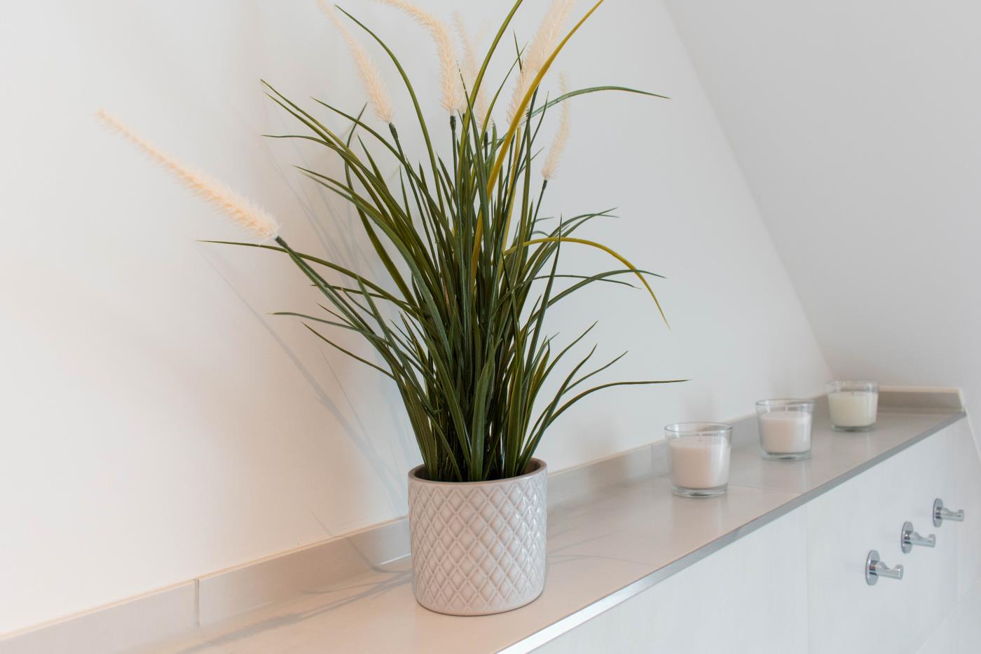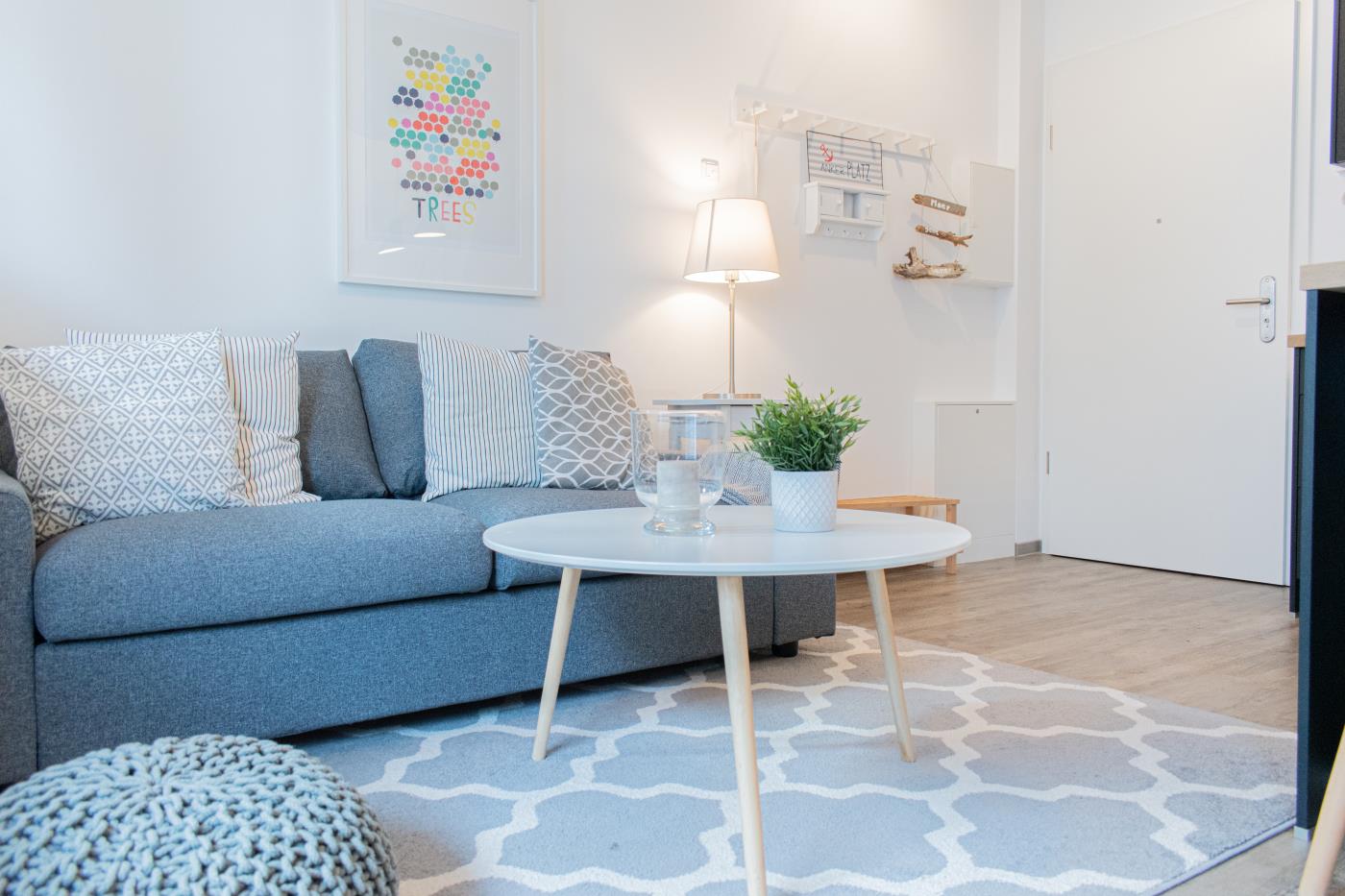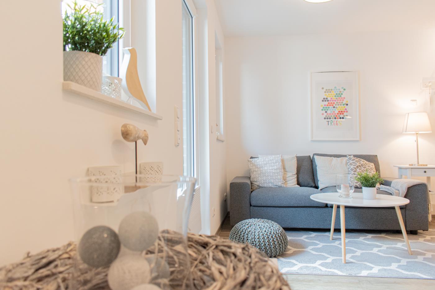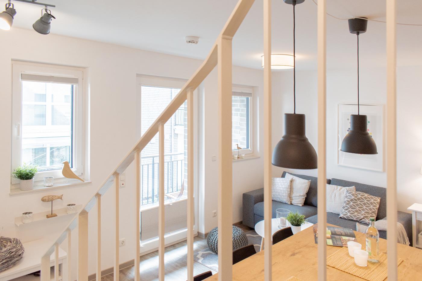 Die Wohnung mit 50 m² erstreckt sich über zwei Ebenen und ist mit viel Liebe zum Detail hochwertig eingerichtet. Klare Linien und reduzierte Farben ergeben eine stimmige Optik im angesagten skandinavischen Design.