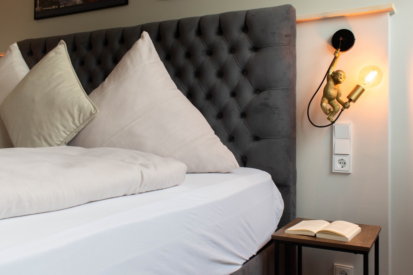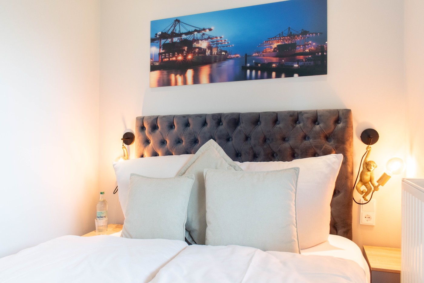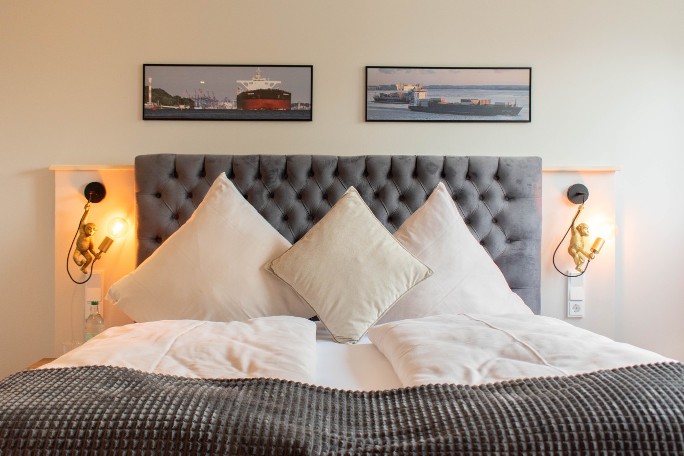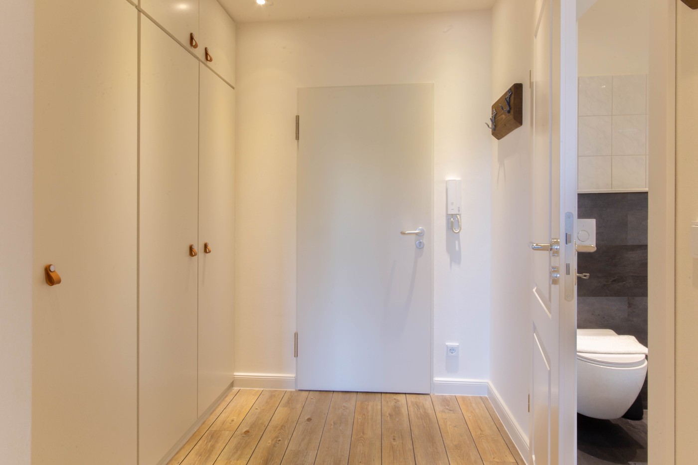 Die Ferienwohnung besticht auf 55 m² durch helles Interieur, warme Holztöne und harmonische Farbakzente. In den maritimen Dekoelementen und den Wandbildern finden sich die Nähe zum Meer und die Begeisterung für die Schifffahrt wieder, einfach echt nordisch.