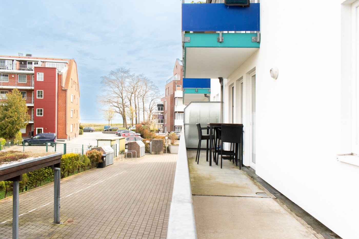 Die gepflegte Wohnanlage, in dem sich die Ferienwohnung befindet, liegt etwa 350 Meter vom Ortskern entfernt. Der nächste Strandzugang ist fußläufig in zwei Minuten erreicht.